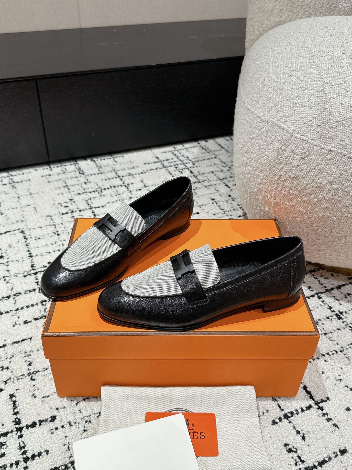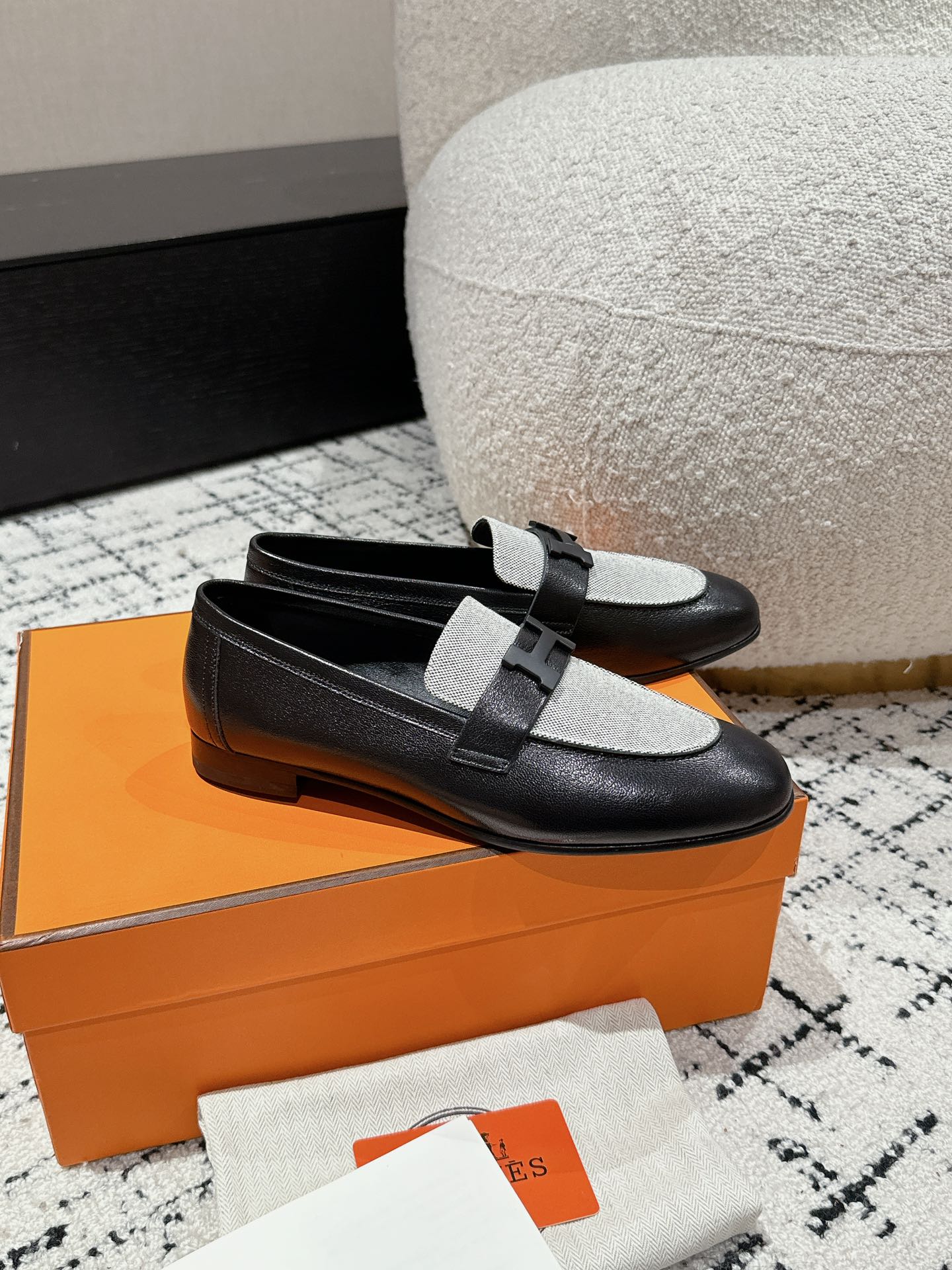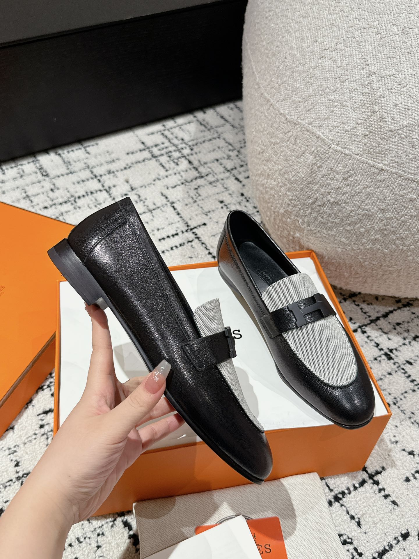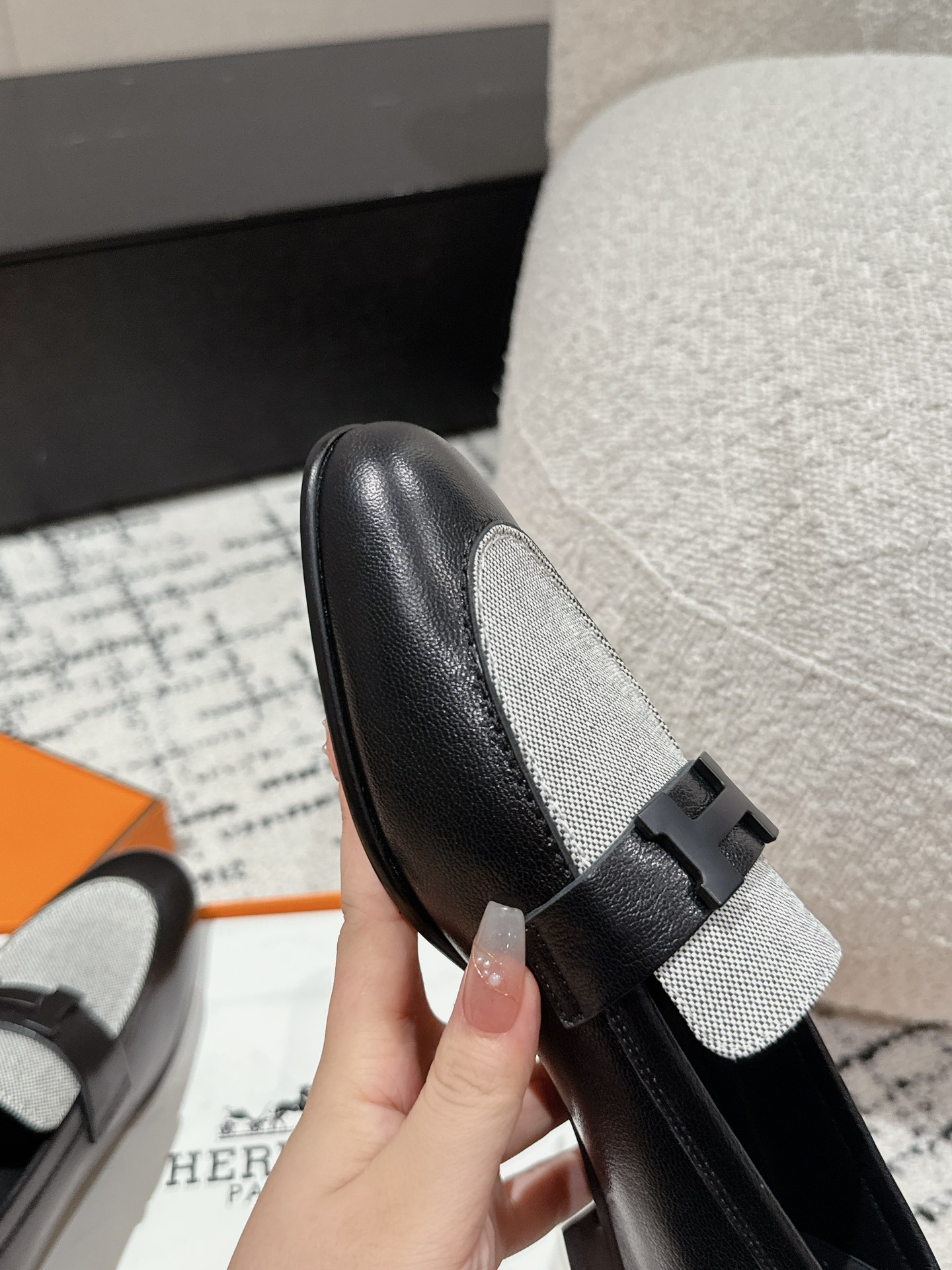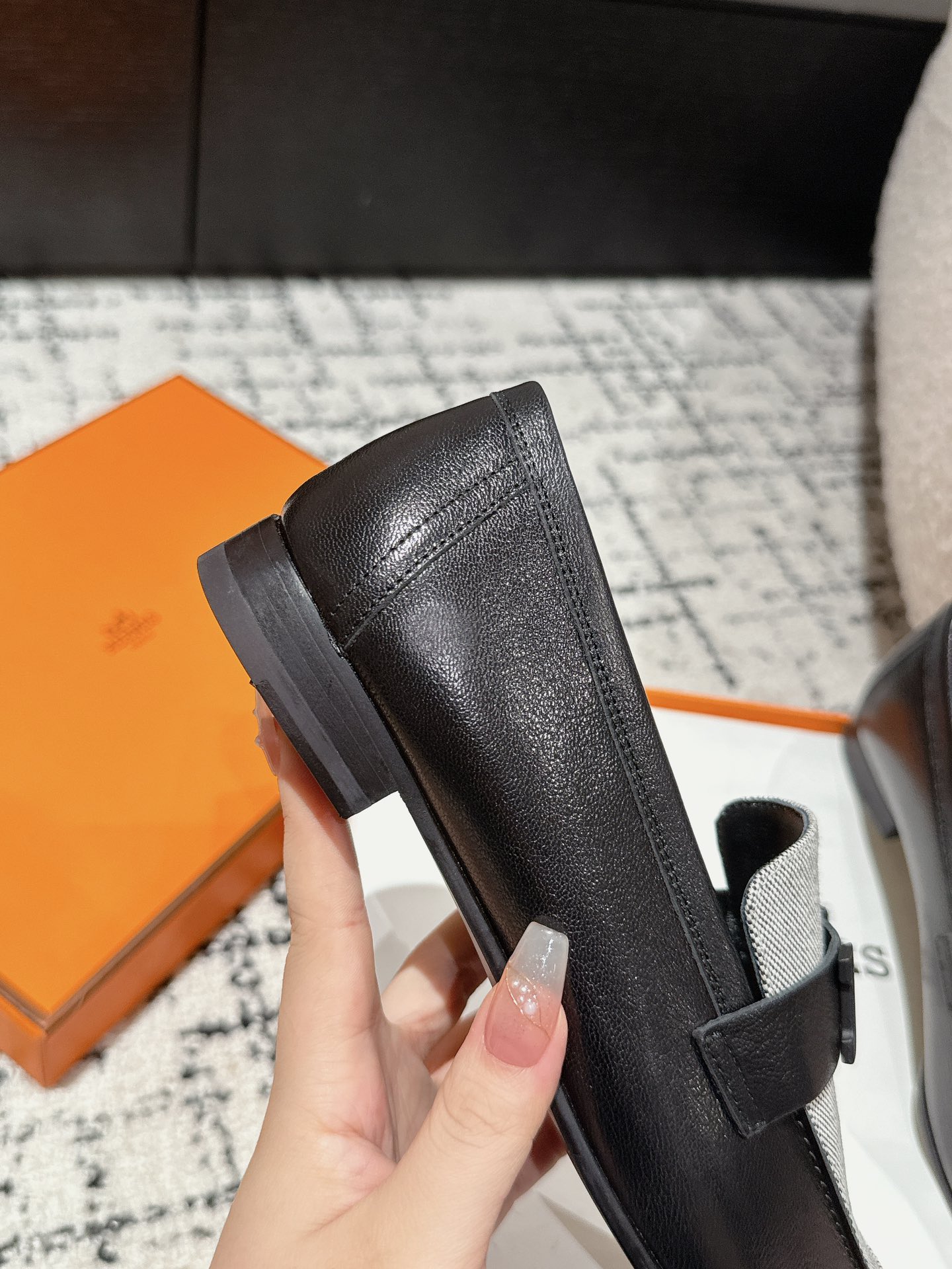 这款鞋子是AAAAA 1:1 质量 (非常棒). 使用了和原版一模一样的材料. 商标部分也保持了和爱马仕/Hermes一样. 图片拍摄是实物鞋子拍摄, 您所收到的实物保证和我们图片一模一样.