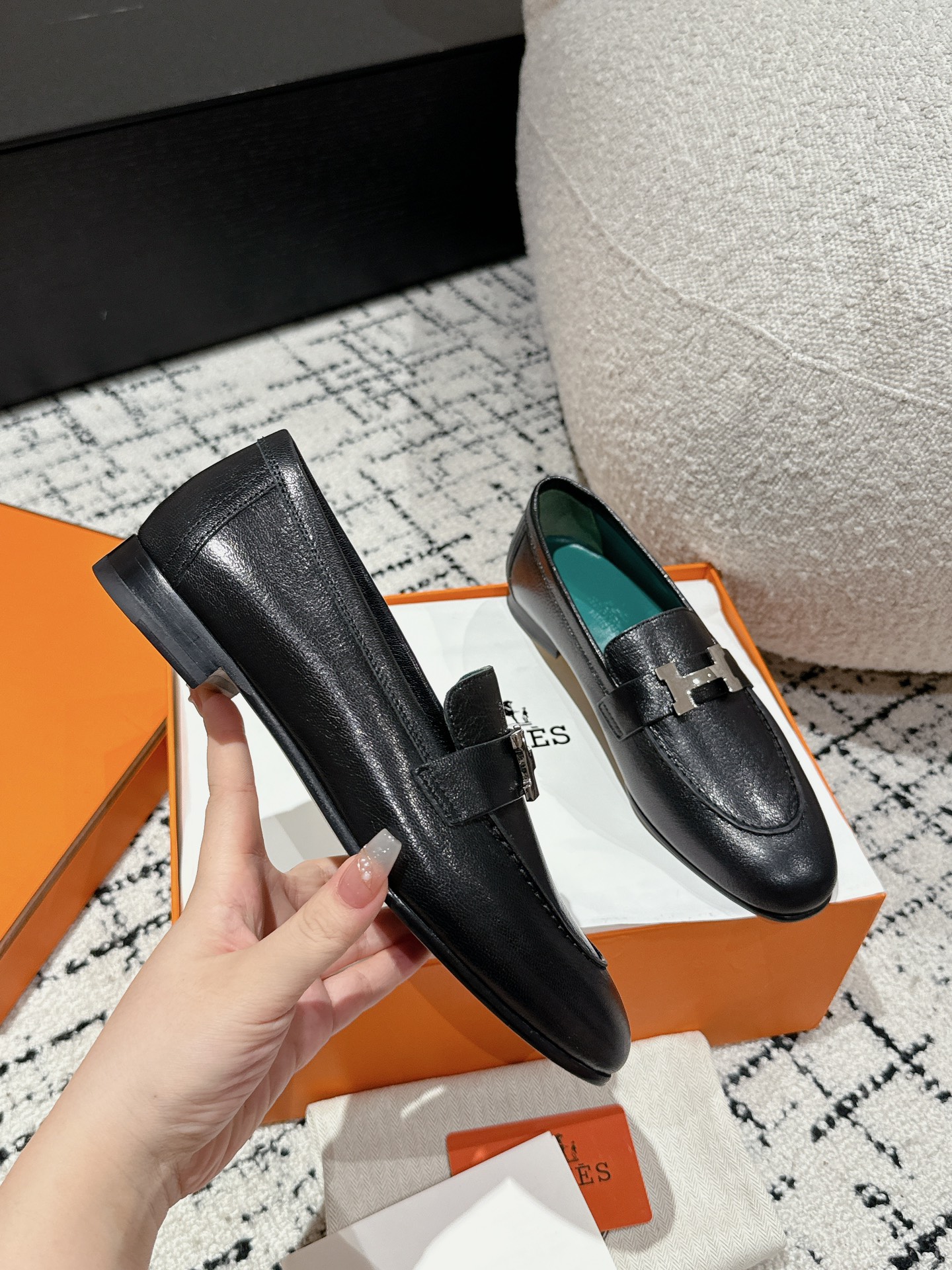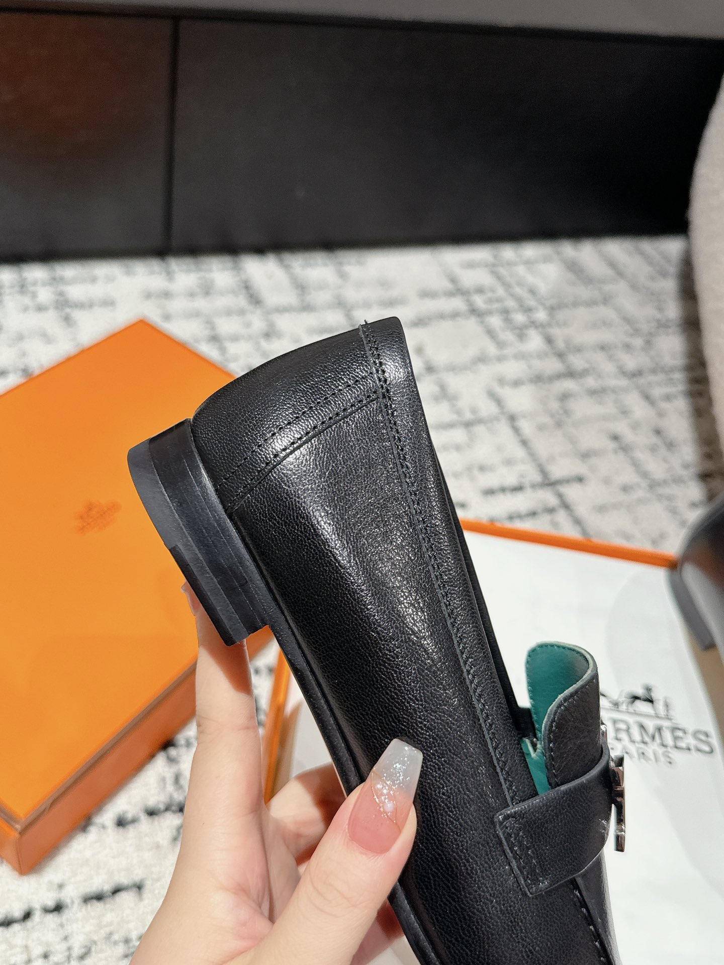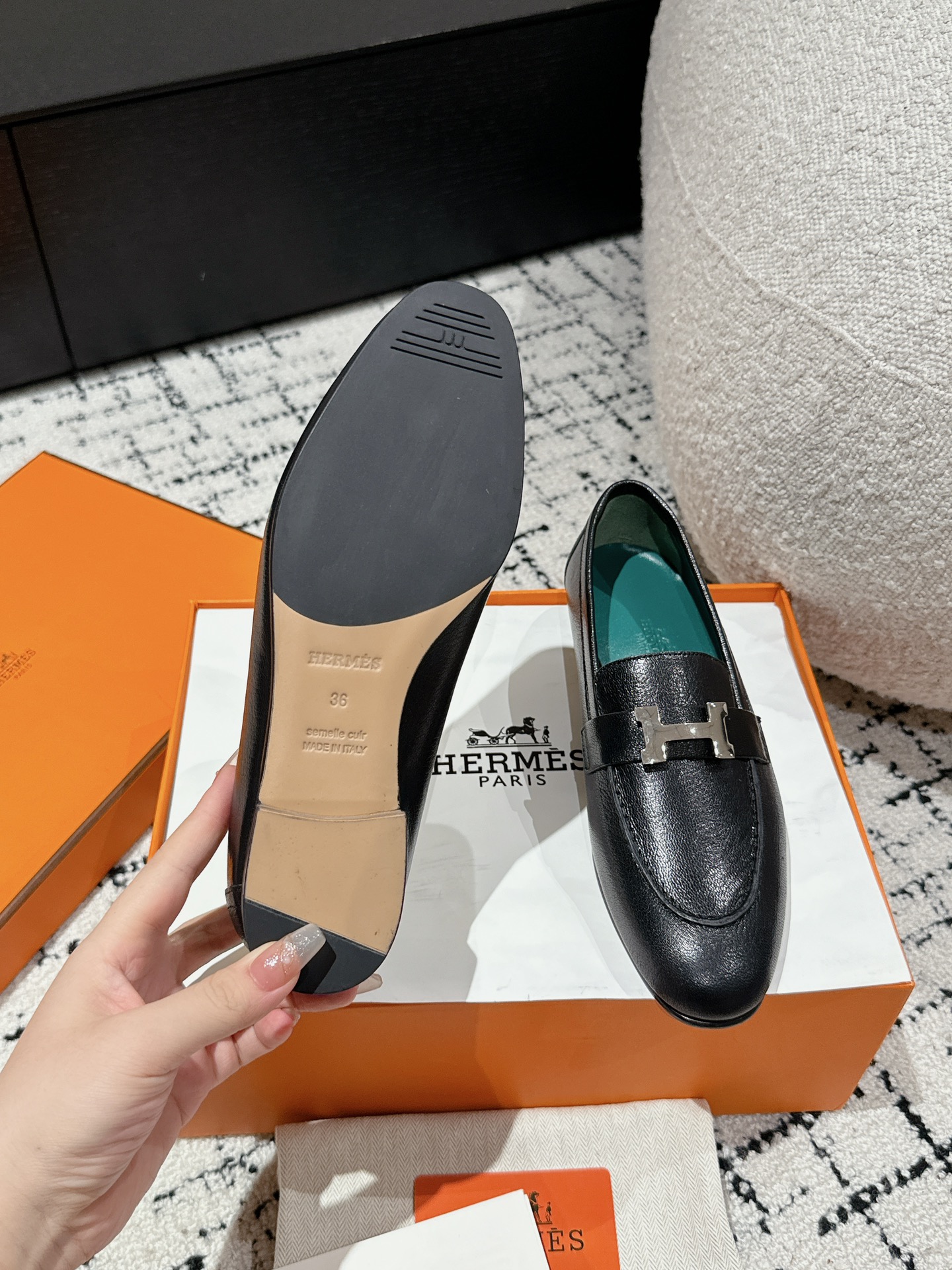 这款鞋子是AAAAA 1:1 质量 (非常棒). 使用了和原版一模一样的材料. 商标部分也保持了和爱马仕/Hermes一样. 图片拍摄是实物鞋子拍摄, 您所收到的实物保证和我们图片一模一样.