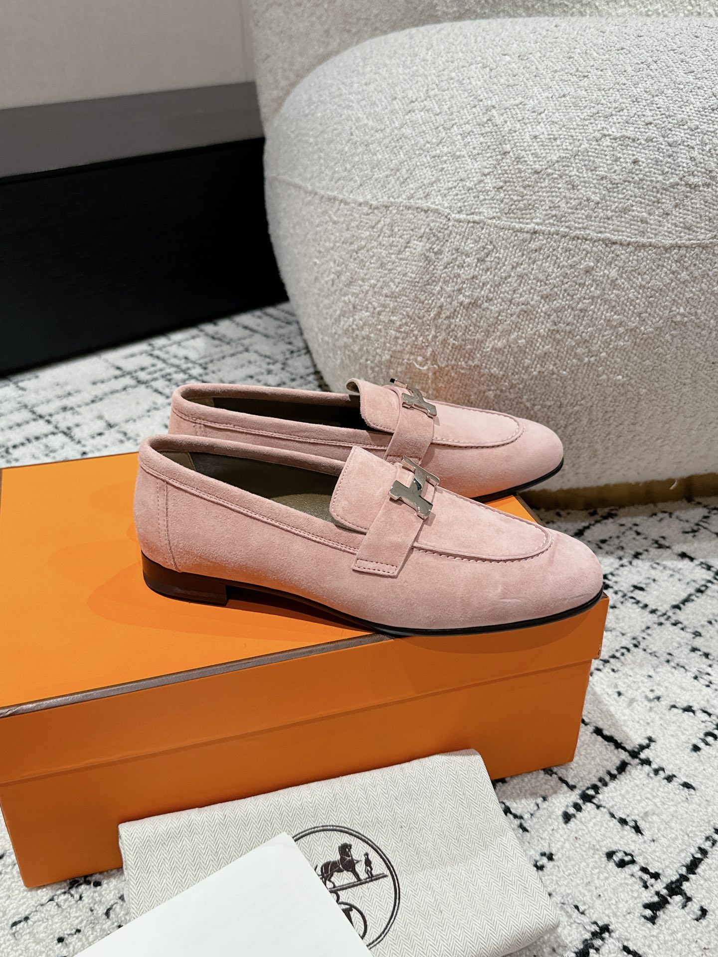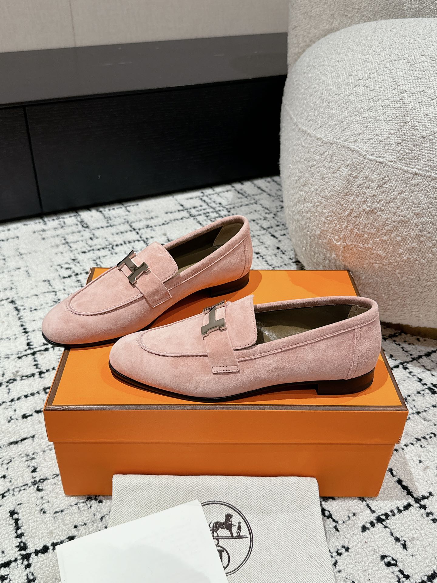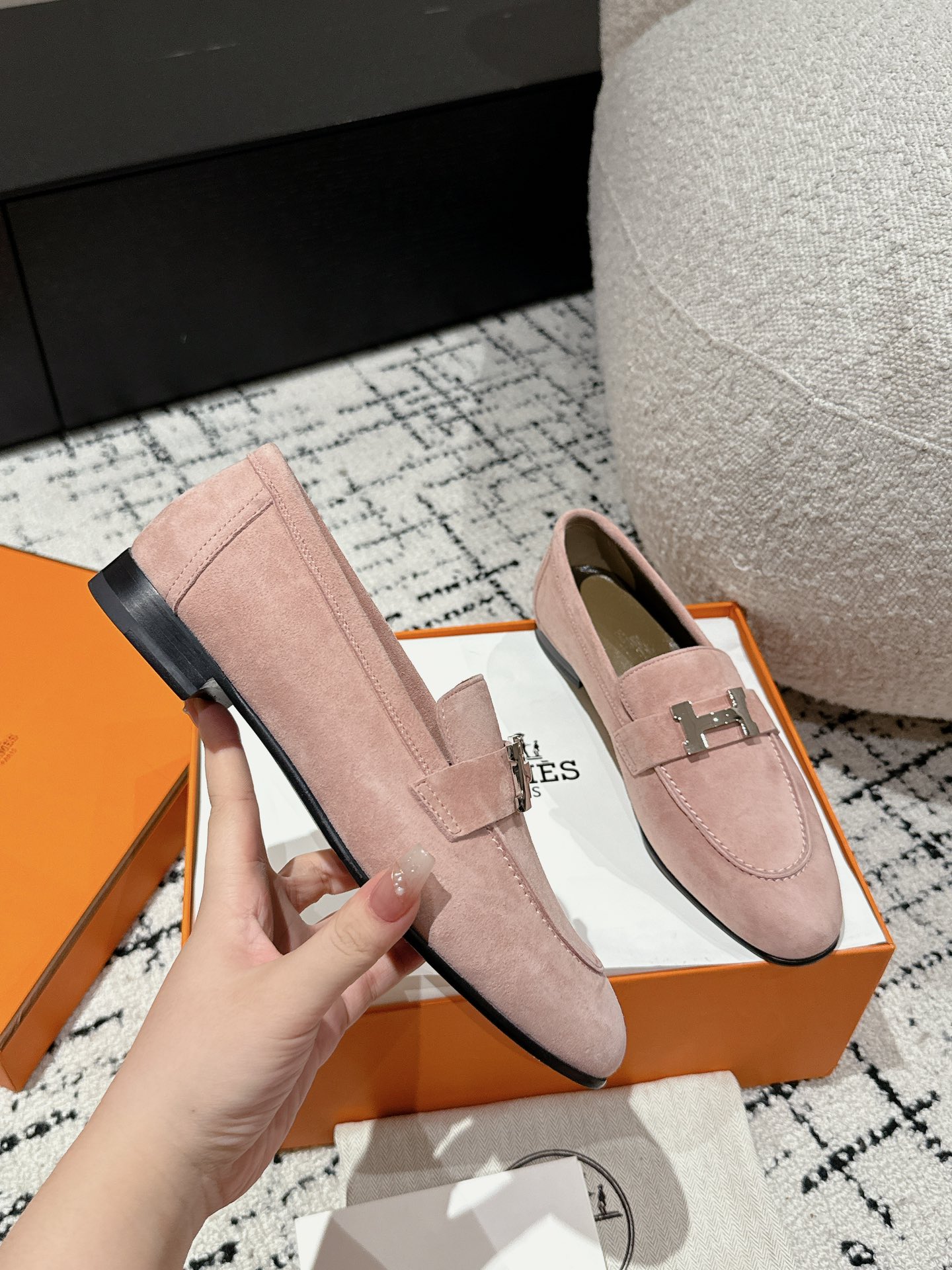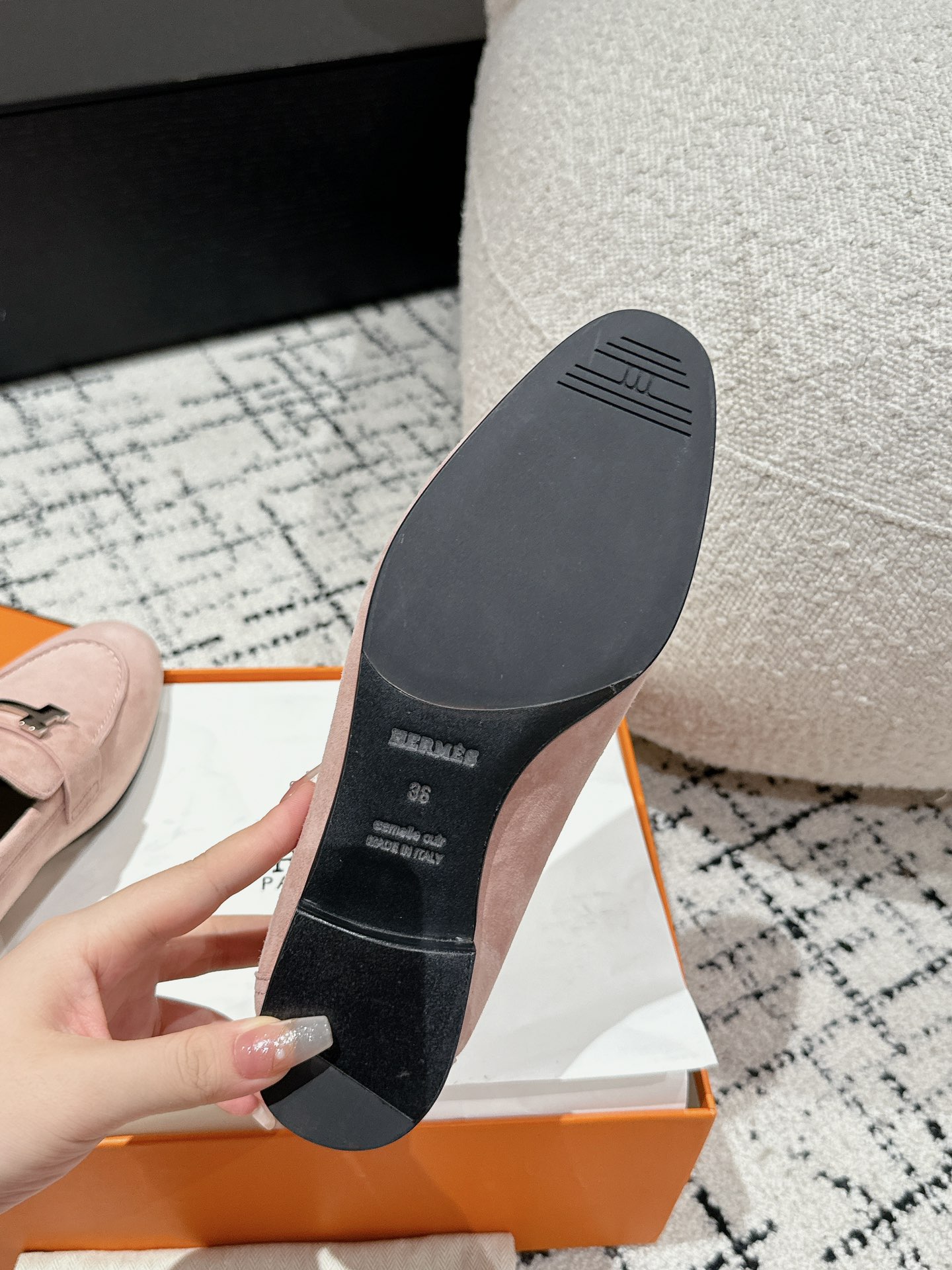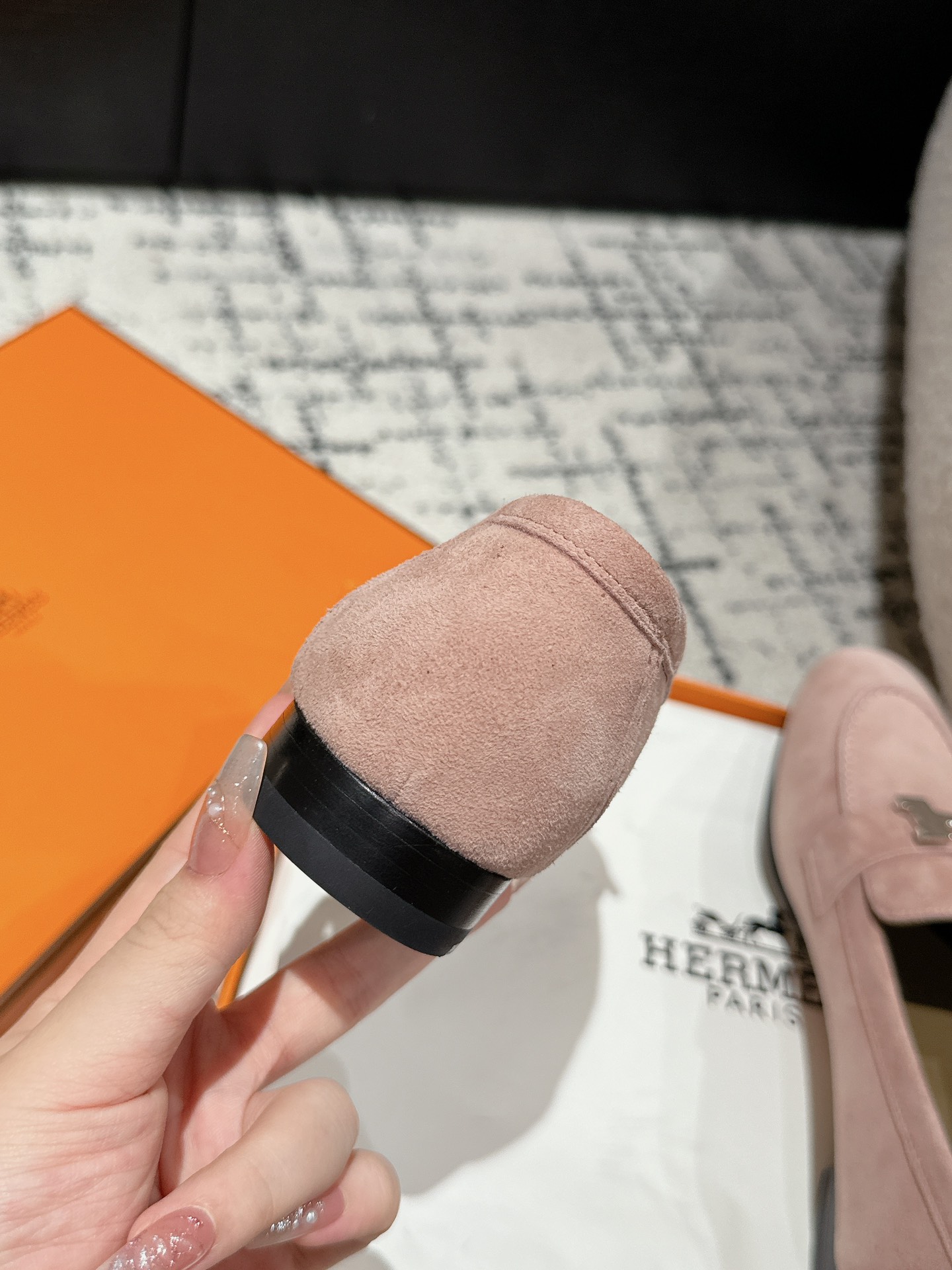 这款鞋子是AAAAA 1:1 质量 (非常棒). 使用了和原版一模一样的材料. 商标部分也保持了和爱马仕/Hermes一样. 图片拍摄是实物鞋子拍摄, 您所收到的实物保证和我们图片一模一样.