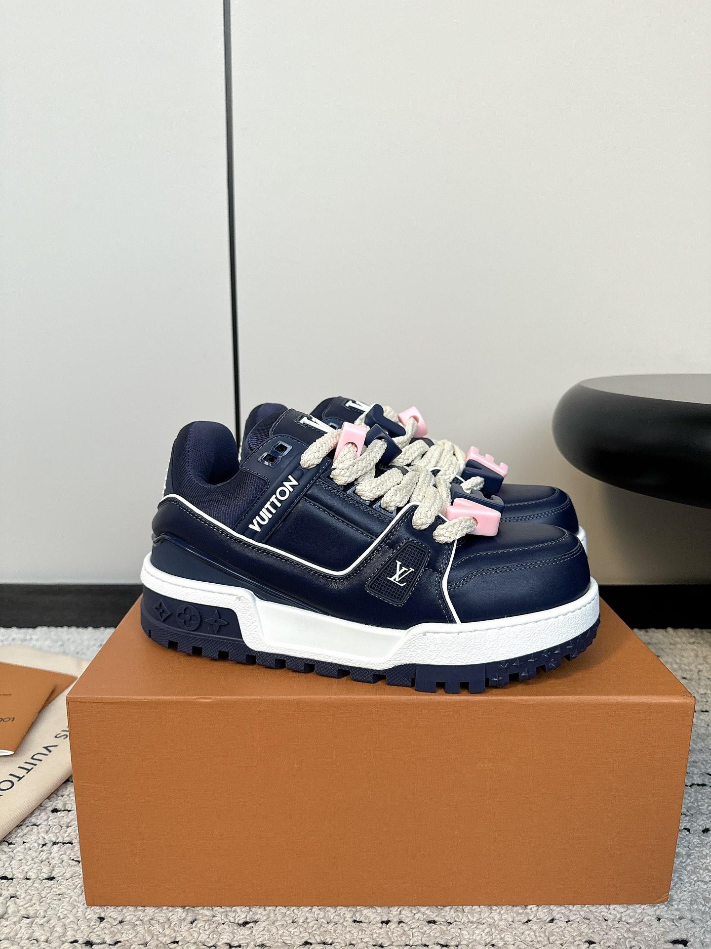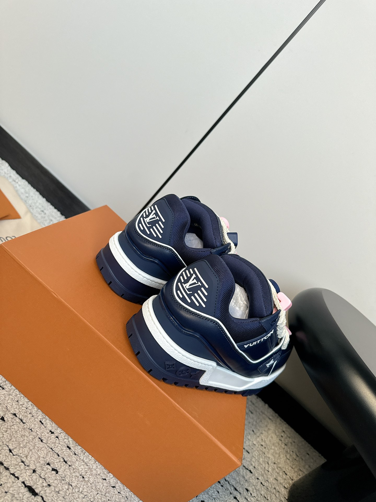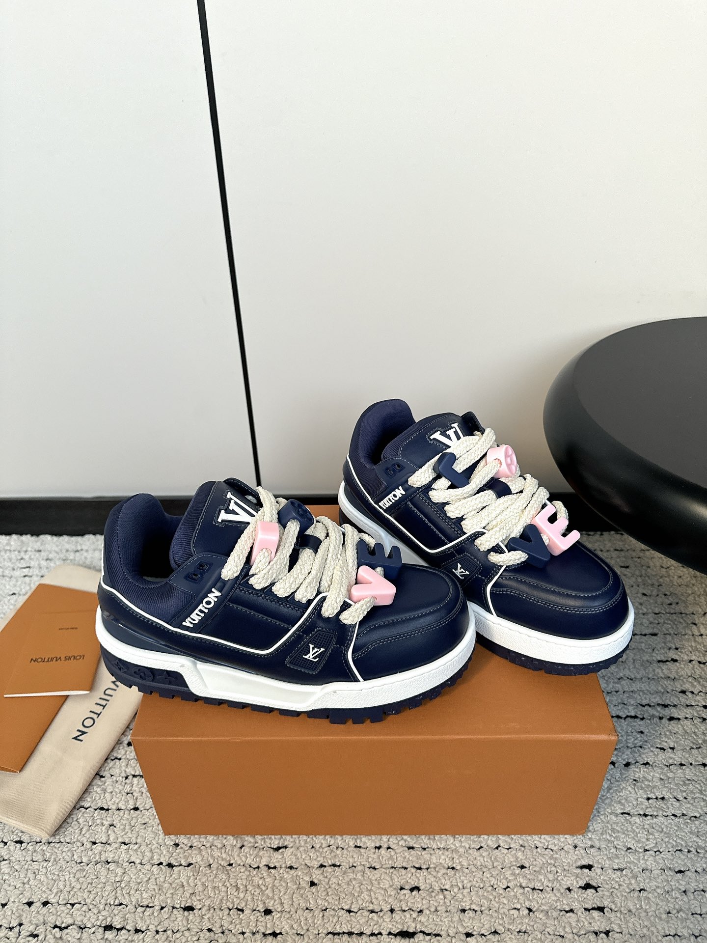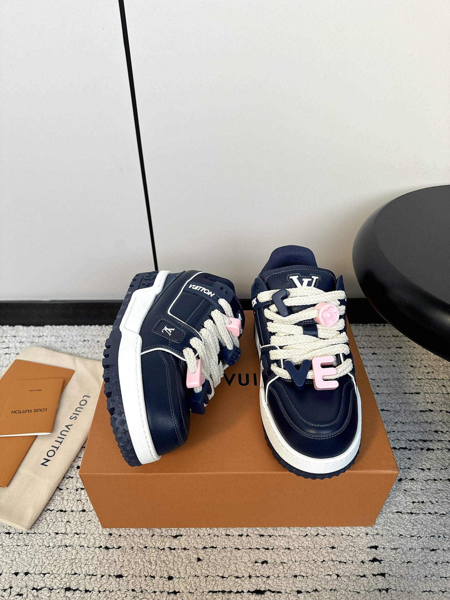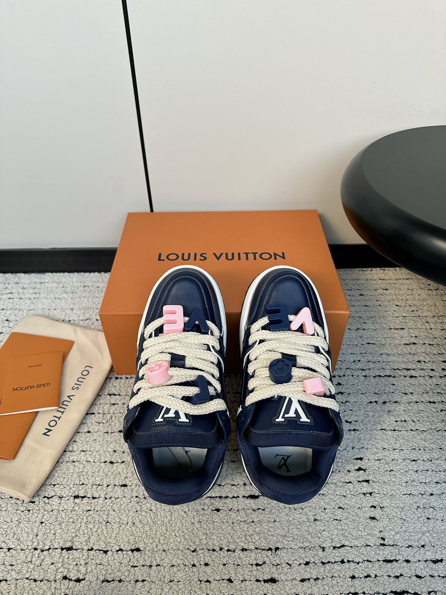 这款鞋子是AAAAA 1:1 质量 (非常棒). 使用了和原版一模一样的材料. 商标部分也保持了和路易威登/Louis Vuitton一样. 图片拍摄是实物鞋子拍摄, 您所收到的实物保证和我们图片一模一样.