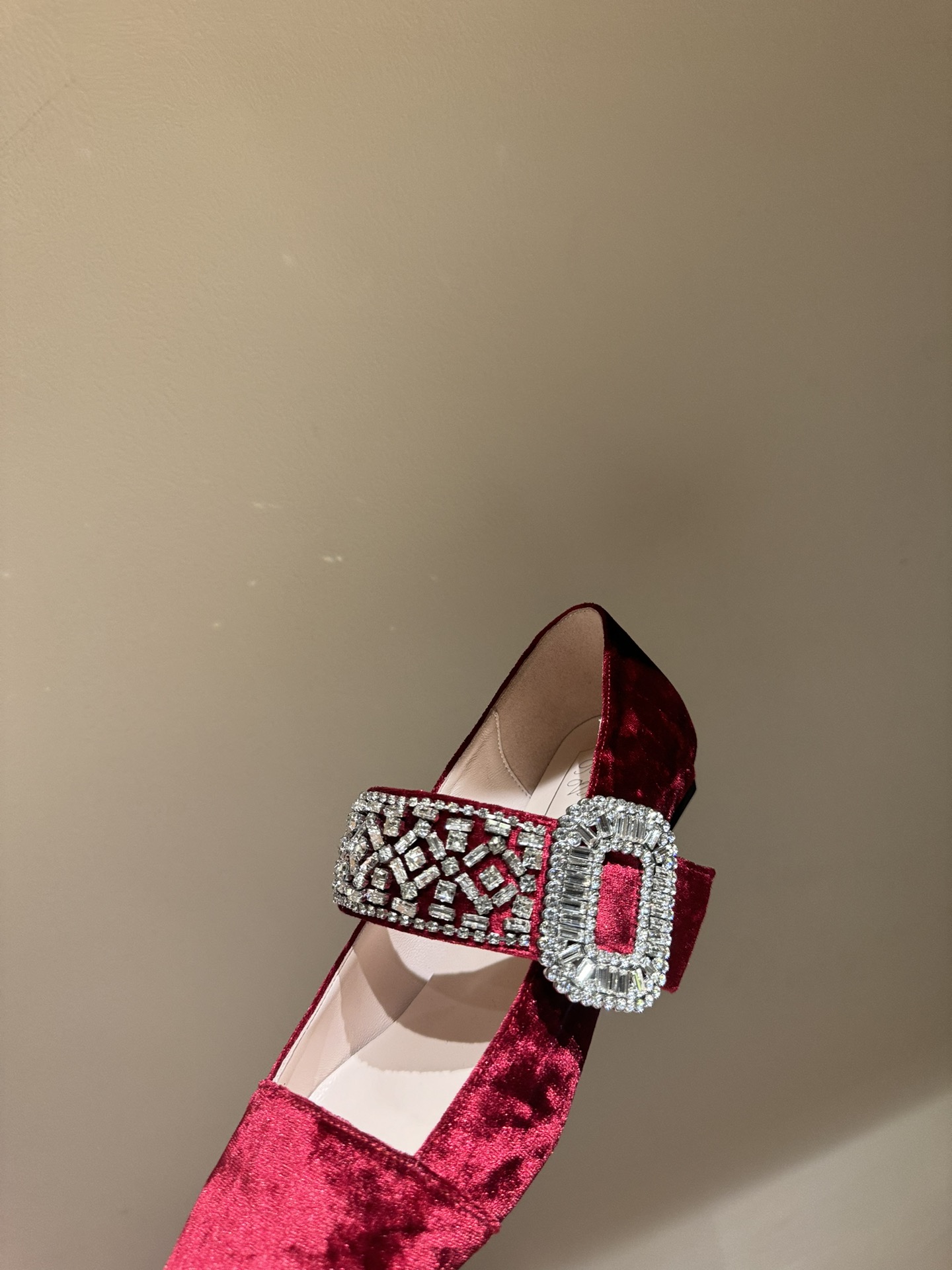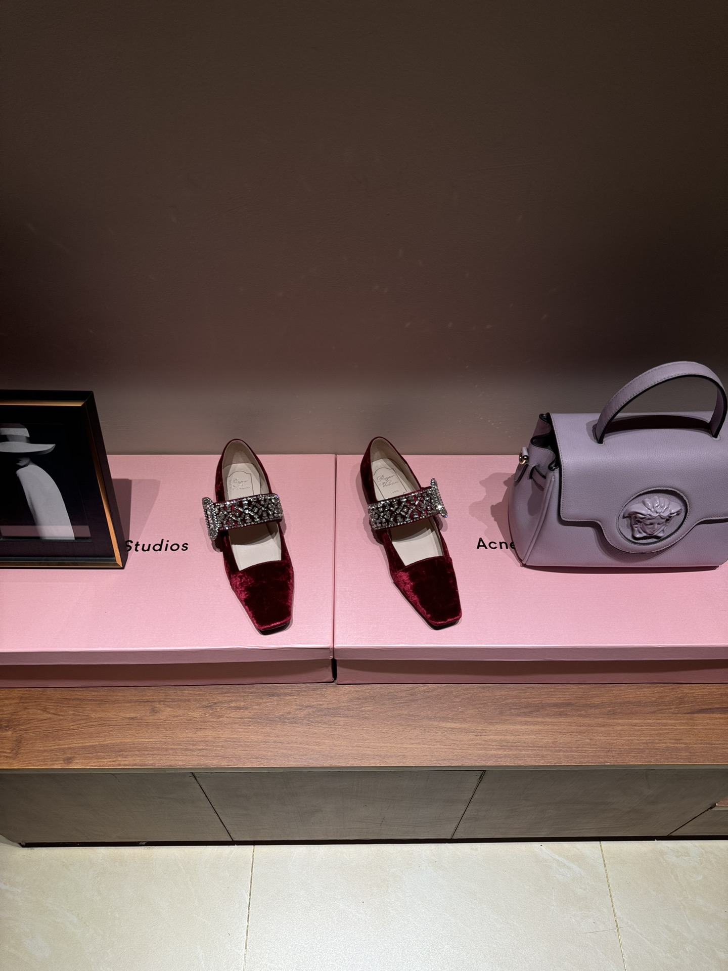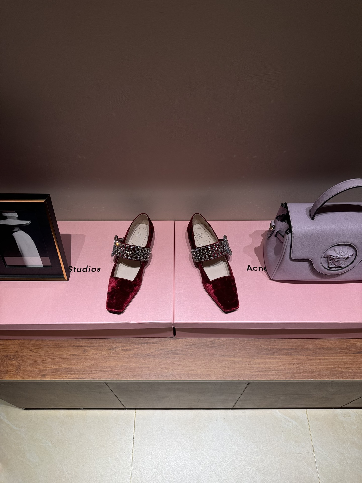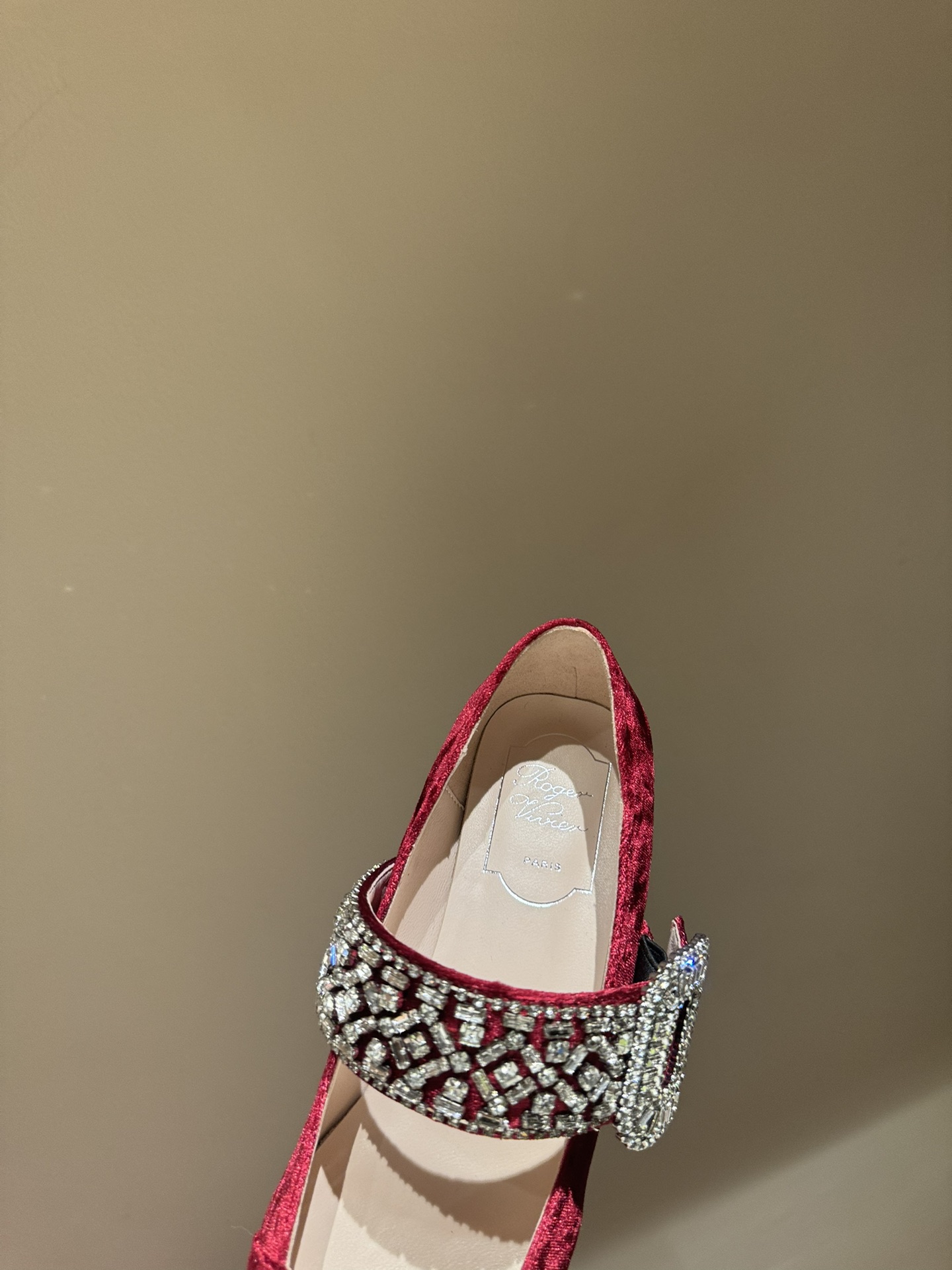 这款鞋子是AAAAA 1:1 质量 (非常棒). 使用了和原版一模一样的材料. 商标部分也保持了和罗杰维维耶/Roger Vivier一样. 图片拍摄是实物鞋子拍摄, 您所收到的实物保证和我们图片一模一样.