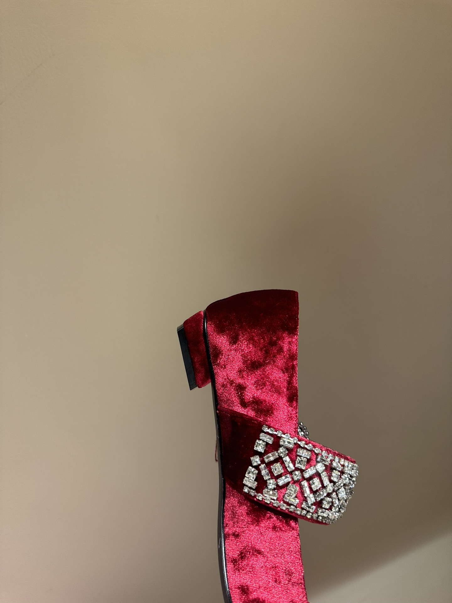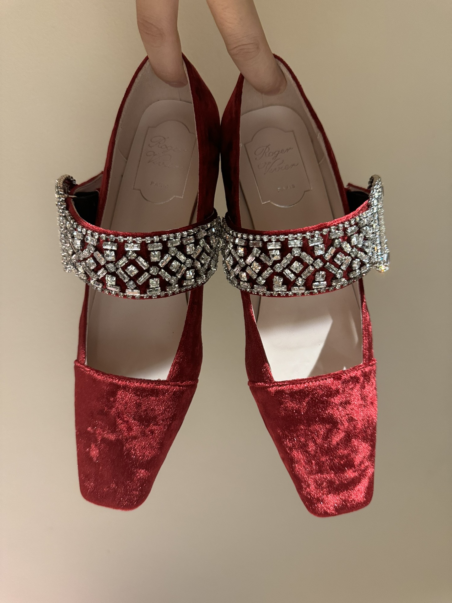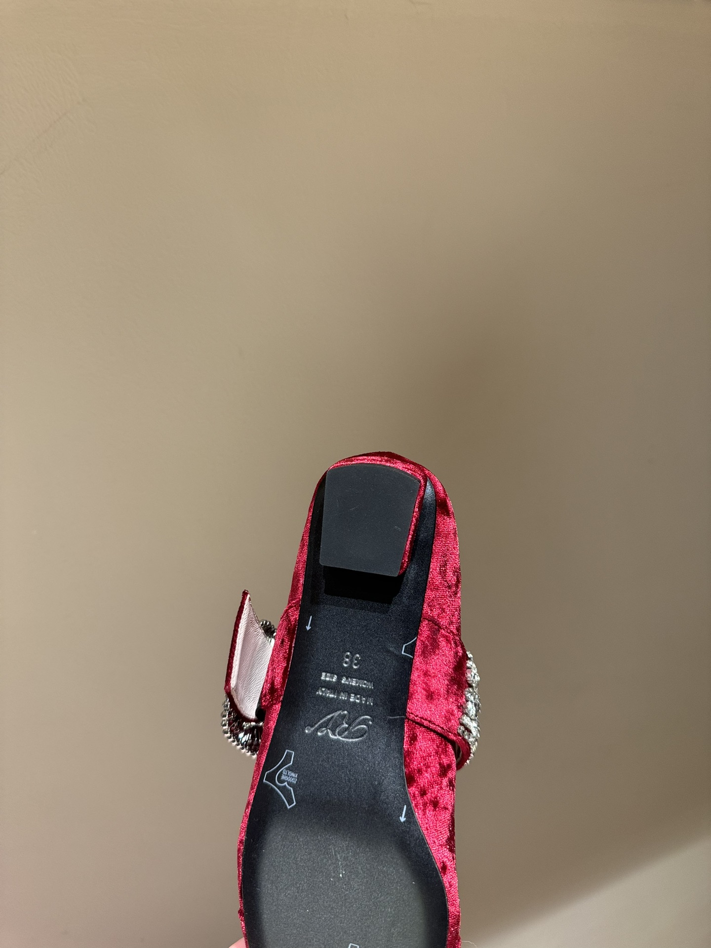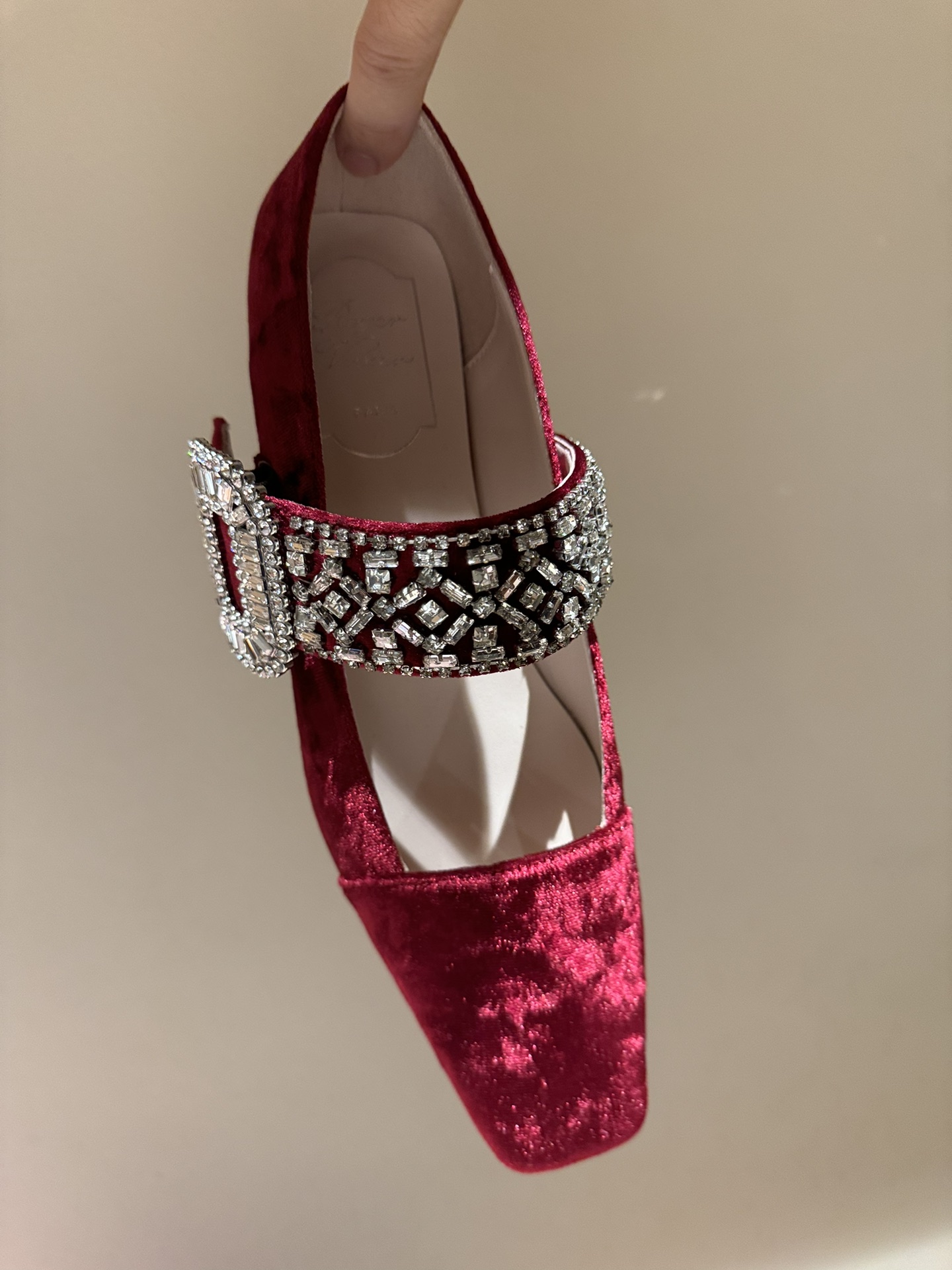 这款鞋子是AAAAA 1:1 质量 (非常棒). 使用了和原版一模一样的材料. 商标部分也保持了和罗杰维维耶/Roger Vivier一样. 图片拍摄是实物鞋子拍摄, 您所收到的实物保证和我们图片一模一样.