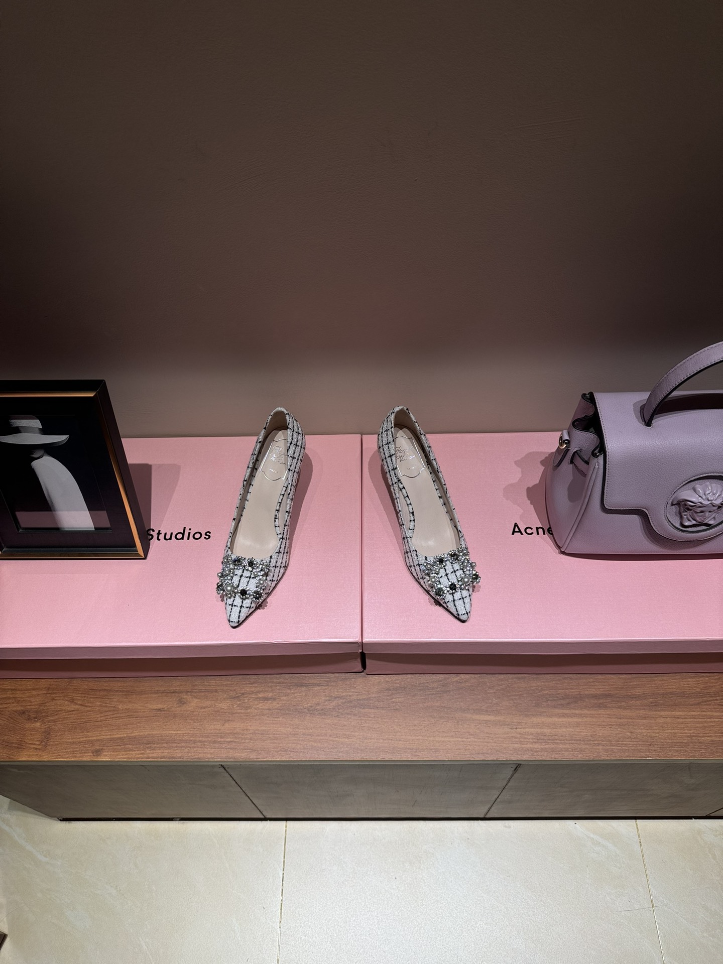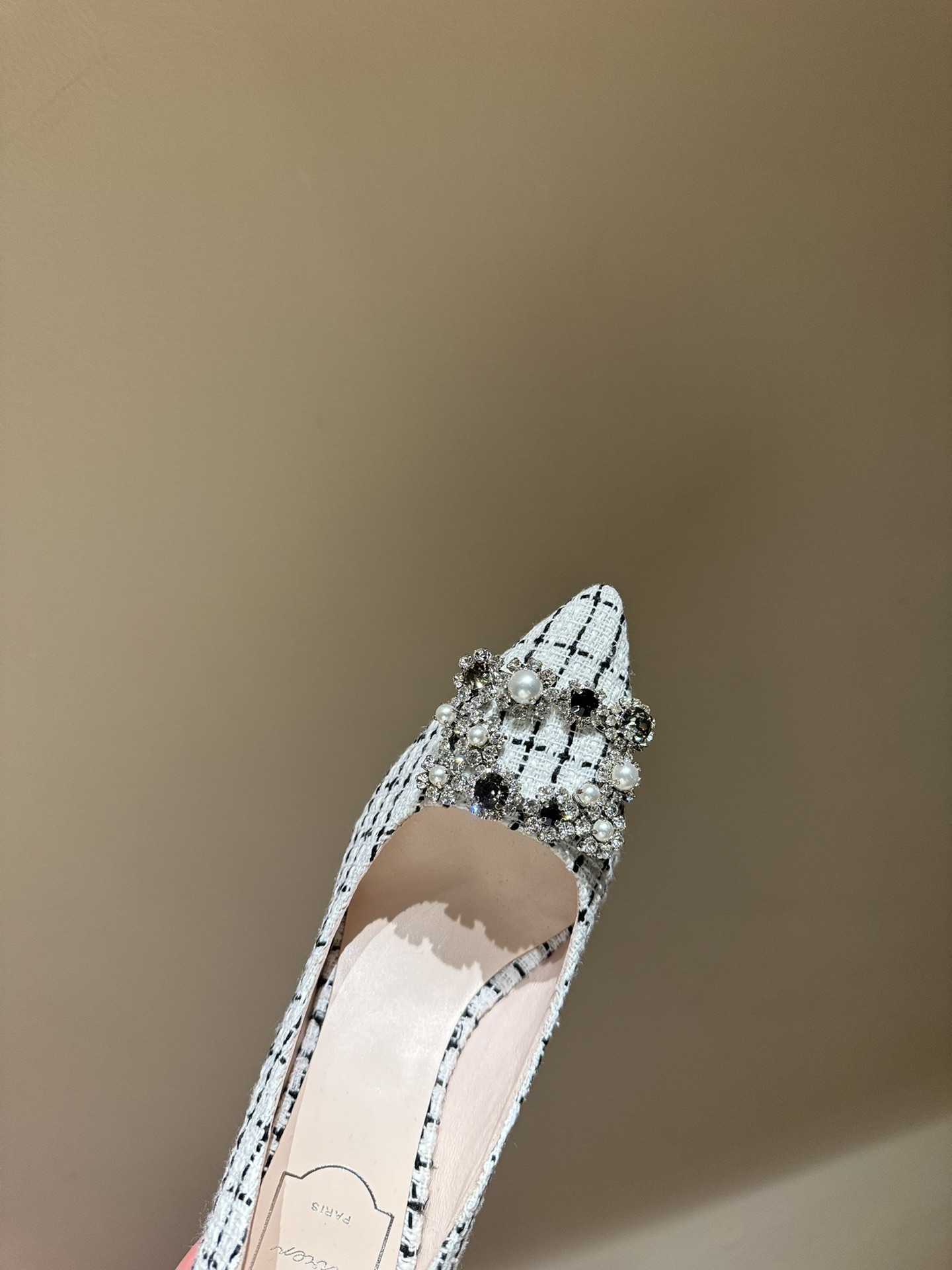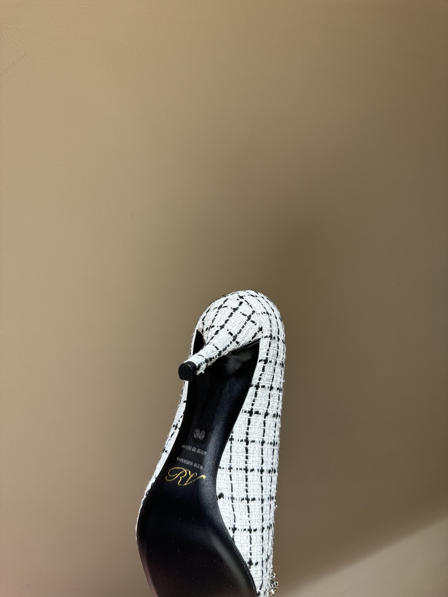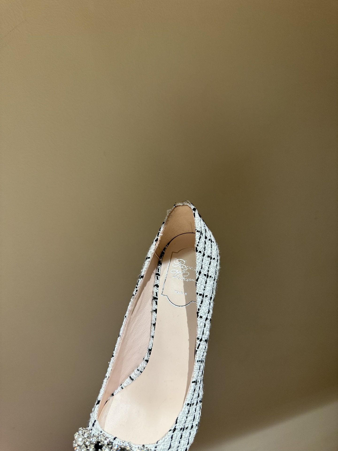 这款鞋子是AAAAA 1:1 质量 (非常棒). 使用了和原版一模一样的材料. 商标部分也保持了和罗杰维维耶/Roger Vivier一样. 图片拍摄是实物鞋子拍摄, 您所收到的实物保证和我们图片一模一样.