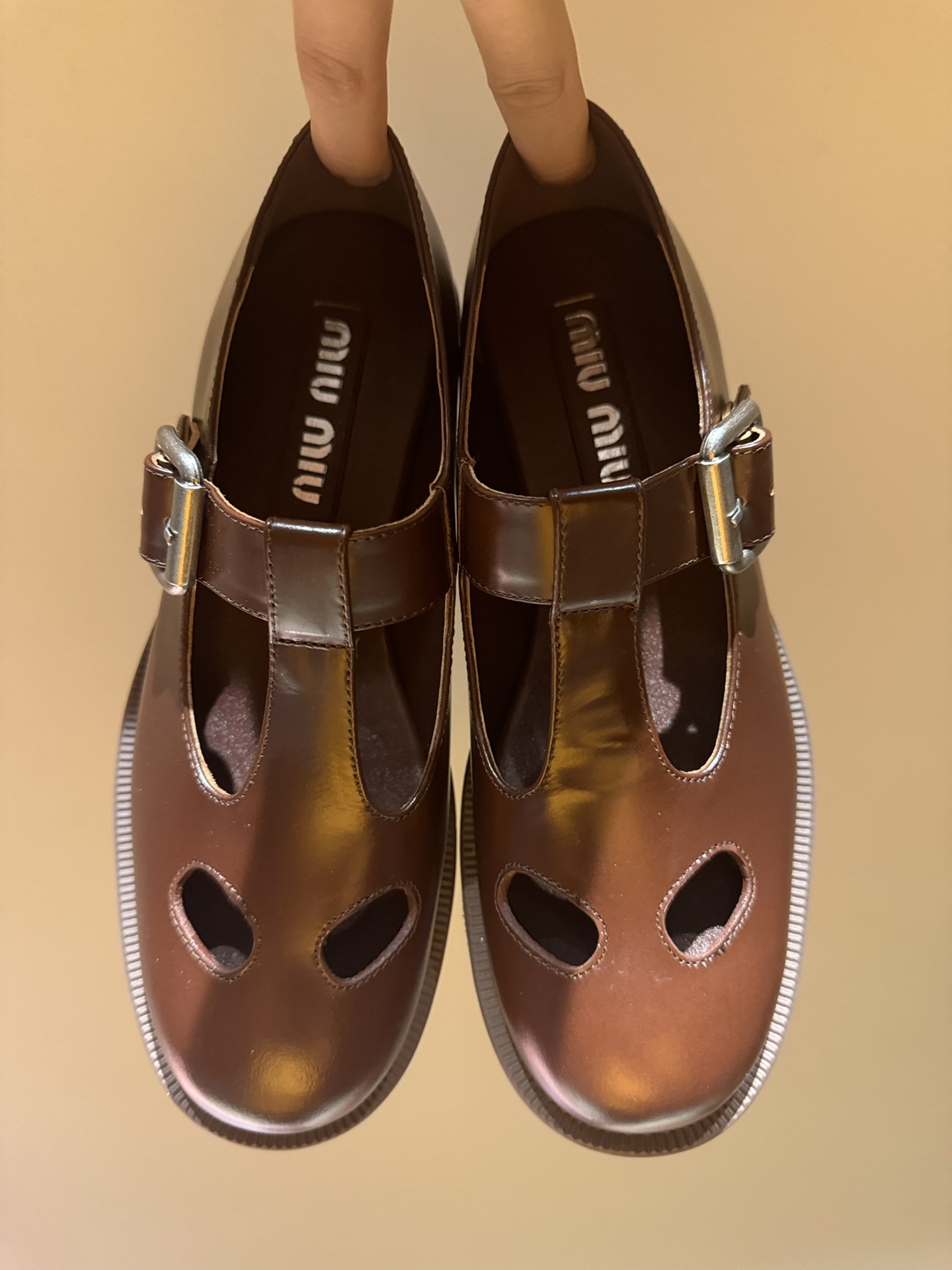 这款鞋子是AAAAA 1:1 质量 (非常棒). 使用了和原版一模一样的材料. 商标部分也保持了和缪缪/Miu Miu一样. 图片拍摄是实物鞋子拍摄, 您所收到的实物保证和我们图片一模一样.