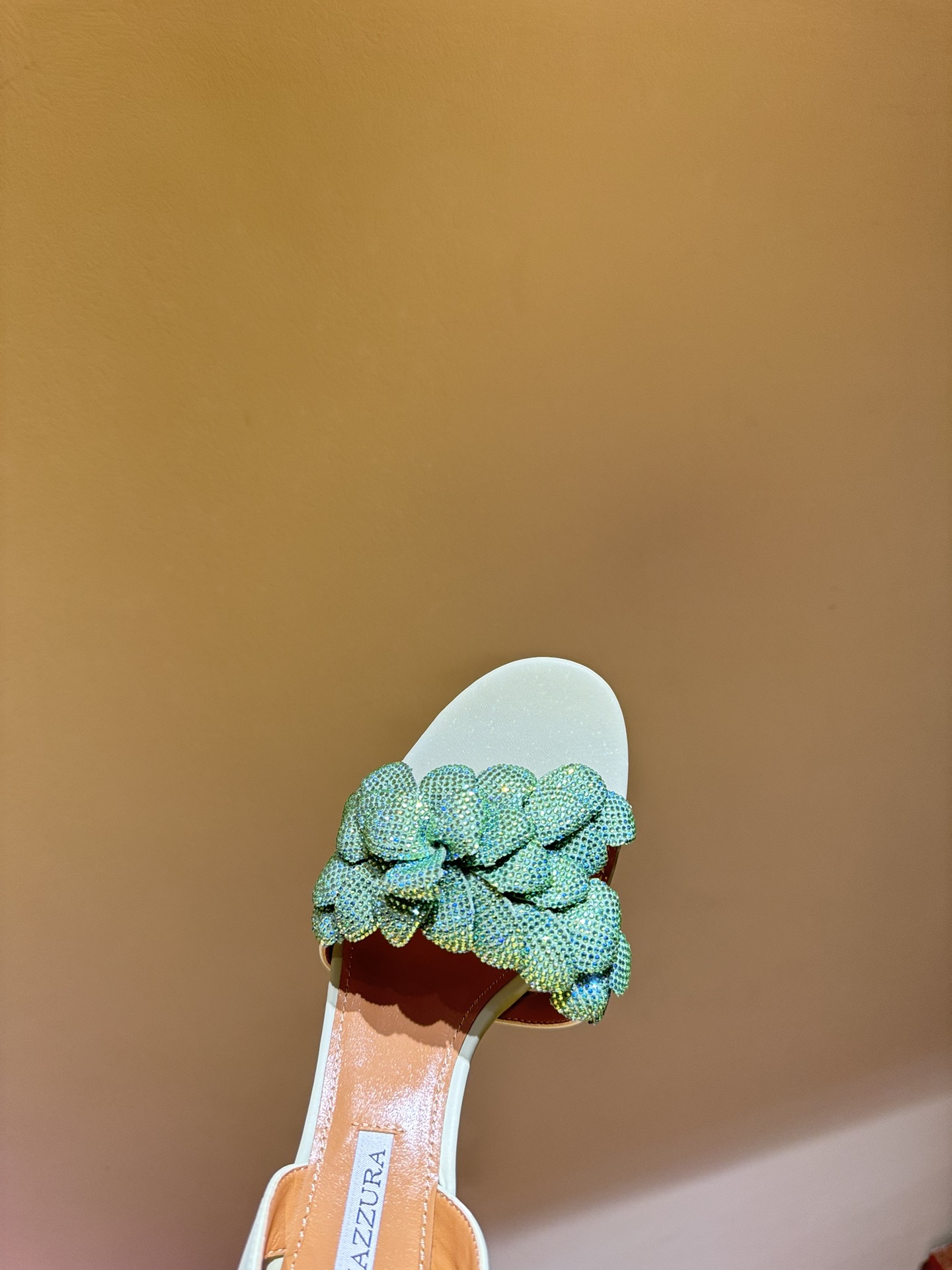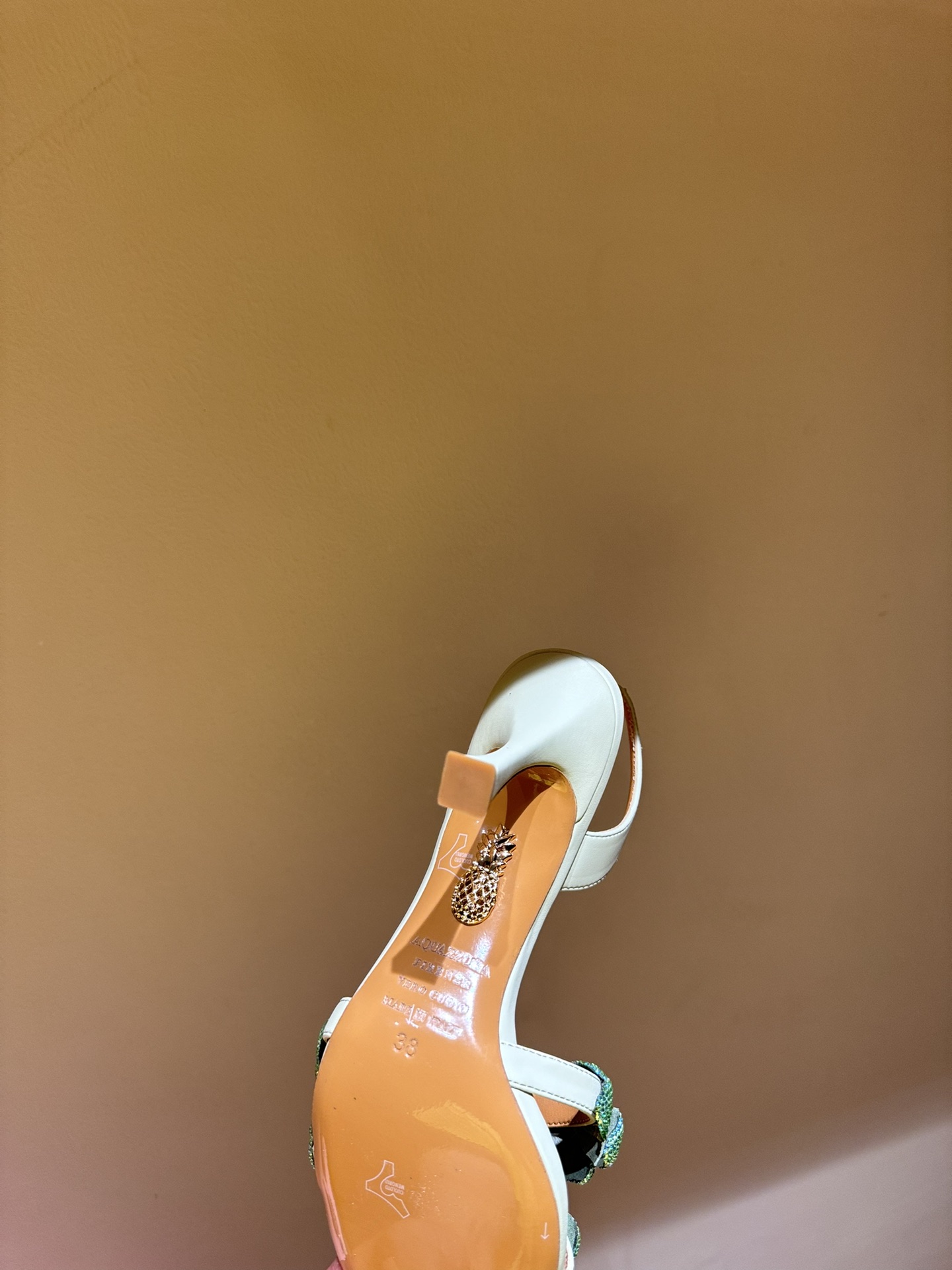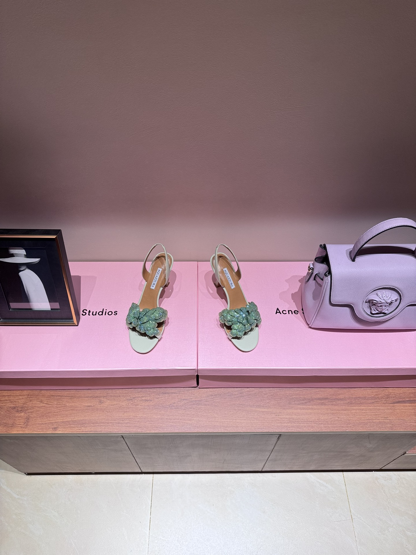 这款鞋子是AAAAA 1:1 质量 (非常棒). 使用了和原版一模一样的材料. 商标部分也保持了和Aquazzura一样. 图片拍摄是实物鞋子拍摄, 您所收到的实物保证和我们图片一模一样.
