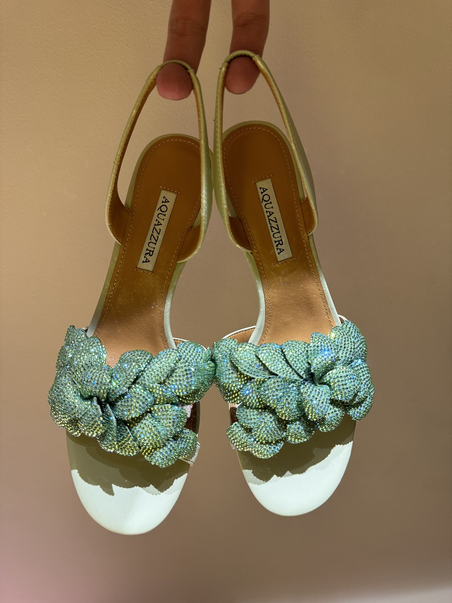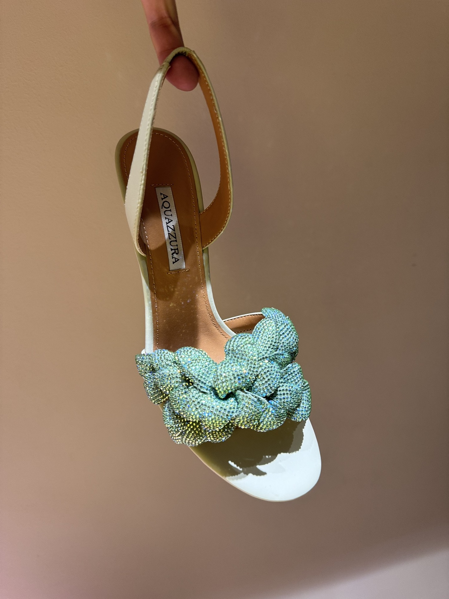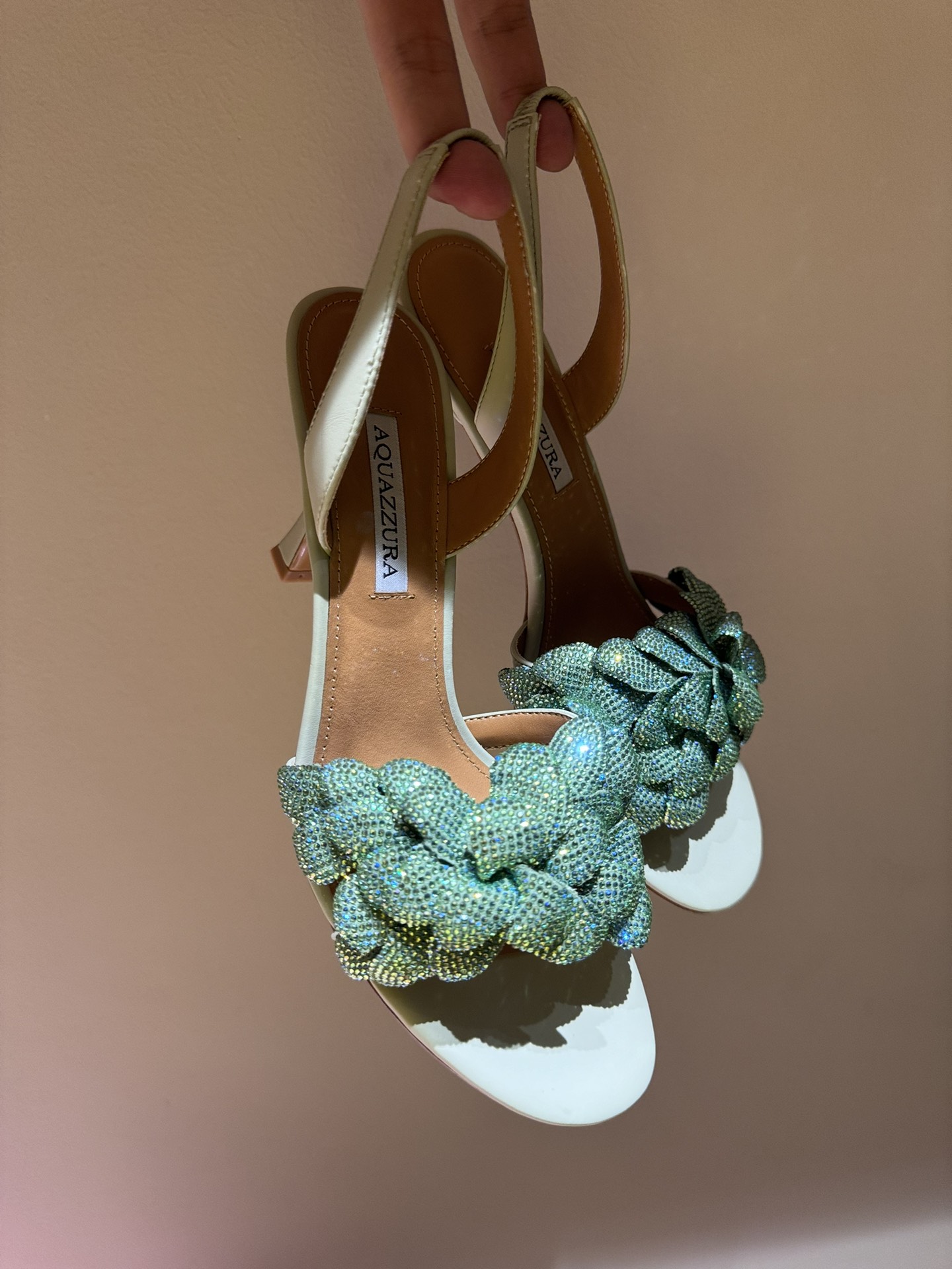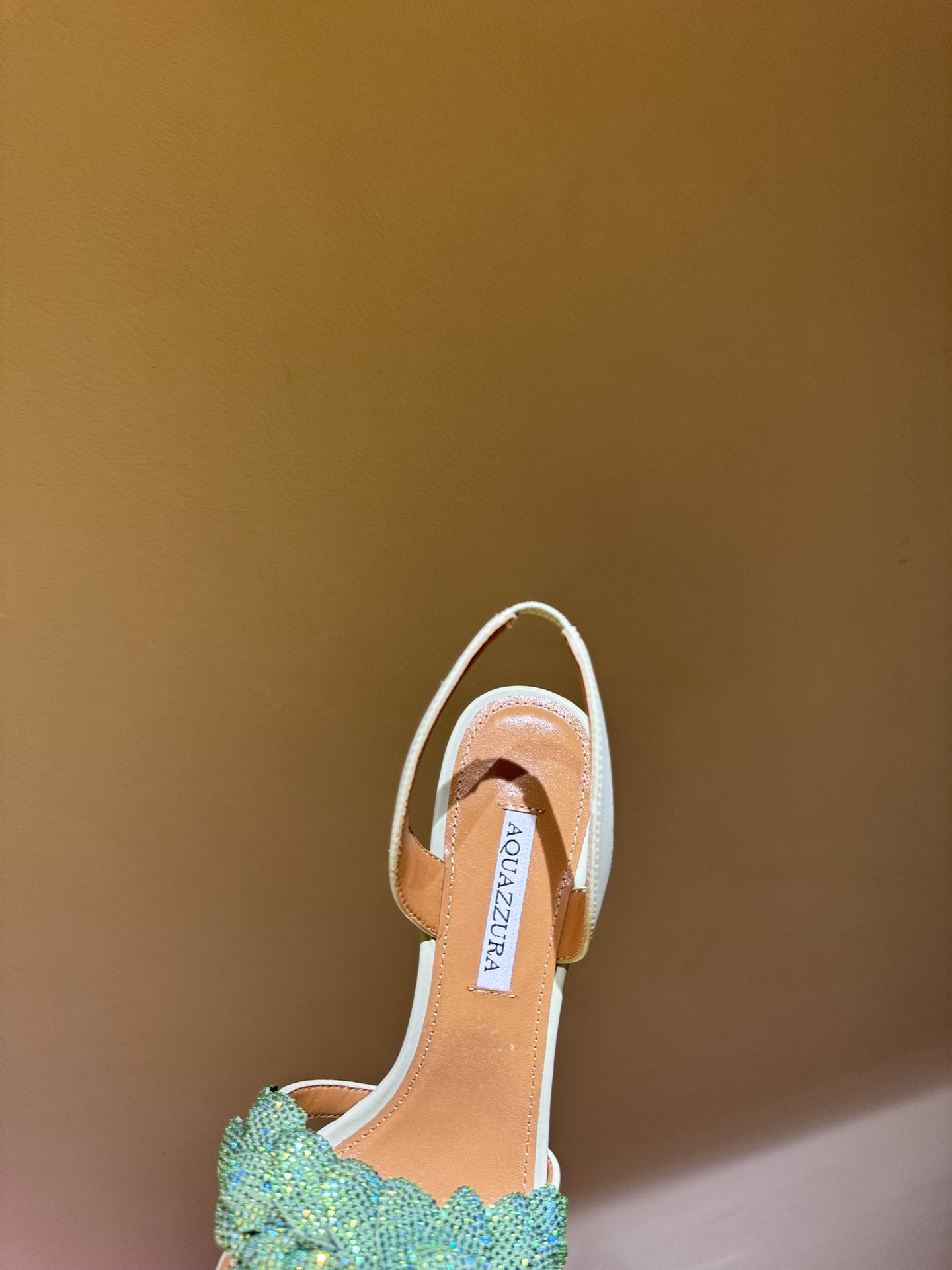 这款鞋子是AAAAA 1:1 质量 (非常棒). 使用了和原版一模一样的材料. 商标部分也保持了和Aquazzura一样. 图片拍摄是实物鞋子拍摄, 您所收到的实物保证和我们图片一模一样.