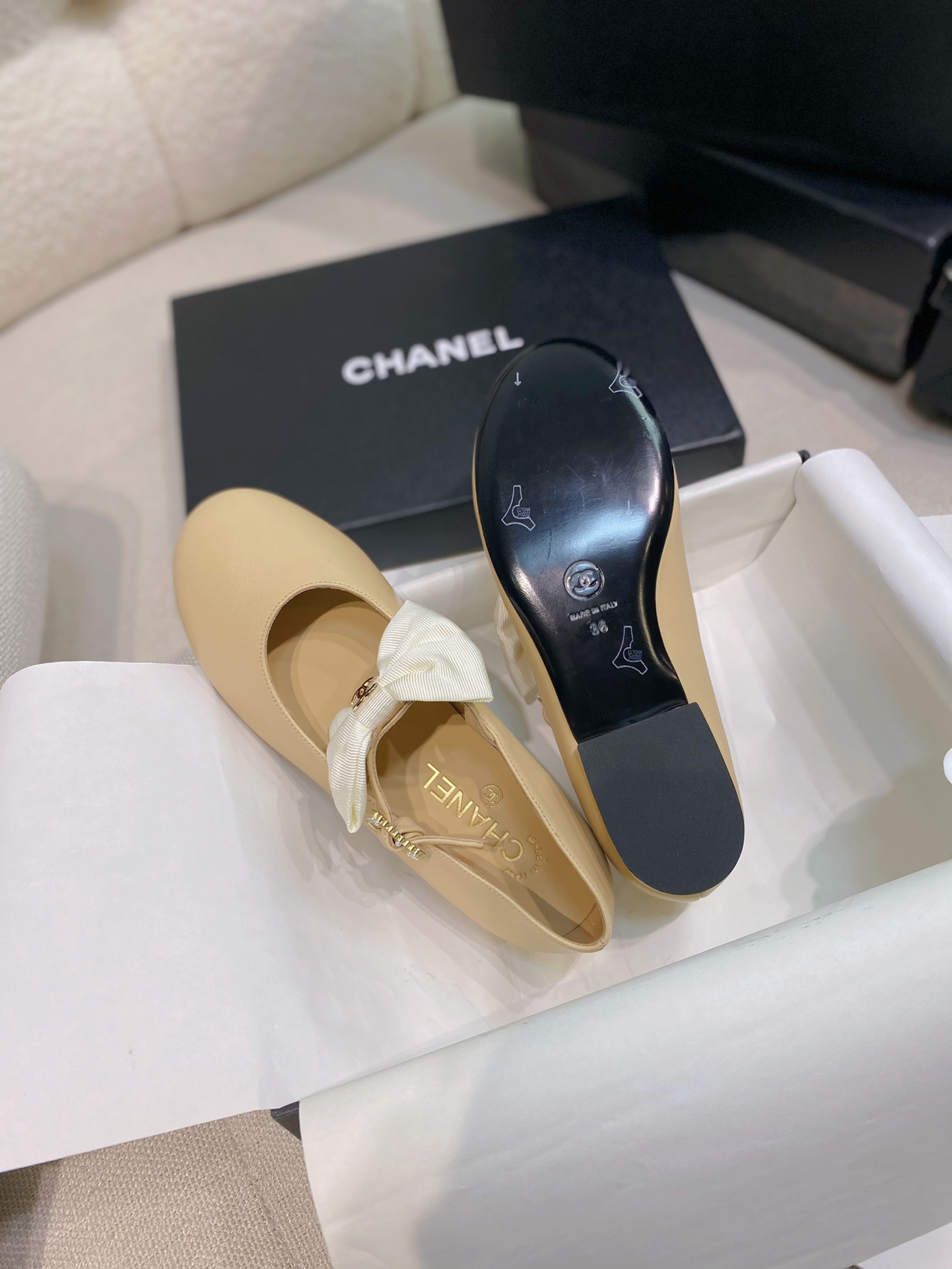 这款鞋子是AAAAA 1:1 质量 (非常棒). 使用了和原版一模一样的材料. 商标部分也保持了和香奈儿/Chanel一样. 图片拍摄是实物鞋子拍摄, 您所收到的实物保证和我们图片一模一样.