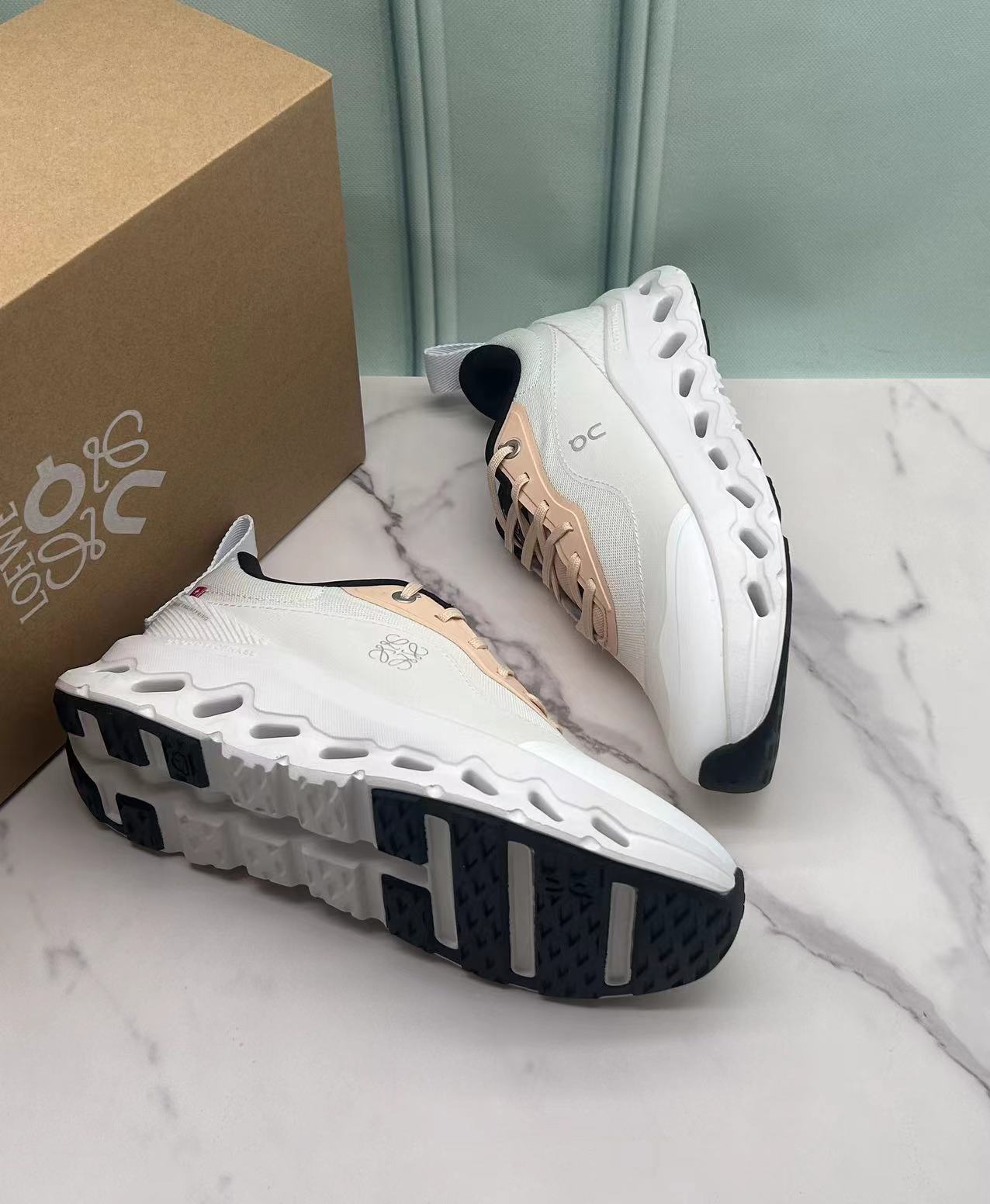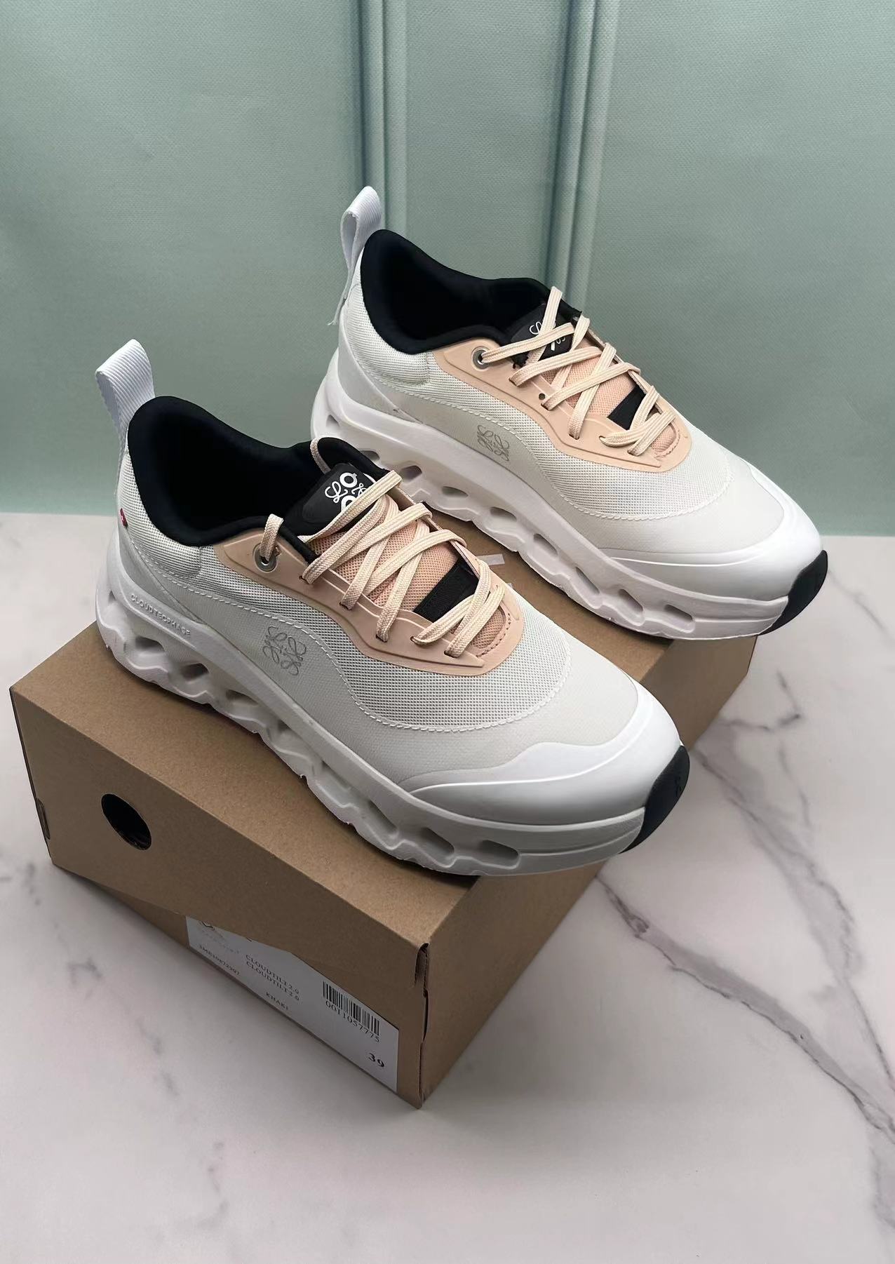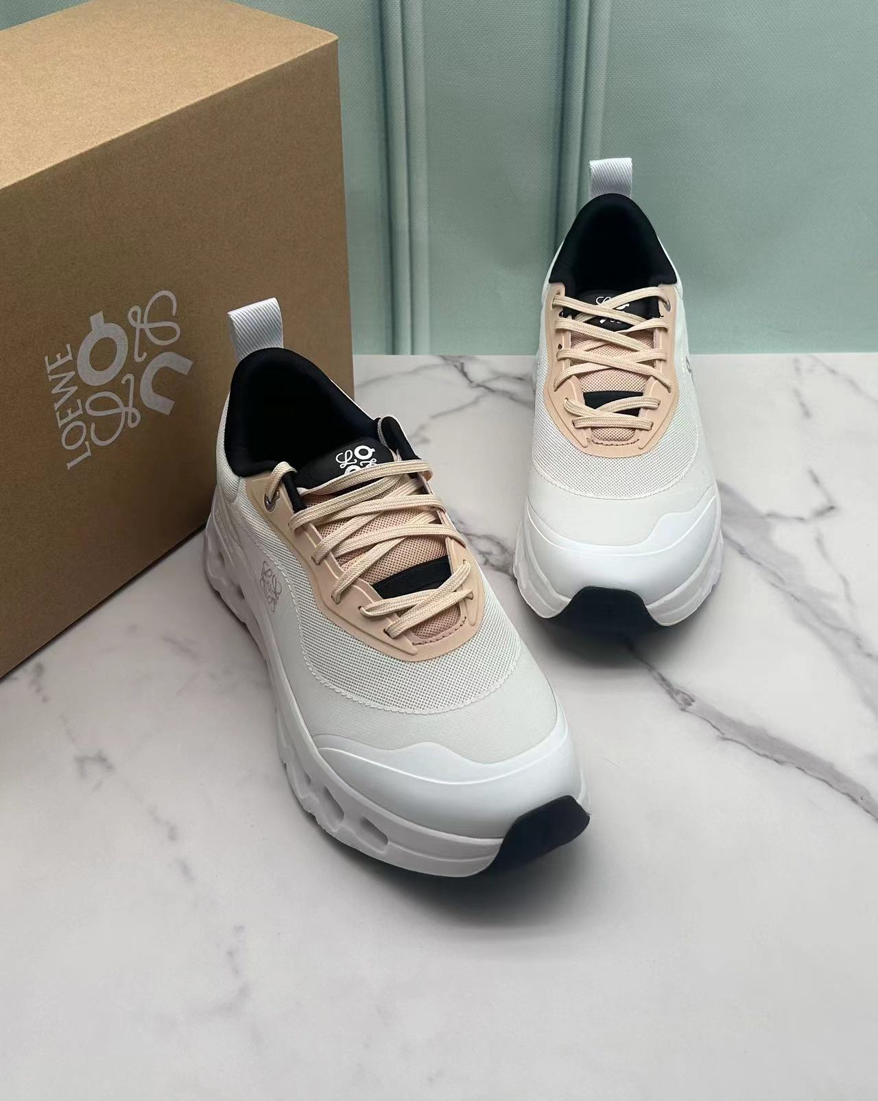 这款鞋子是AAAAA 1:1 质量 (非常棒). 使用了和原版一模一样的材料. 商标部分也保持了和Loewe & On一样. 图片拍摄是实物鞋子拍摄, 您所收到的实物保证和我们图片一模一样.