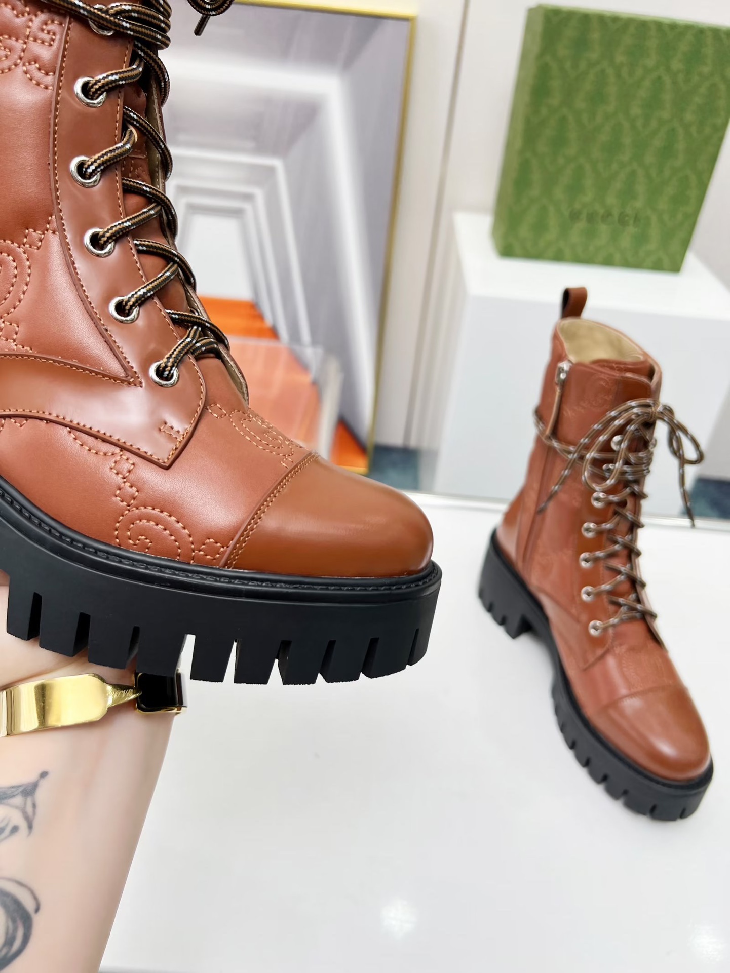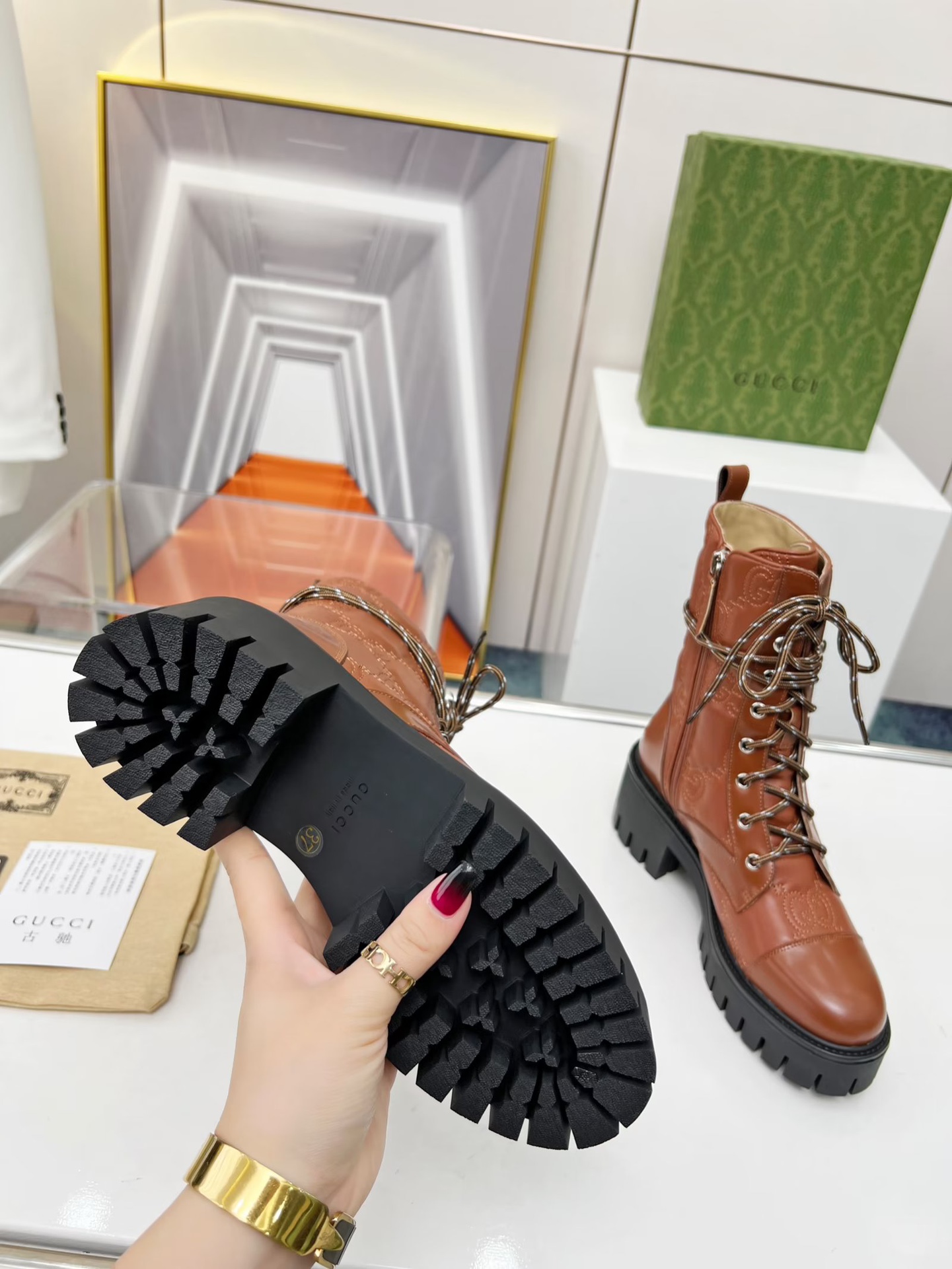 这款鞋子是AAAAA 1:1 质量 (非常棒). 使用了和原版一模一样的材料. 商标部分也保持了和古奇/Gucci一样. 图片拍摄是实物鞋子拍摄, 您所收到的实物保证和我们图片一模一样.