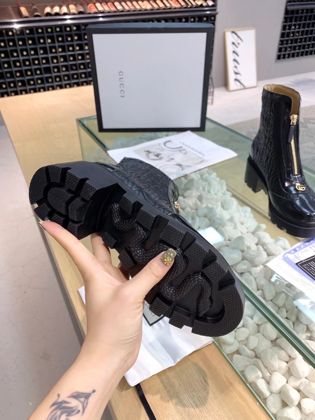 这款鞋子是AAAAA 1:1 质量 (非常棒). 使用了和原版一模一样的材料. 商标部分也保持了和古奇/Gucci一样. 图片拍摄是实物鞋子拍摄, 您所收到的实物保证和我们图片一模一样.