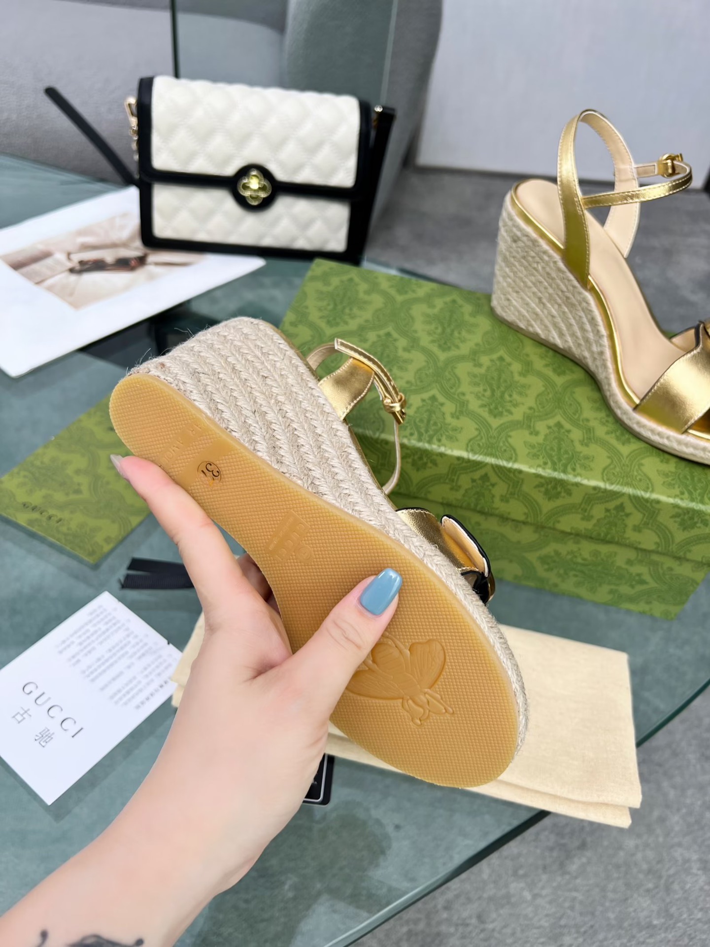 这款鞋子是AAAAA 1:1 质量 (非常棒). 使用了和原版一模一样的材料. 商标部分也保持了和古奇/Gucci一样. 图片拍摄是实物鞋子拍摄, 您所收到的实物保证和我们图片一模一样.