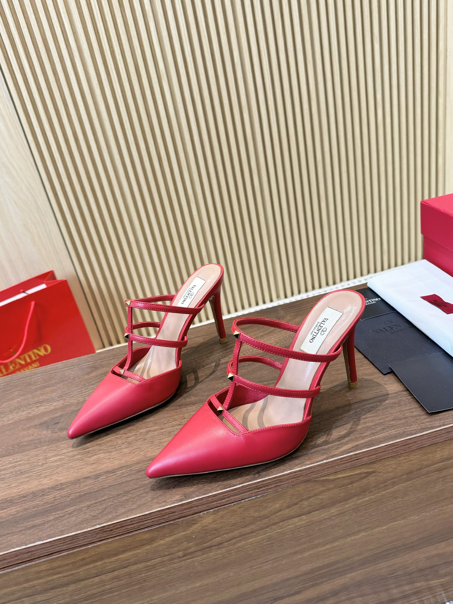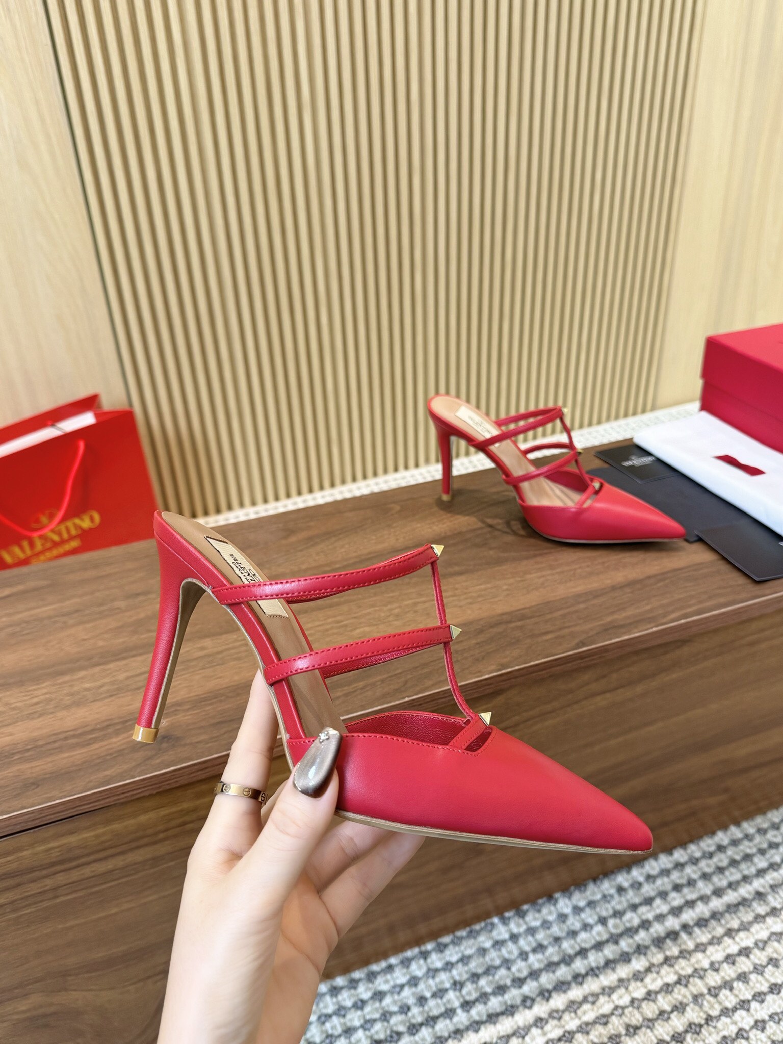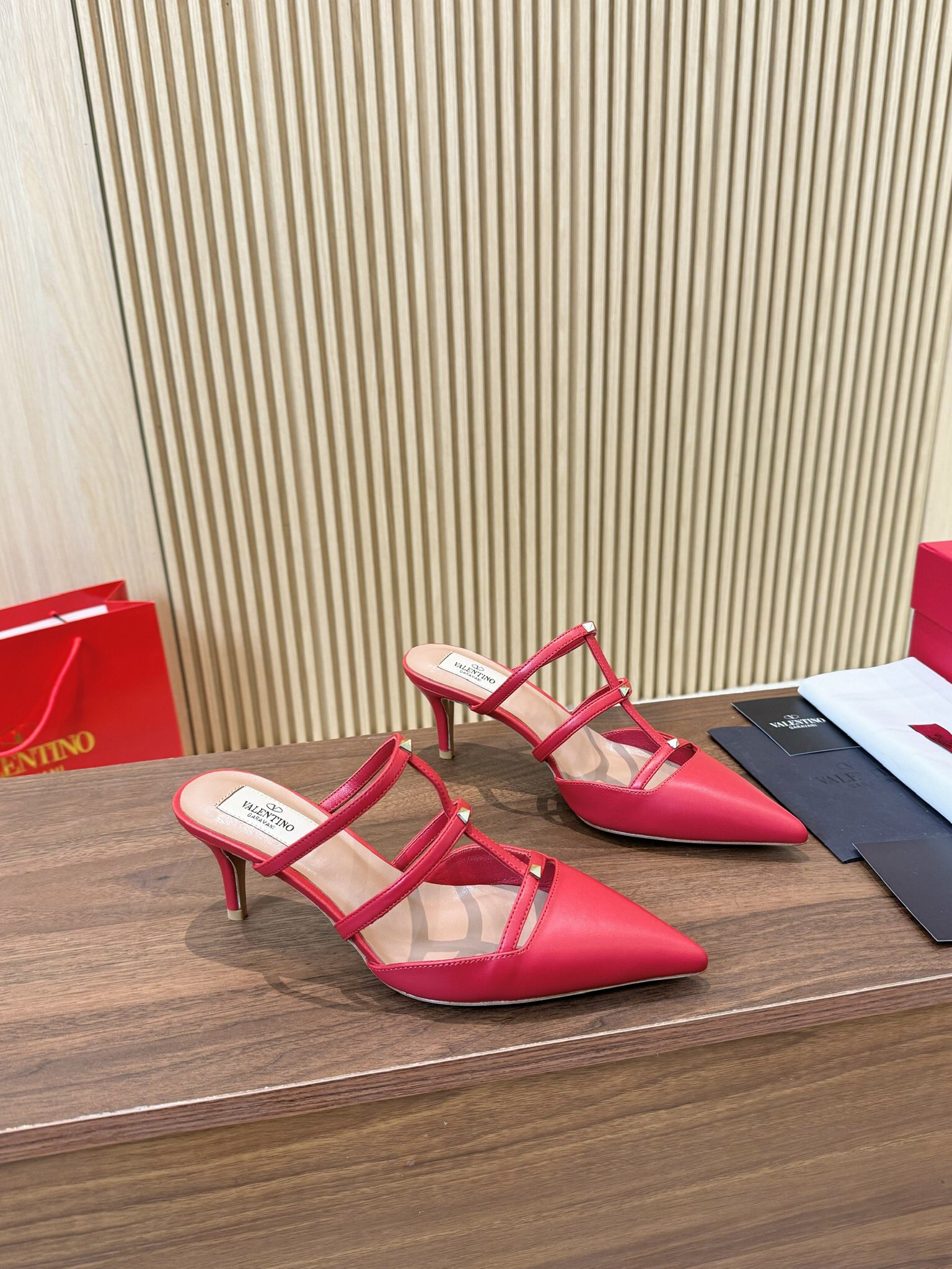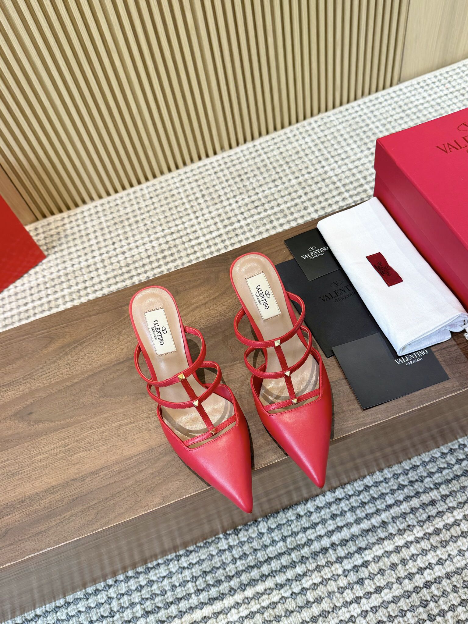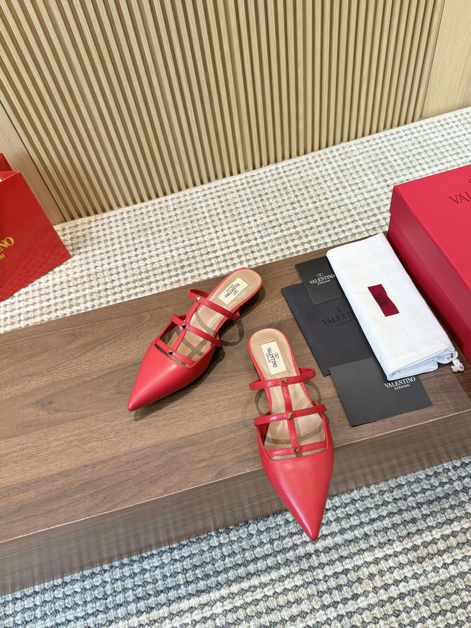 这款鞋子是AAAAA 1:1 质量 (非常棒). 使用了和原版一模一样的材料. 商标部分也保持了和华伦天奴/Valentino一样. 图片拍摄是实物鞋子拍摄, 您所收到的实物保证和我们图片一模一样.