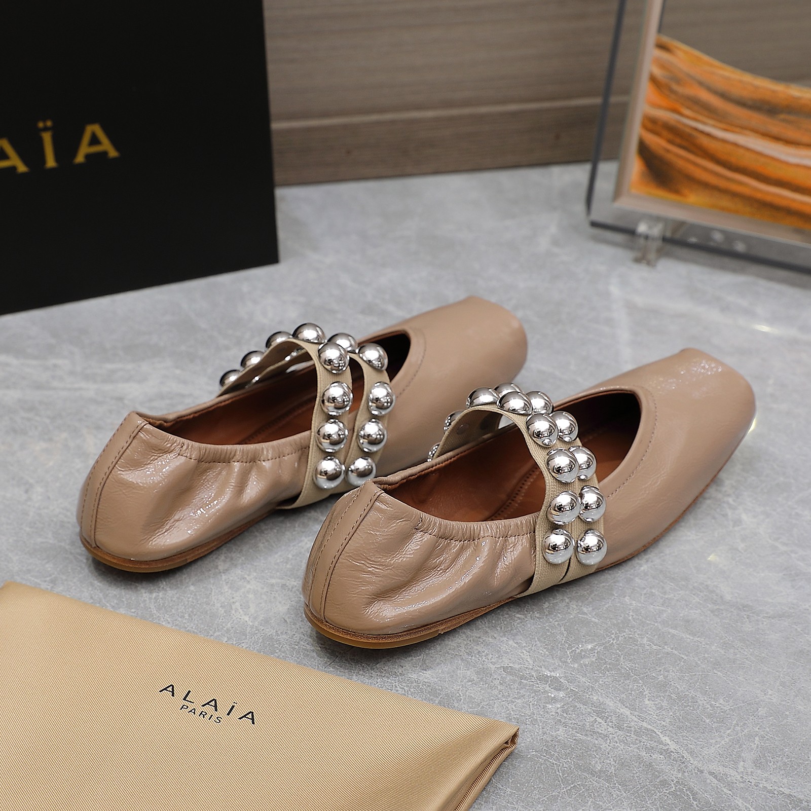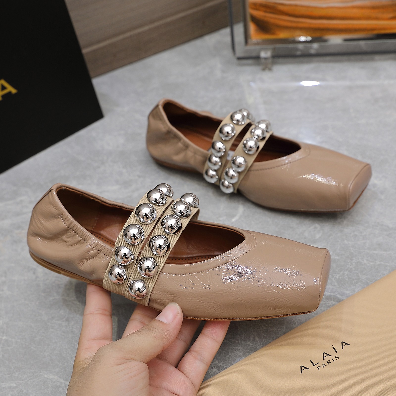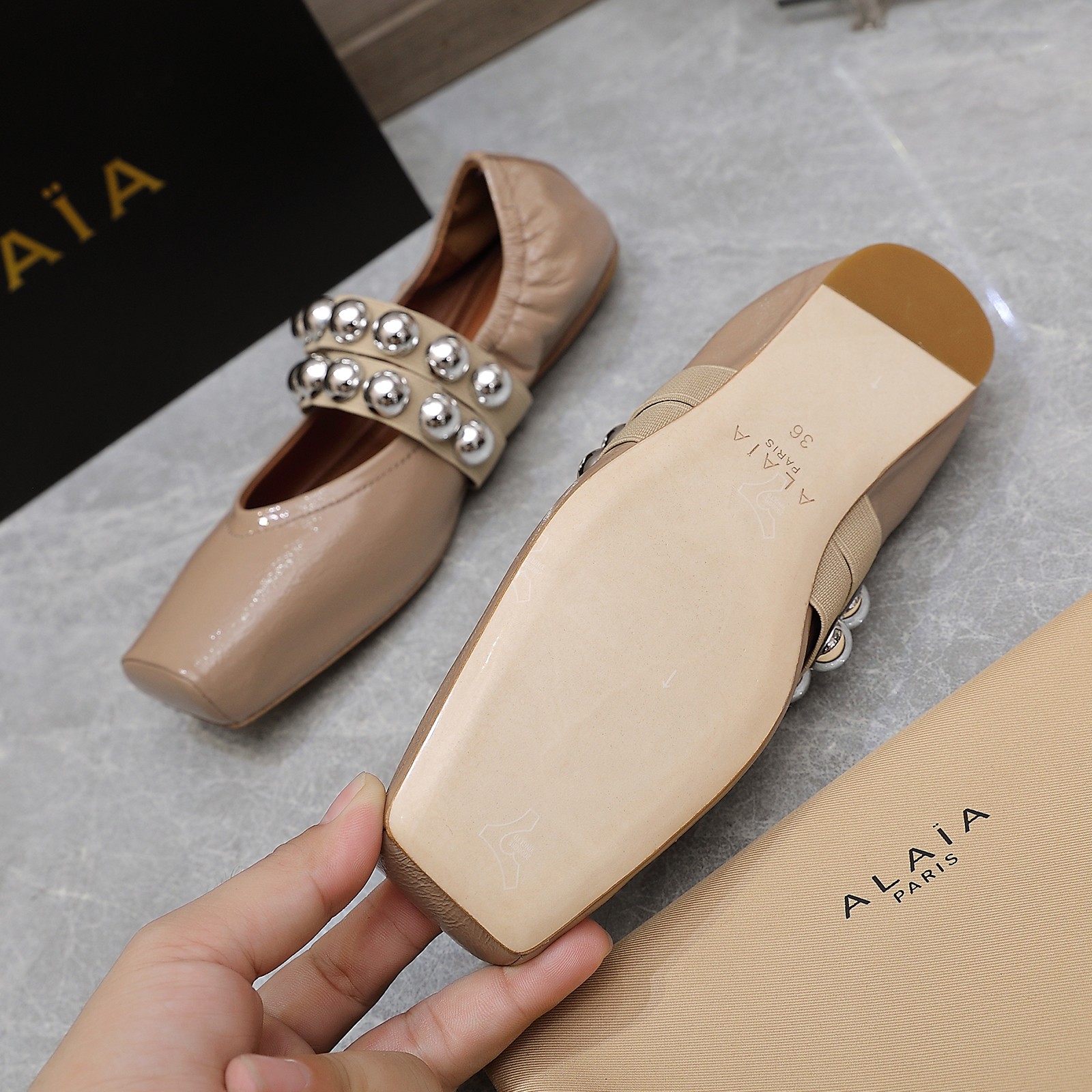 这款鞋子是AAAAA 1:1 质量 (非常棒). 使用了和原版一模一样的材料. 商标部分也保持了和Alaia一样. 图片拍摄是实物鞋子拍摄, 您所收到的实物保证和我们图片一模一样.