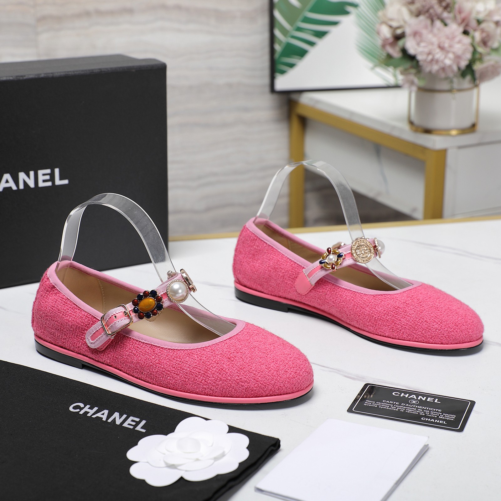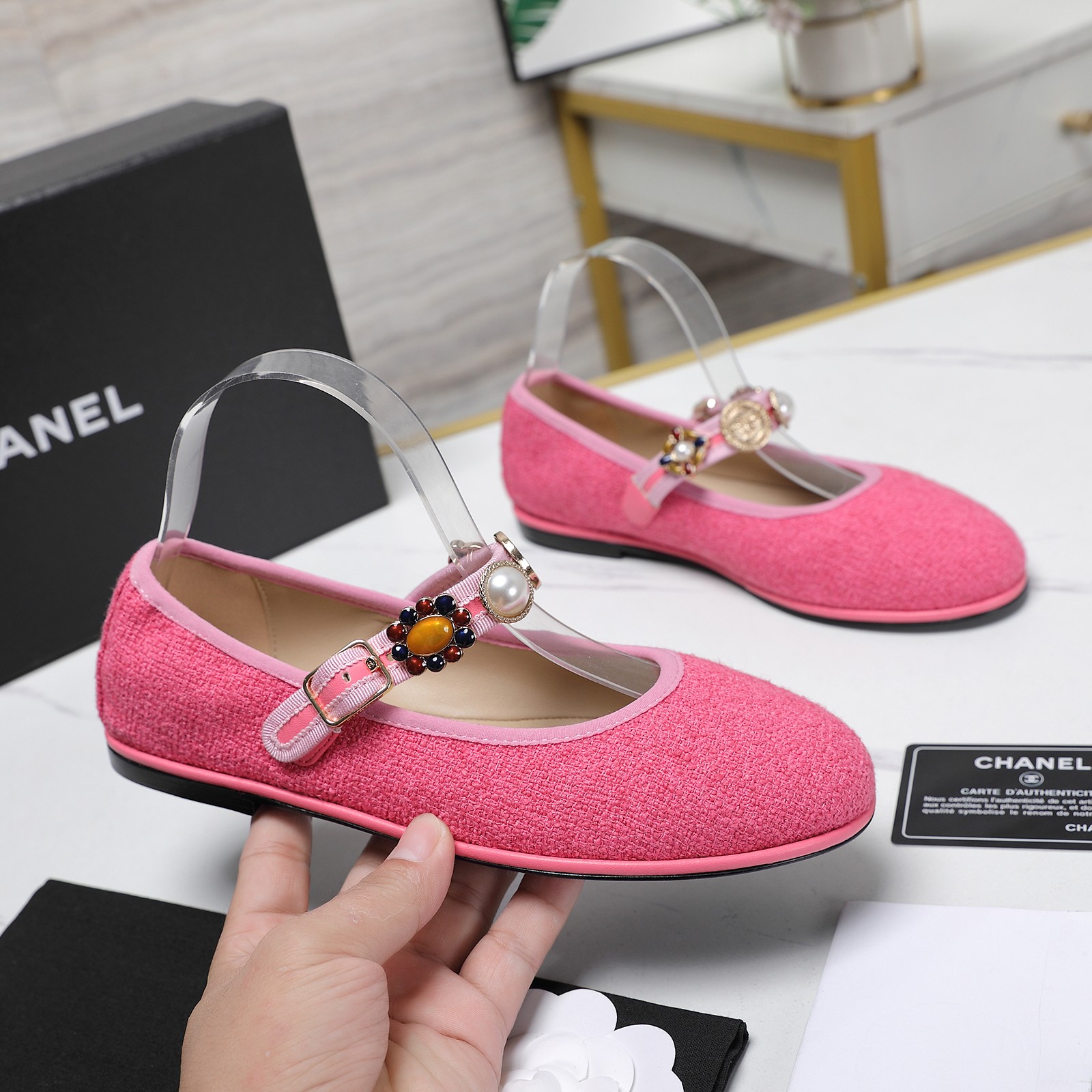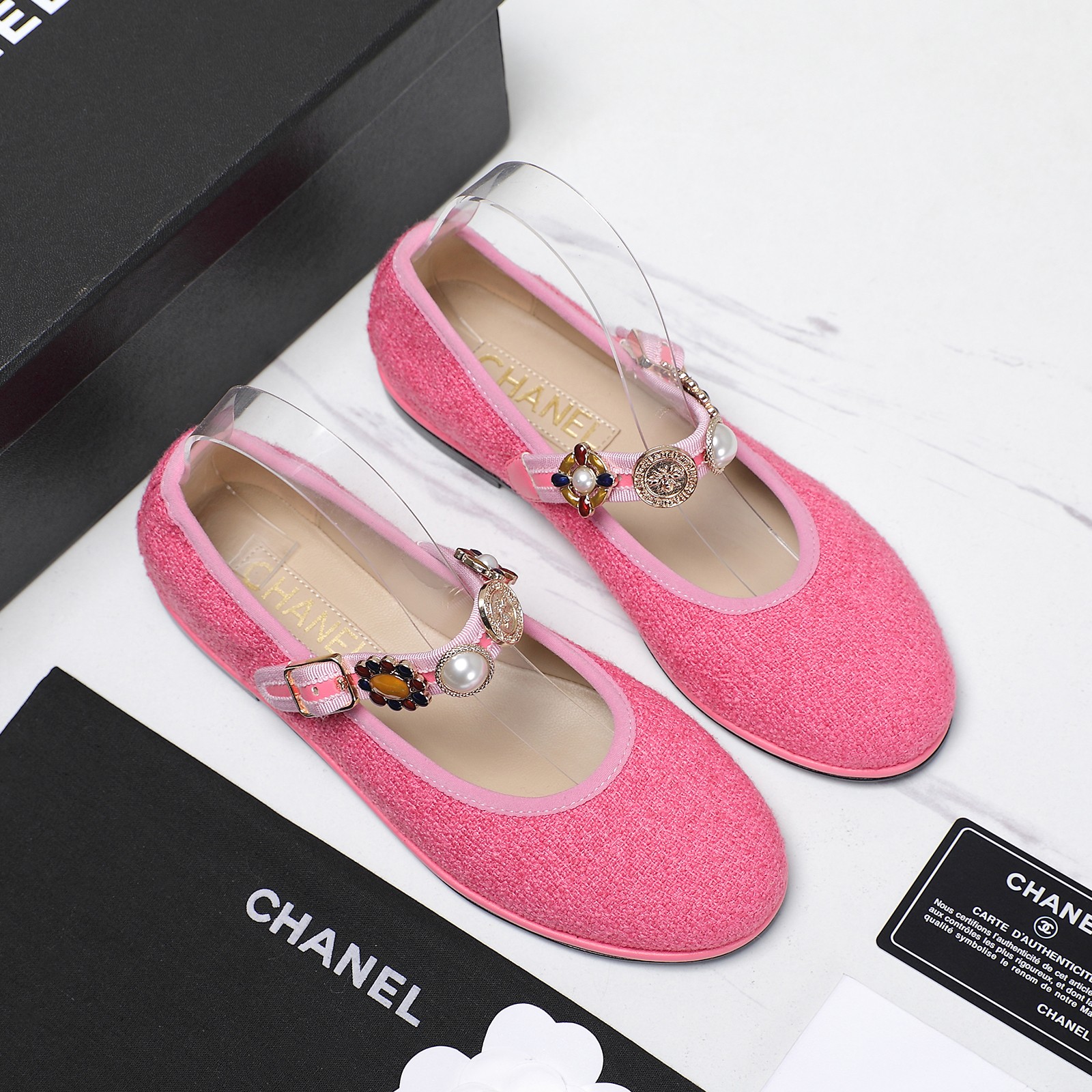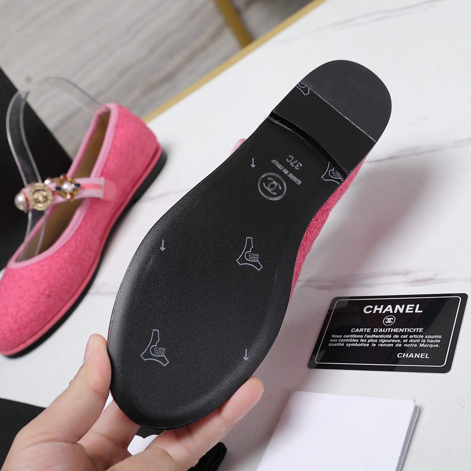 这款鞋子是AAAAA 1:1 质量 (非常棒). 使用了和原版一模一样的材料. 商标部分也保持了和香奈儿/Chanel一样. 图片拍摄是实物鞋子拍摄, 您所收到的实物保证和我们图片一模一样.
