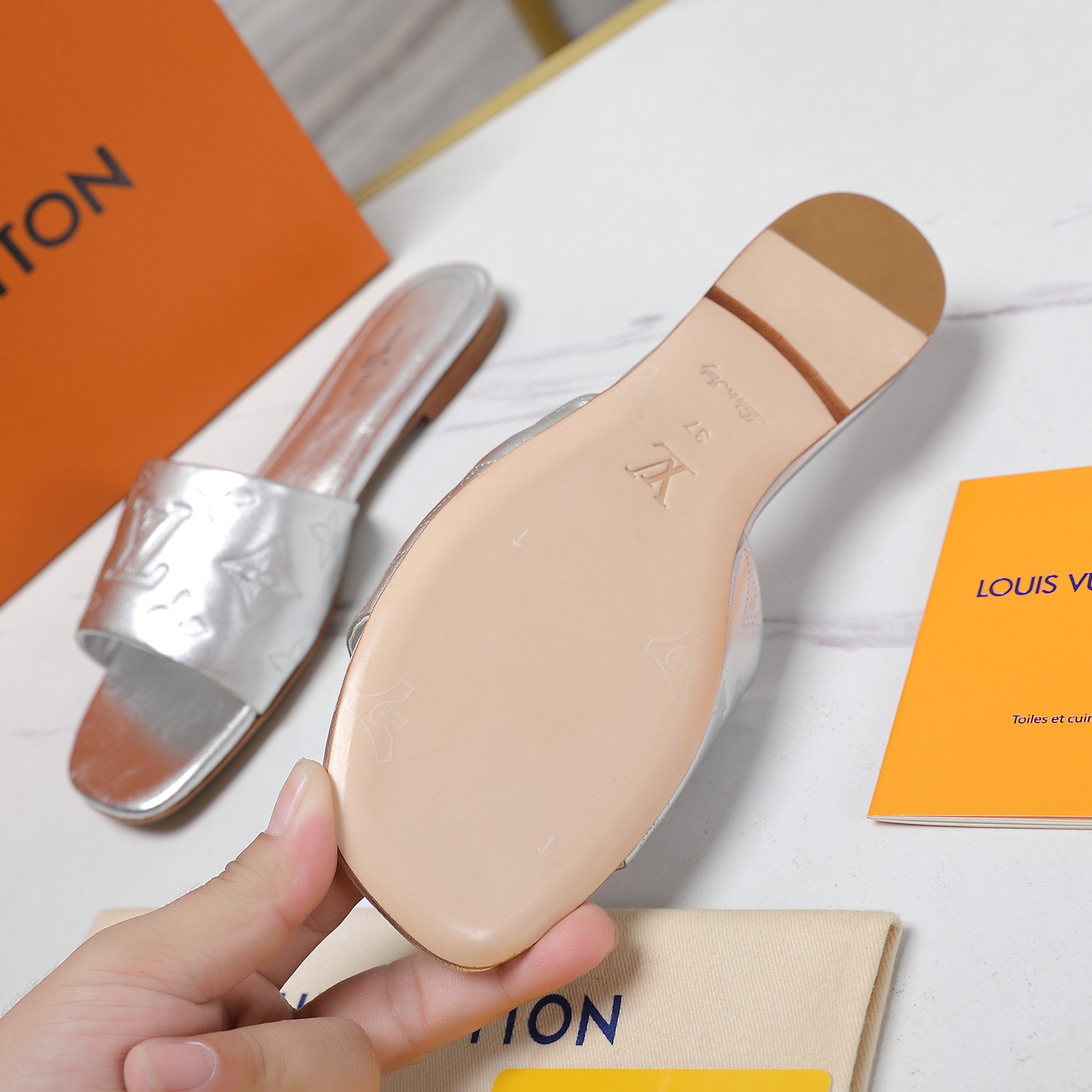这款鞋子是AAAAA 1:1 质量 (非常棒). 使用了和原版一模一样的材料. 商标部分也保持了和路易威登/Louis Vuitton一样. 图片拍摄是实物鞋子拍摄, 您所收到的实物保证和我们图片一模一样.