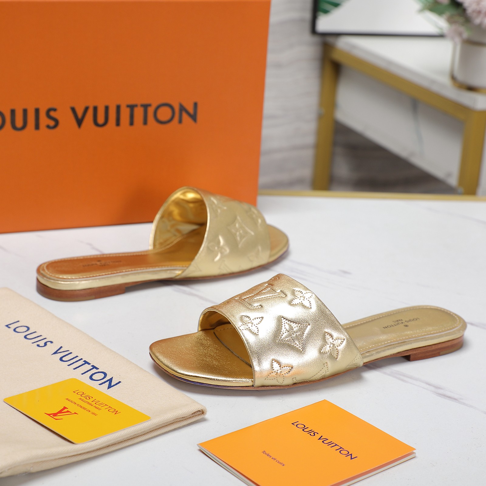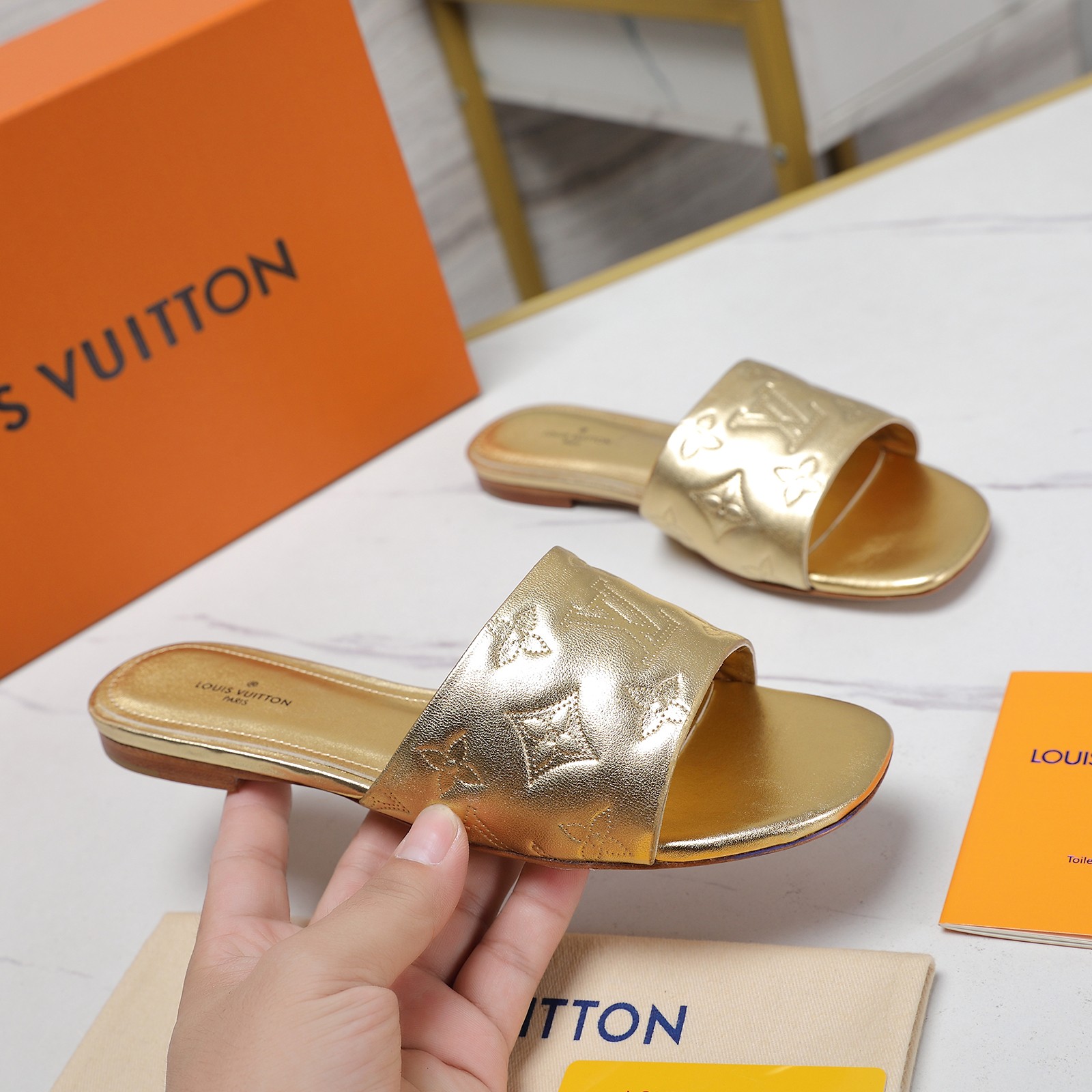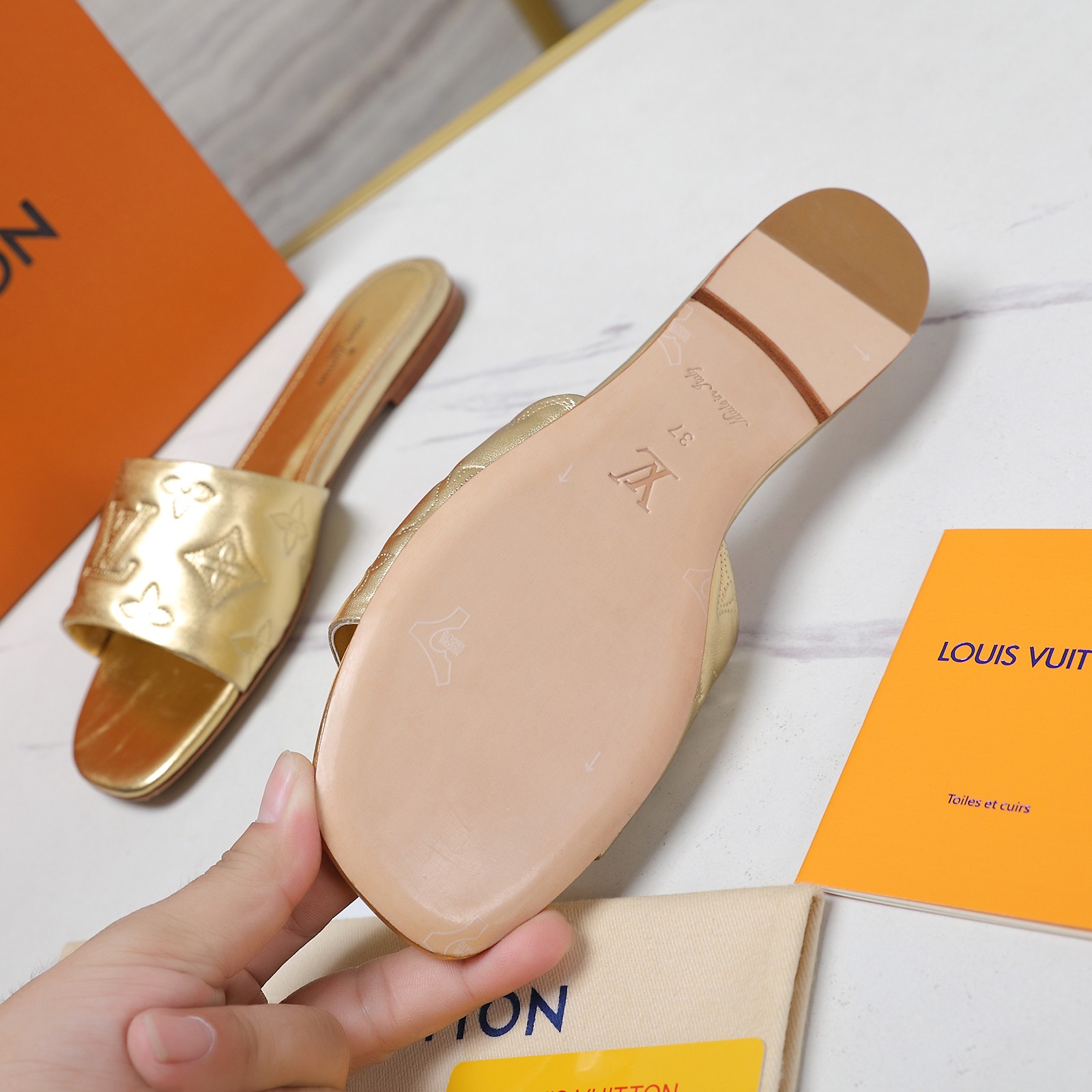 这款鞋子是AAAAA 1:1 质量 (非常棒). 使用了和原版一模一样的材料. 商标部分也保持了和路易威登/Louis Vuitton一样. 图片拍摄是实物鞋子拍摄, 您所收到的实物保证和我们图片一模一样.
