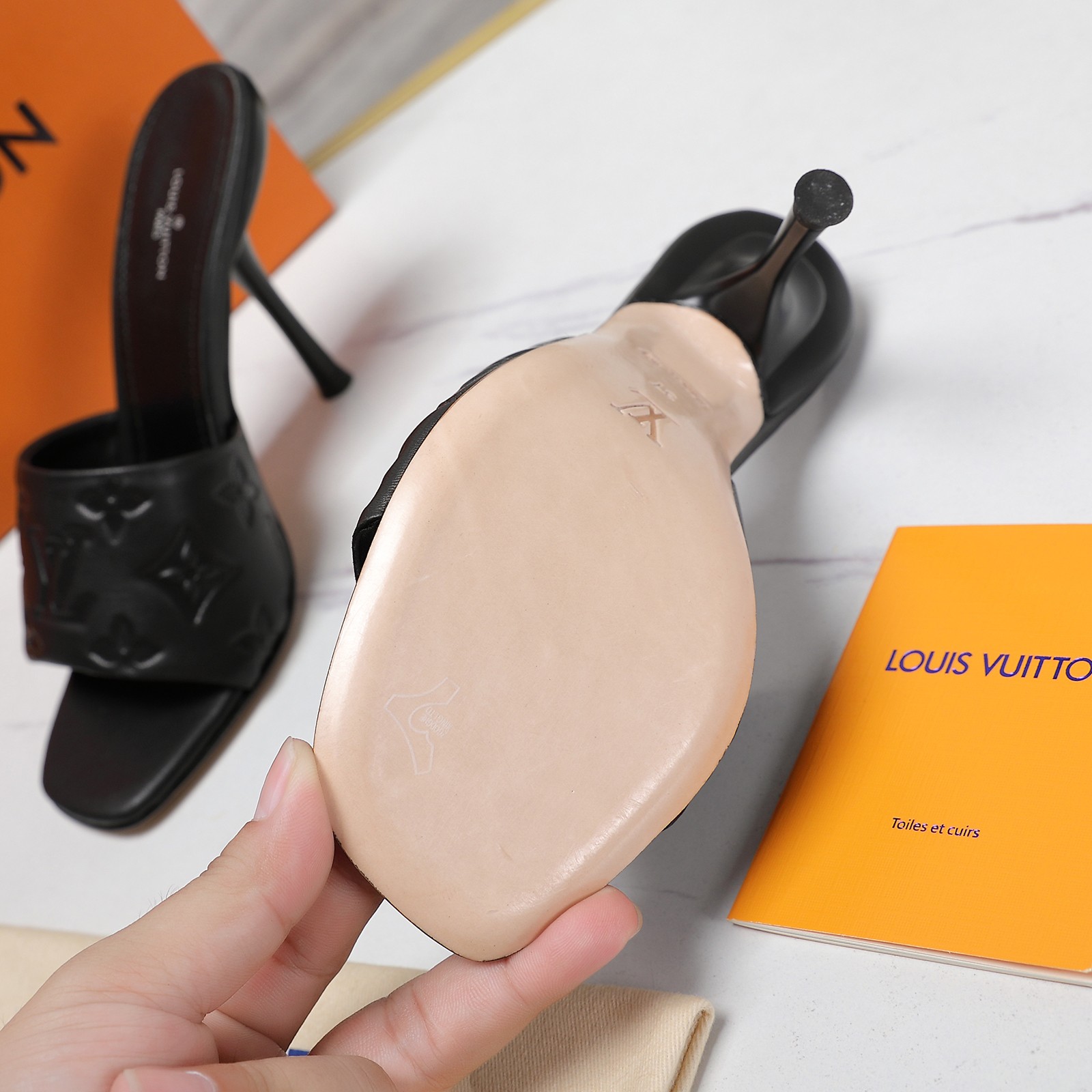 这款鞋子是AAAAA 1:1 质量 (非常棒). 使用了和原版一模一样的材料. 商标部分也保持了和路易威登/Louis Vuitton一样. 图片拍摄是实物鞋子拍摄, 您所收到的实物保证和我们图片一模一样.