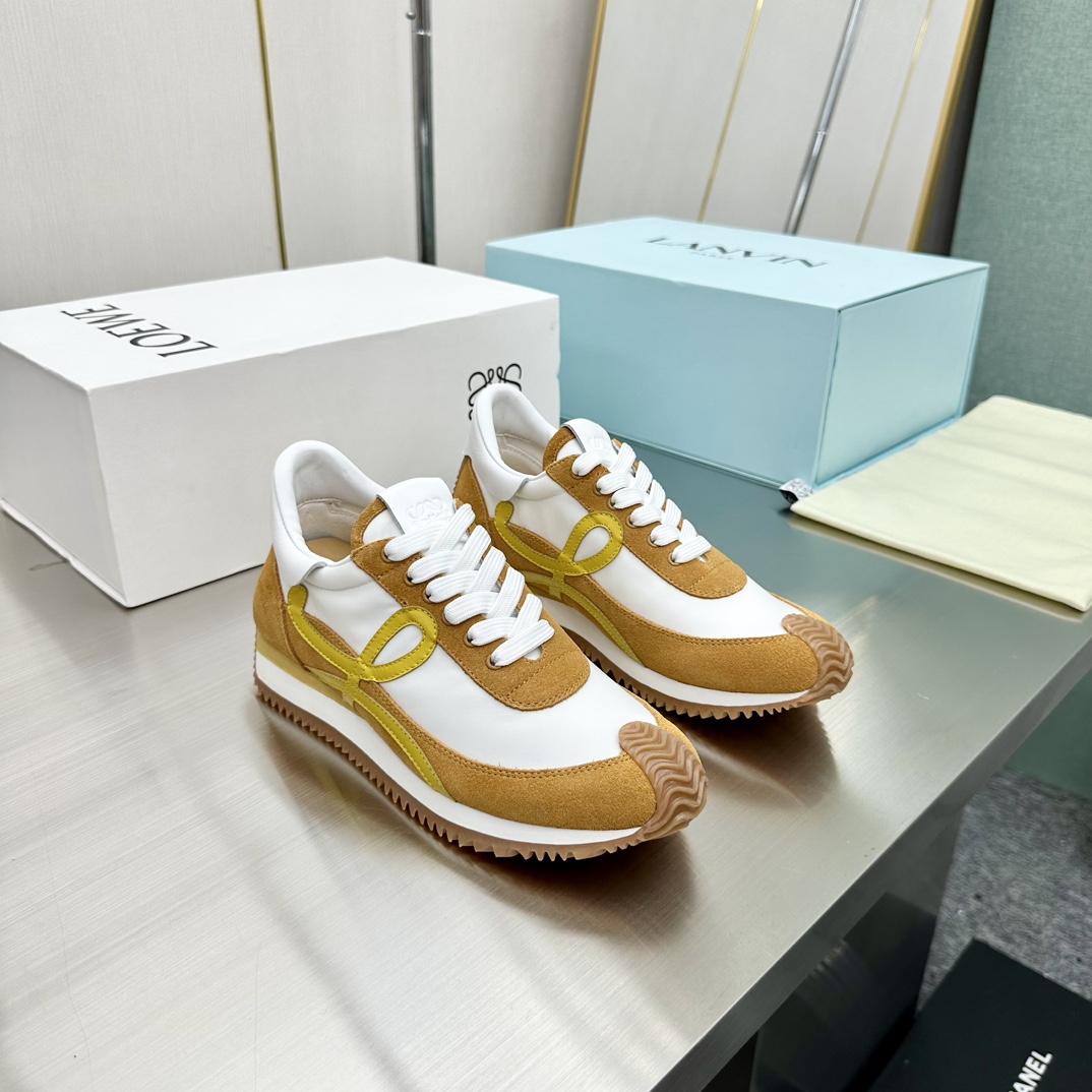 这款鞋子是AAAAA 1:1 质量 (非常棒). 使用了和原版一模一样的材料. 商标部分也保持了和罗意威/Loewe一样. 图片拍摄是实物鞋子拍摄, 您所收到的实物保证和我们图片一模一样.
