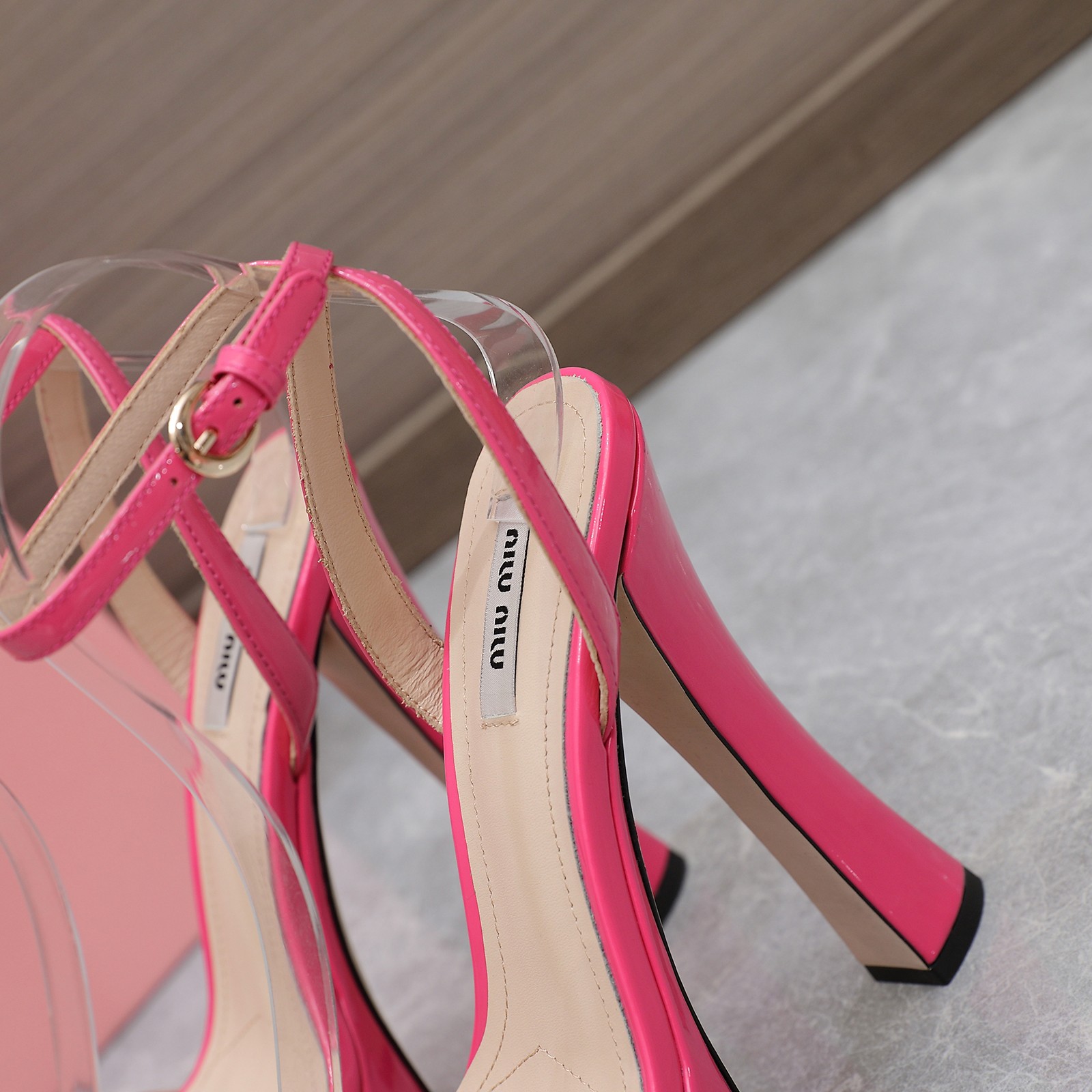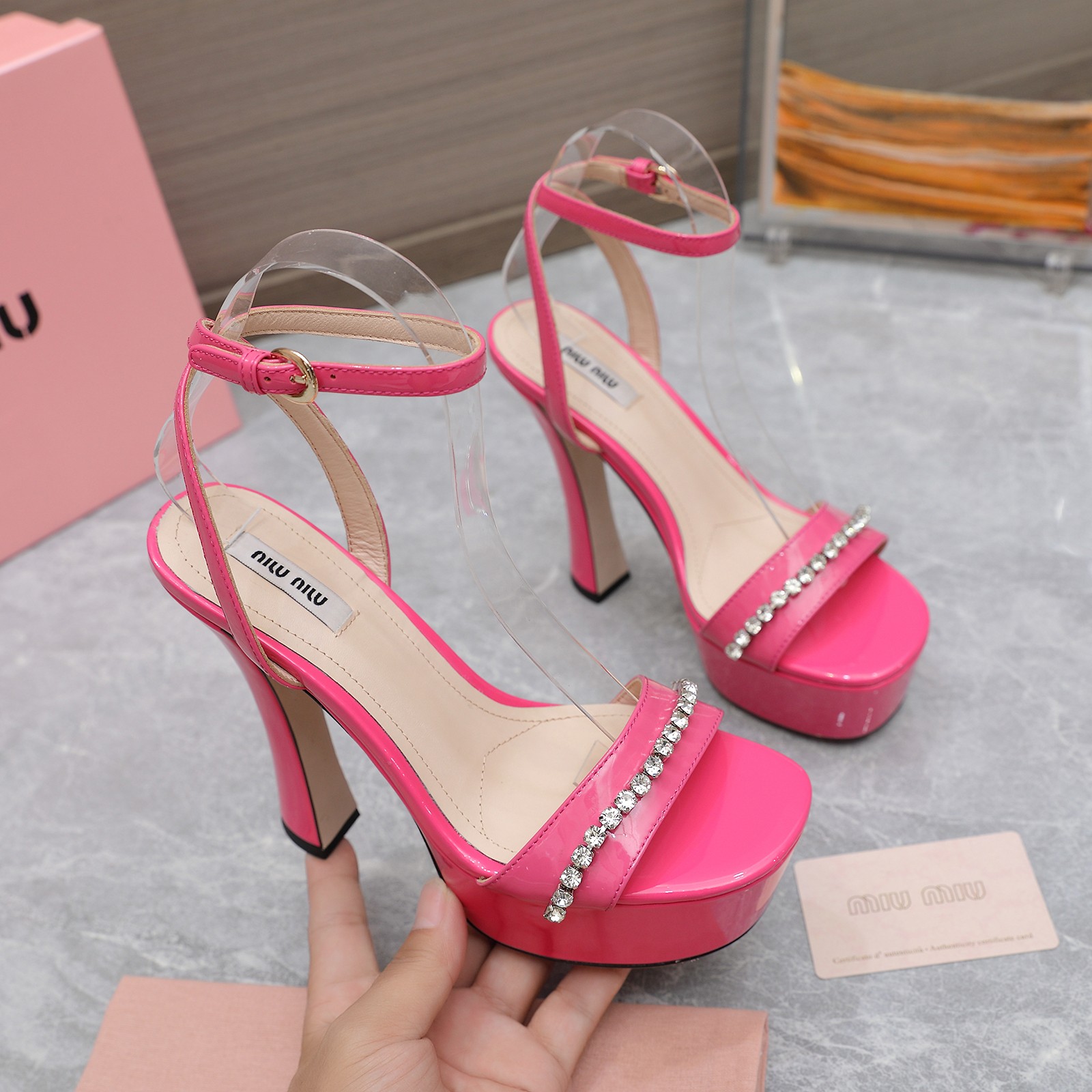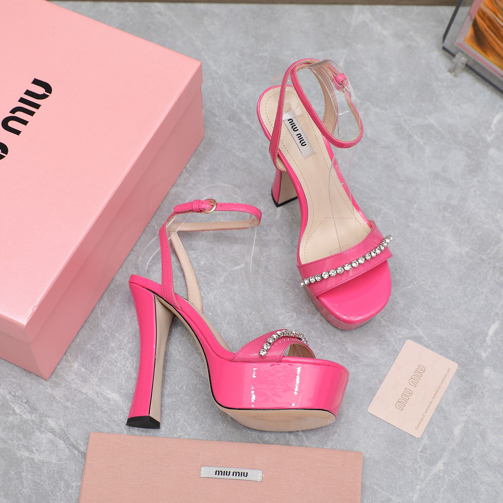 这款鞋子是AAAAA 1:1 质量 (非常棒). 使用了和原版一模一样的材料. 商标部分也保持了和缪缪/Miu Miu一样. 图片拍摄是实物鞋子拍摄, 您所收到的实物保证和我们图片一模一样.