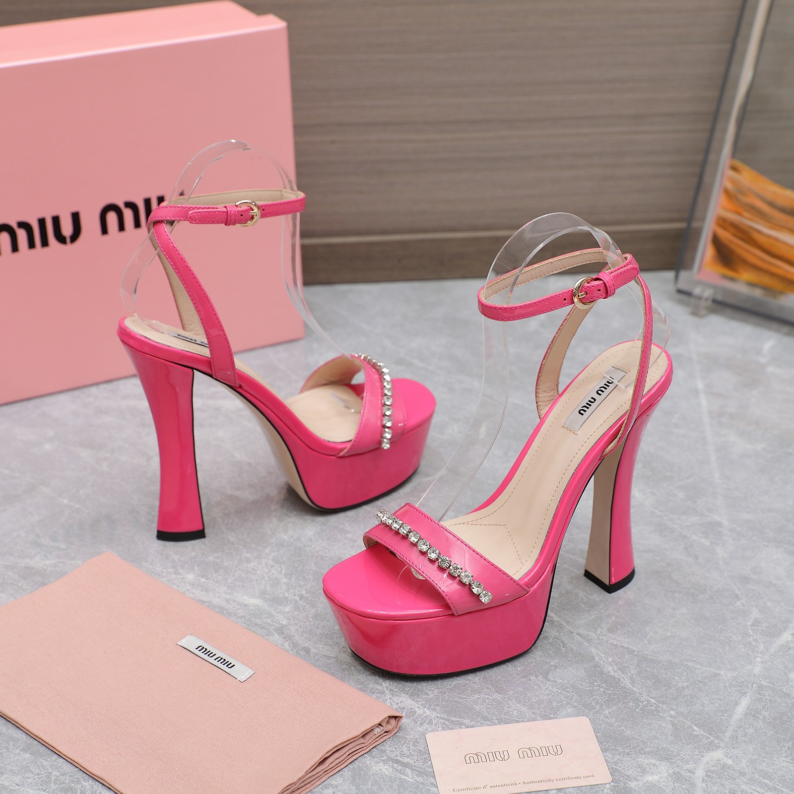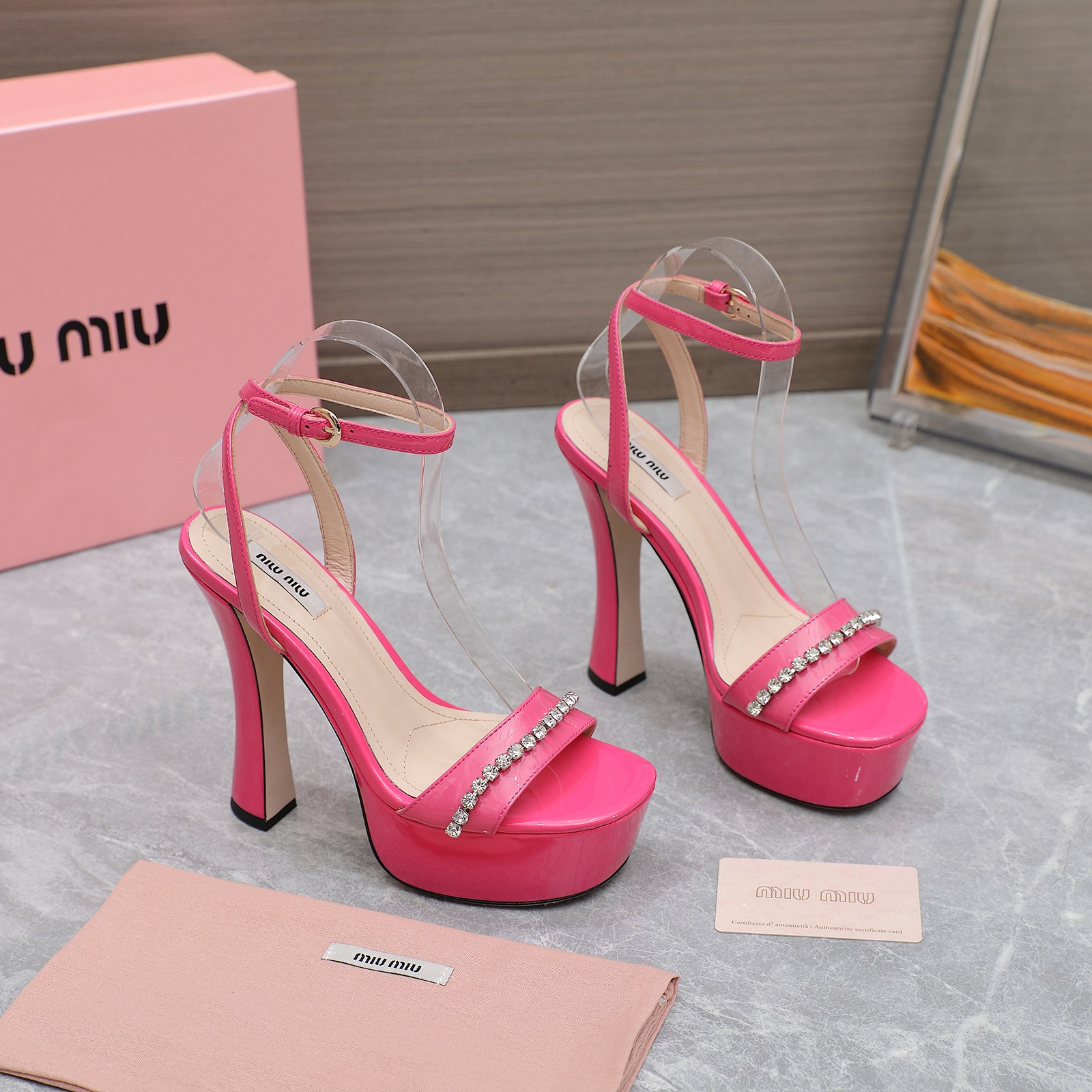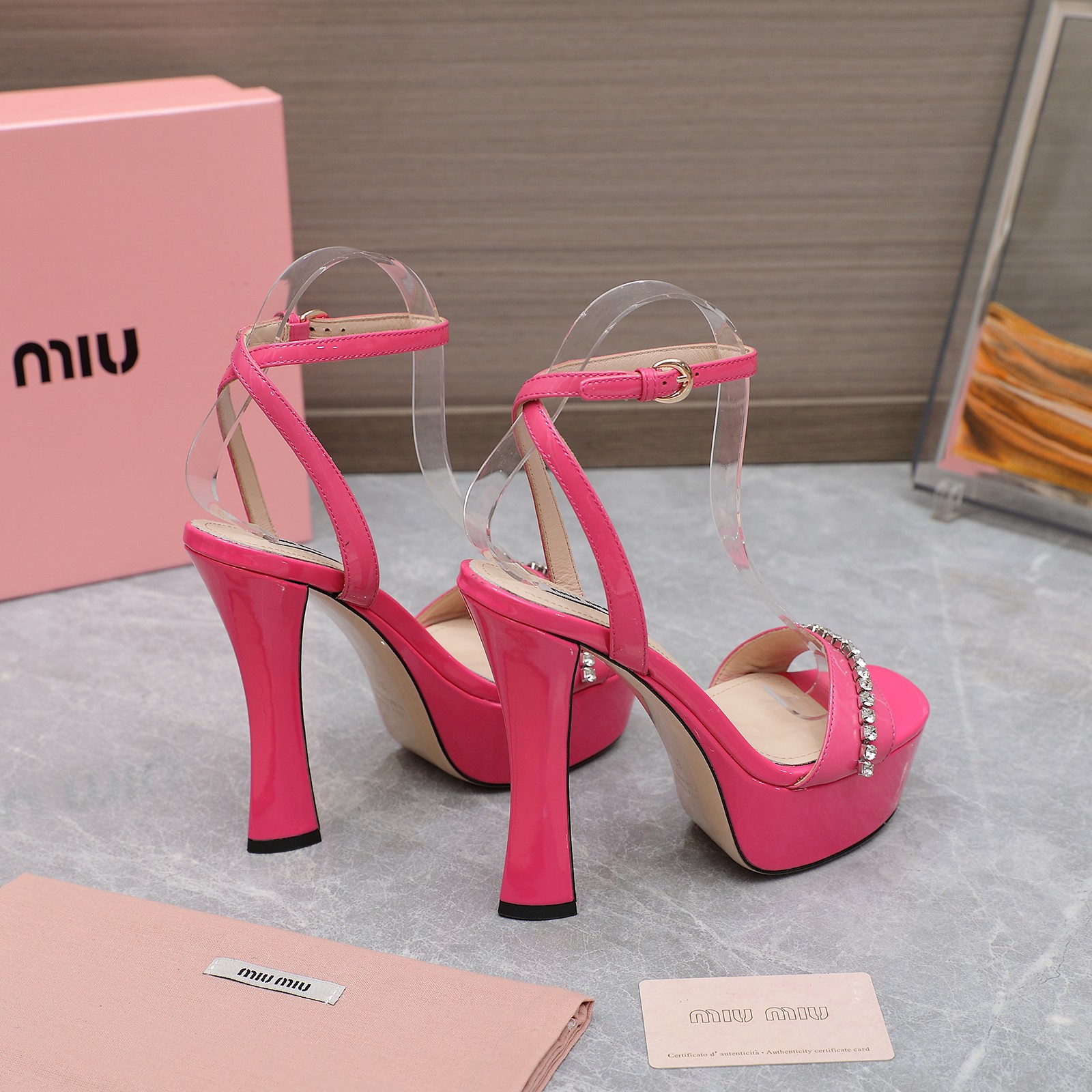 这款鞋子是AAAAA 1:1 质量 (非常棒). 使用了和原版一模一样的材料. 商标部分也保持了和缪缪/Miu Miu一样. 图片拍摄是实物鞋子拍摄, 您所收到的实物保证和我们图片一模一样.