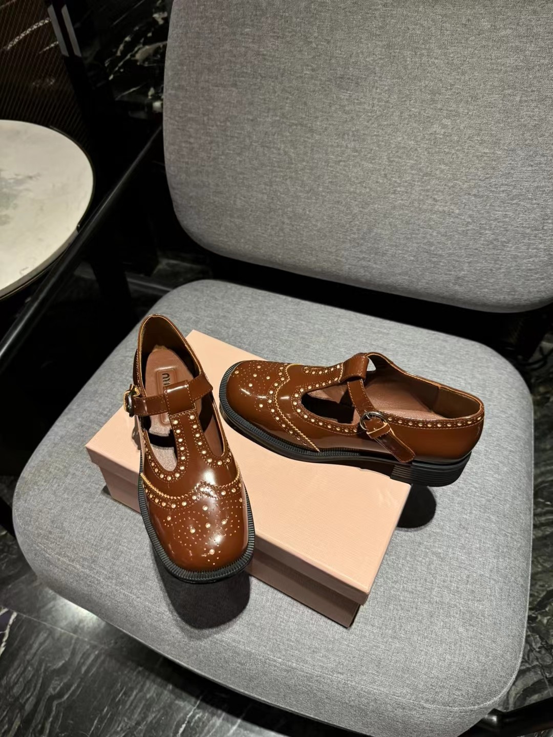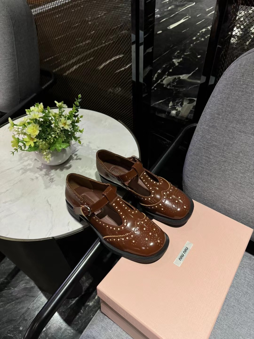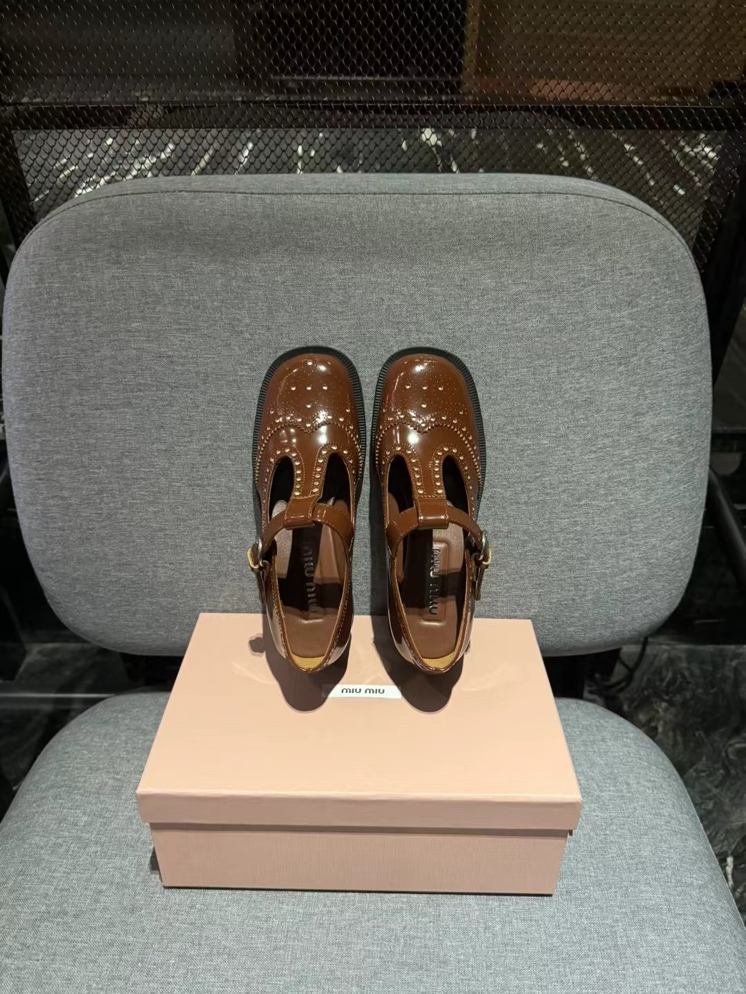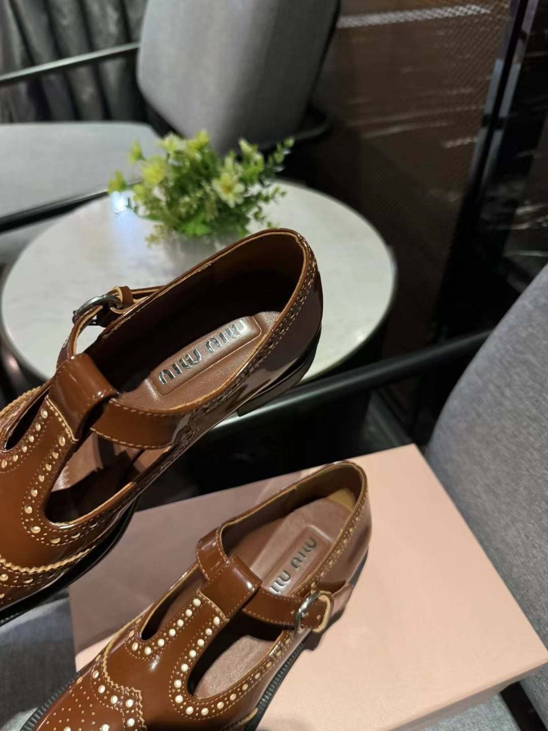 这款鞋子是AAAAA 1:1 质量 (非常棒). 使用了和原版一模一样的材料. 商标部分也保持了和缪缪/Miu Miu一样. 图片拍摄是实物鞋子拍摄, 您所收到的实物保证和我们图片一模一样.