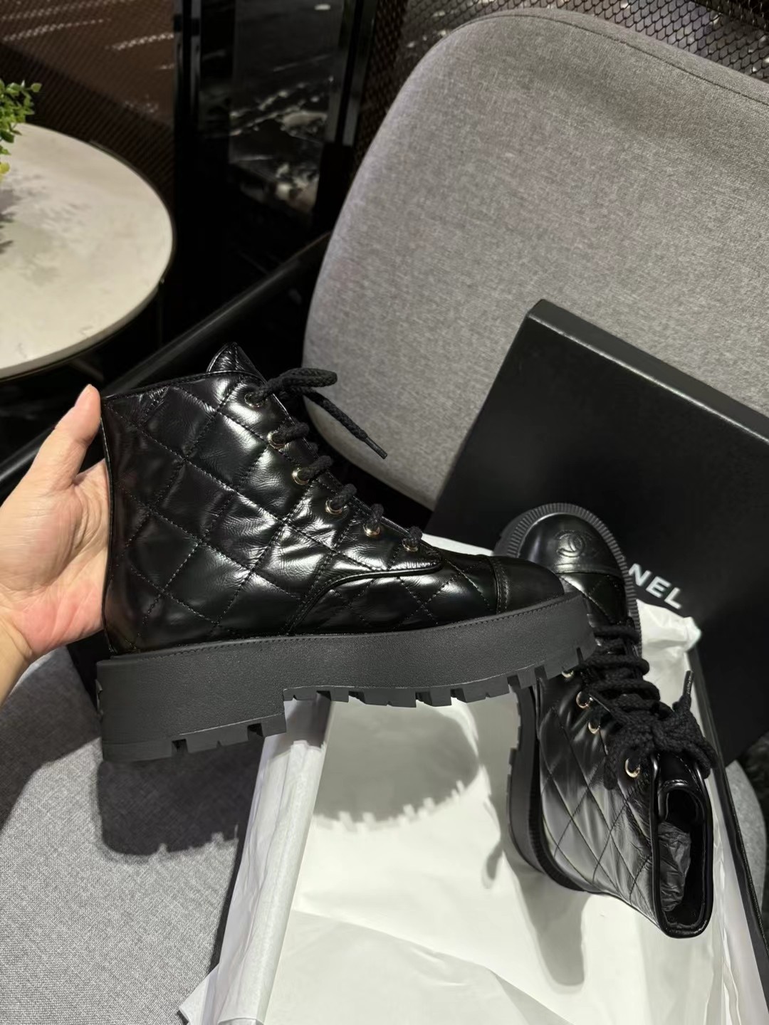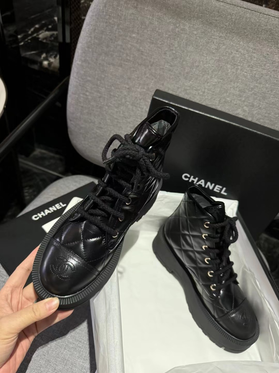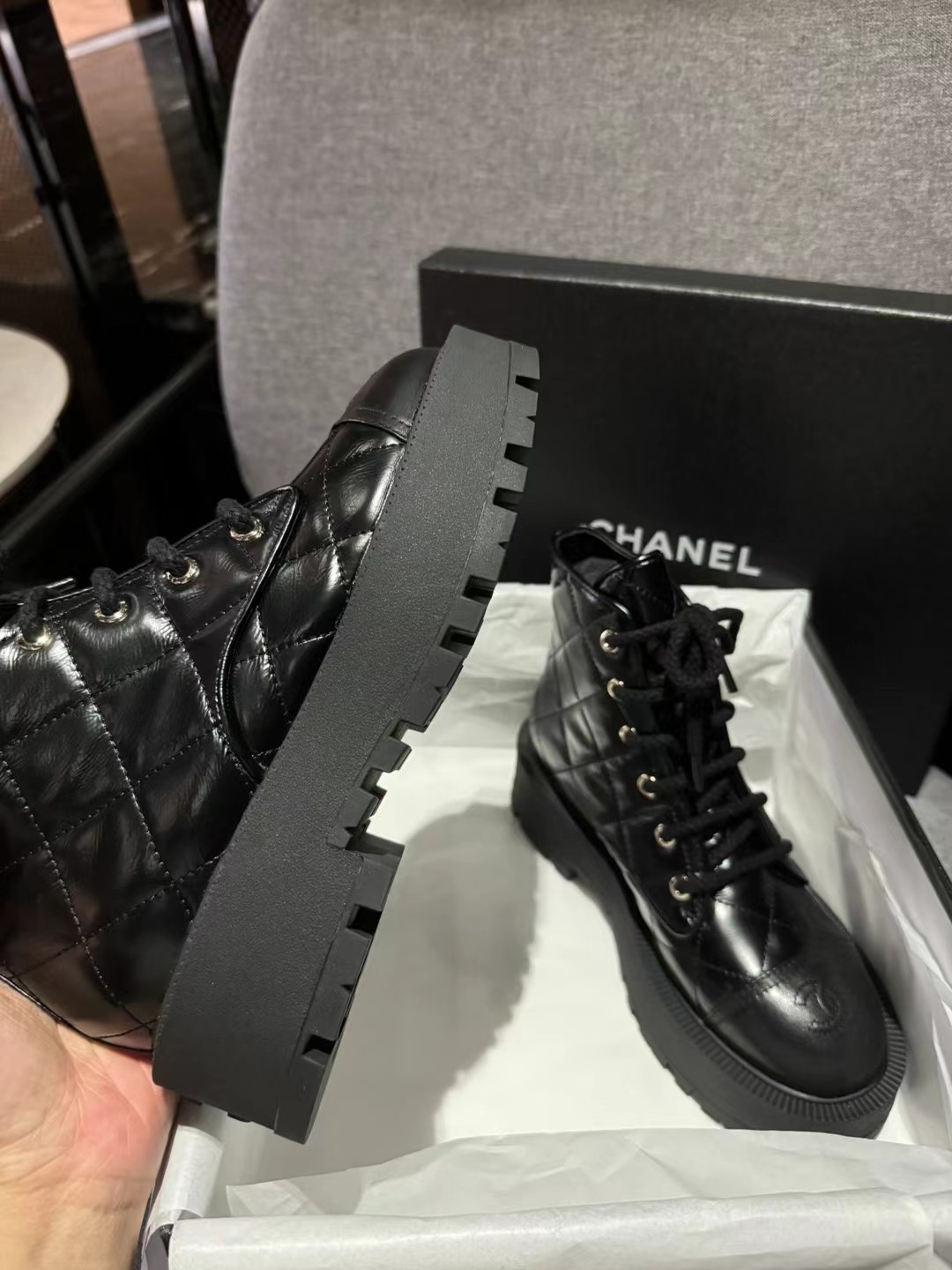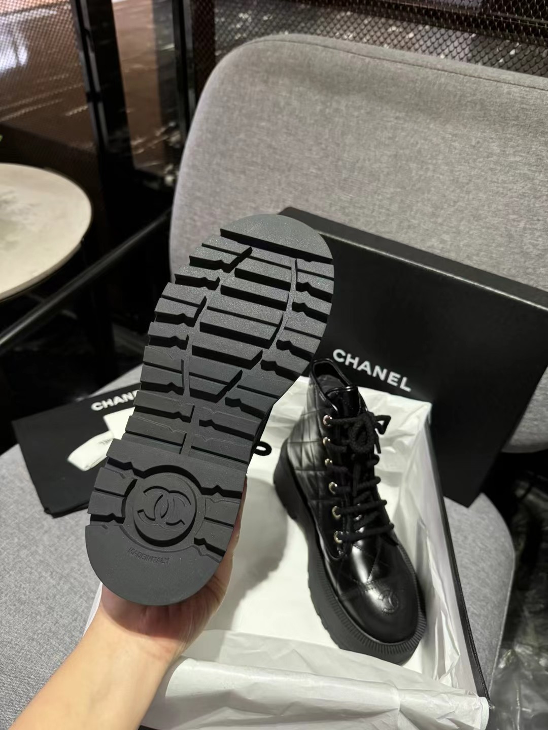 这款鞋子是AAAAA 1:1 质量 (非常棒). 使用了和原版一模一样的材料. 商标部分也保持了和香奈儿/Chanel一样. 图片拍摄是实物鞋子拍摄, 您所收到的实物保证和我们图片一模一样.