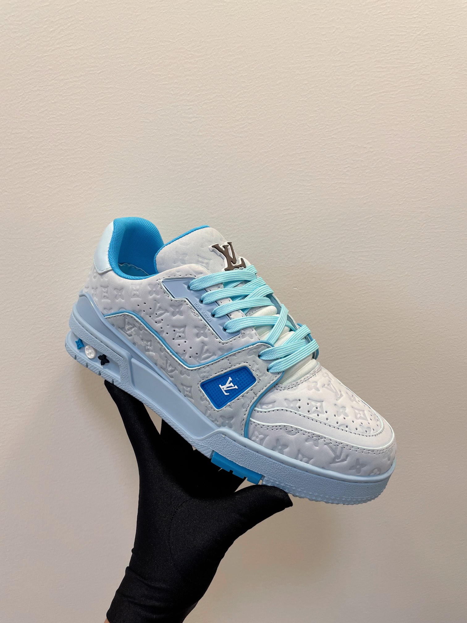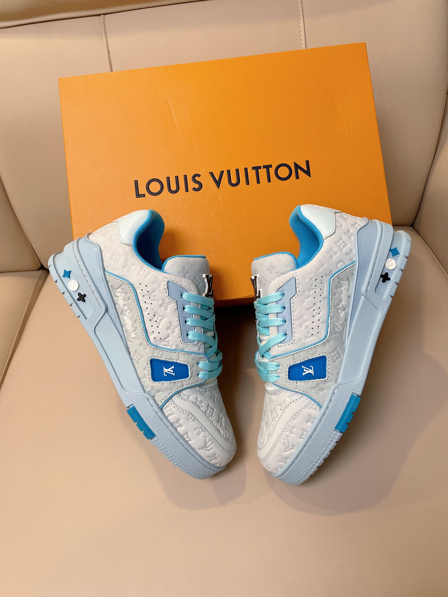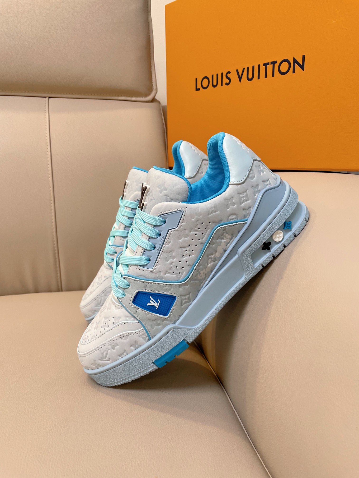 这款鞋子是AAAAA 1:1 质量 (非常棒). 使用了和原版一模一样的材料. 商标部分也保持了和路易威登/Louis Vuitton一样. 图片拍摄是实物鞋子拍摄, 您所收到的实物保证和我们图片一模一样.