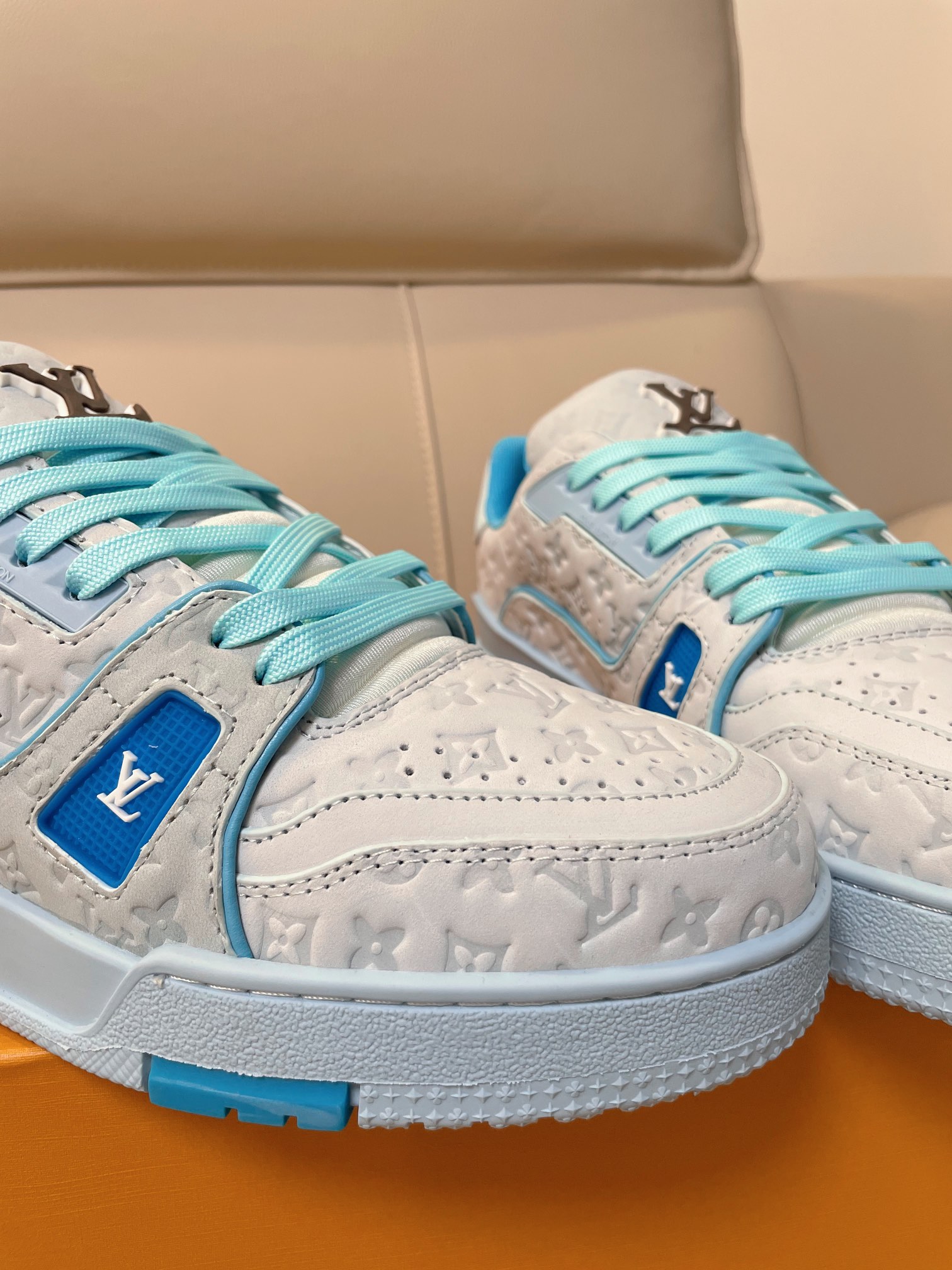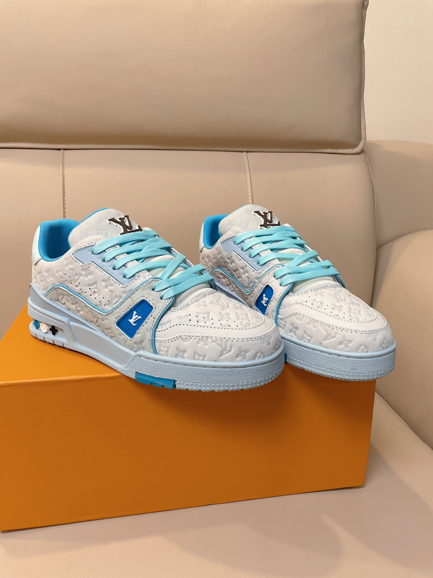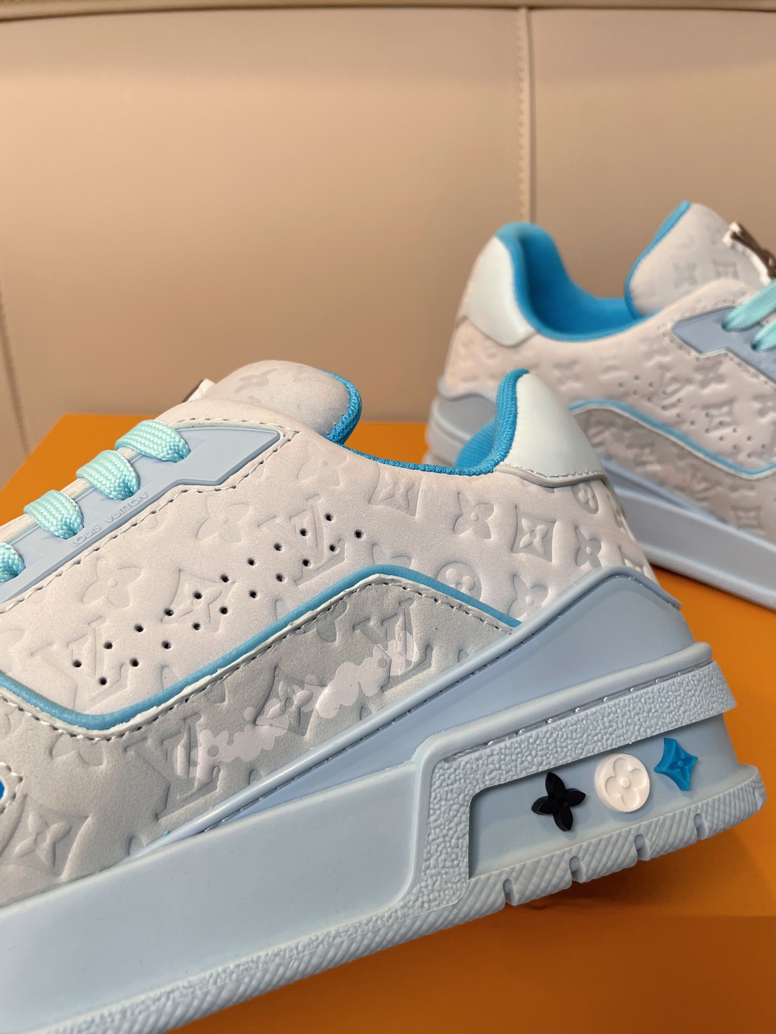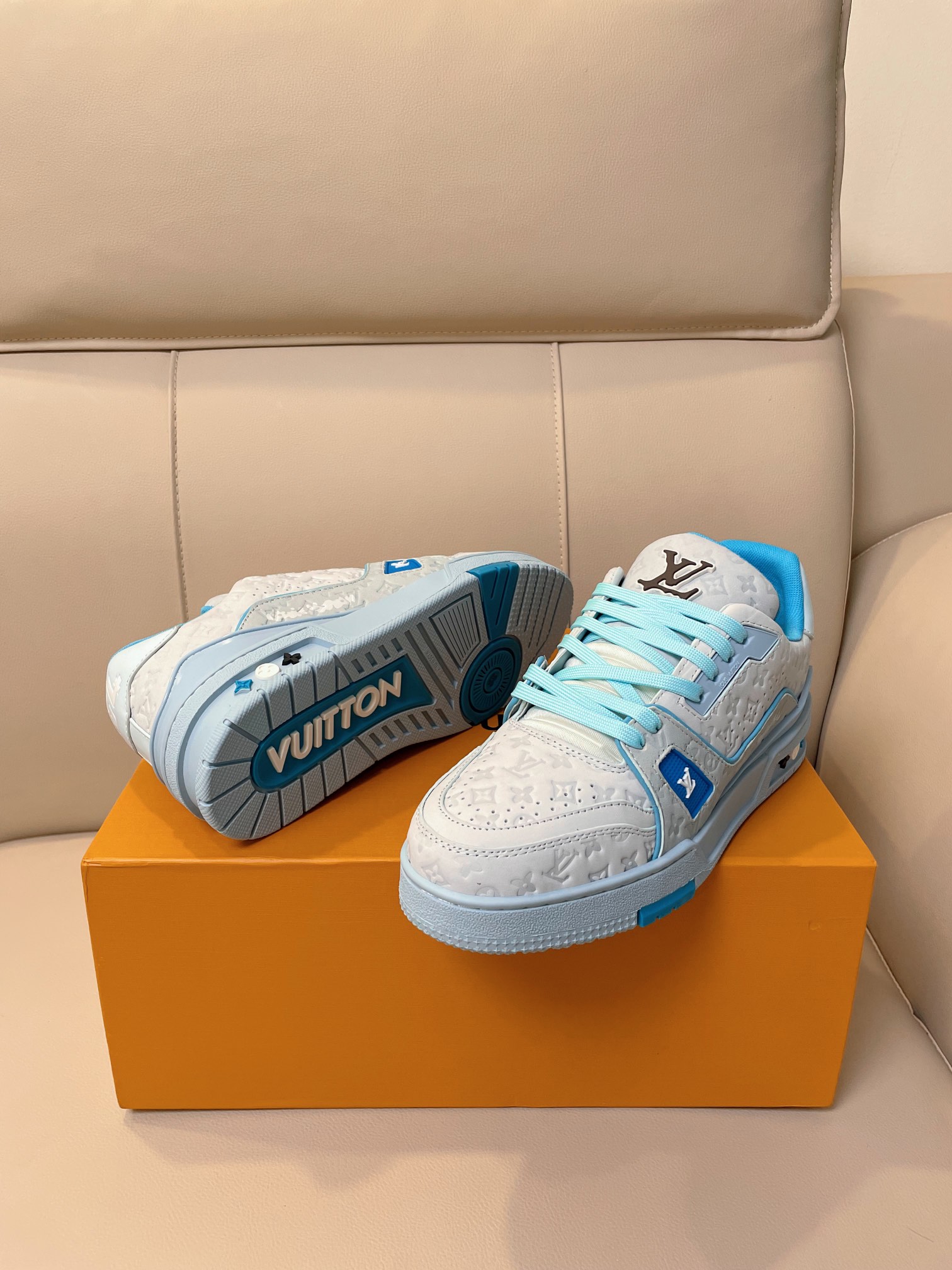 这款鞋子是AAAAA 1:1 质量 (非常棒). 使用了和原版一模一样的材料. 商标部分也保持了和路易威登/Louis Vuitton一样. 图片拍摄是实物鞋子拍摄, 您所收到的实物保证和我们图片一模一样.