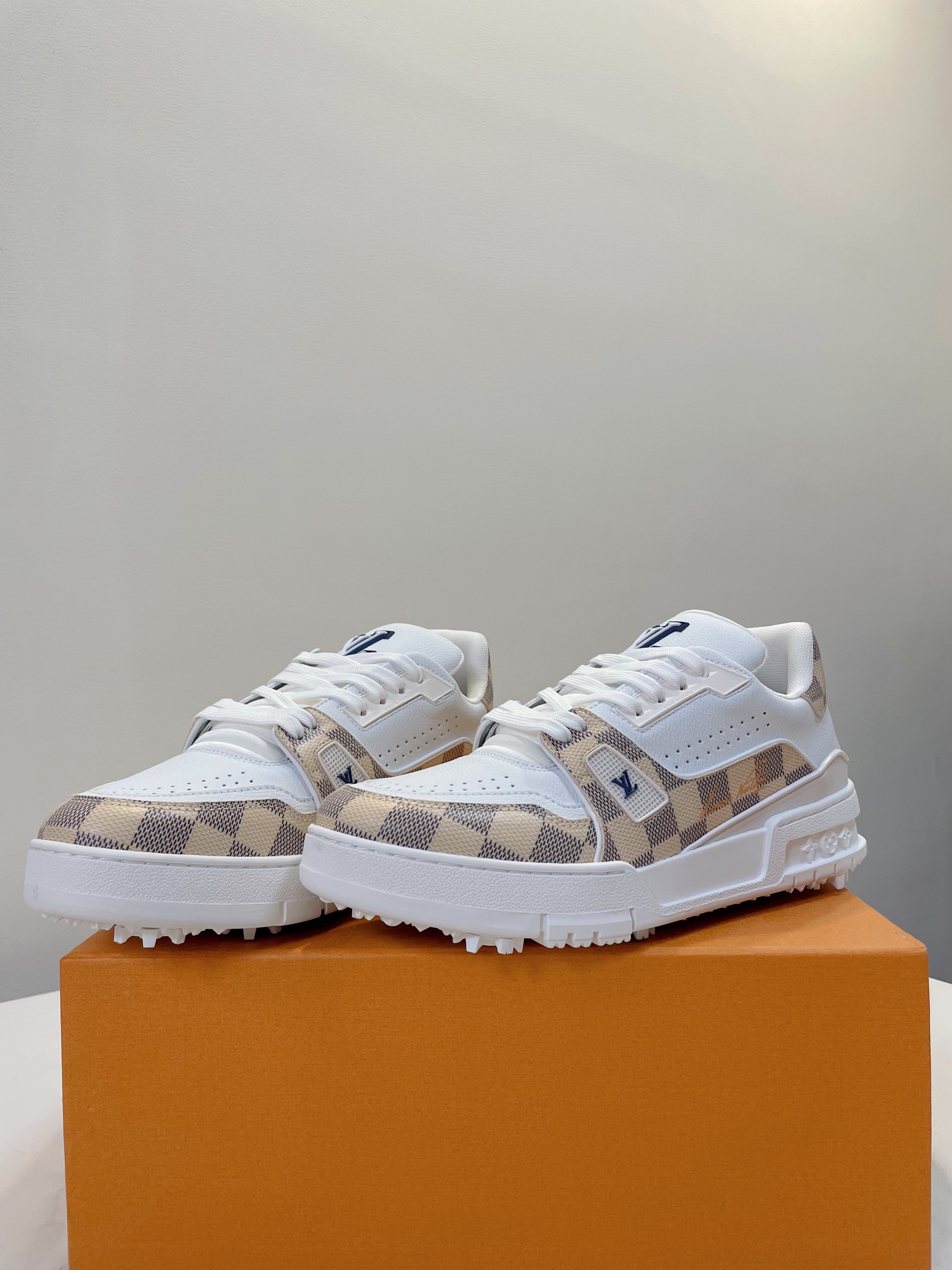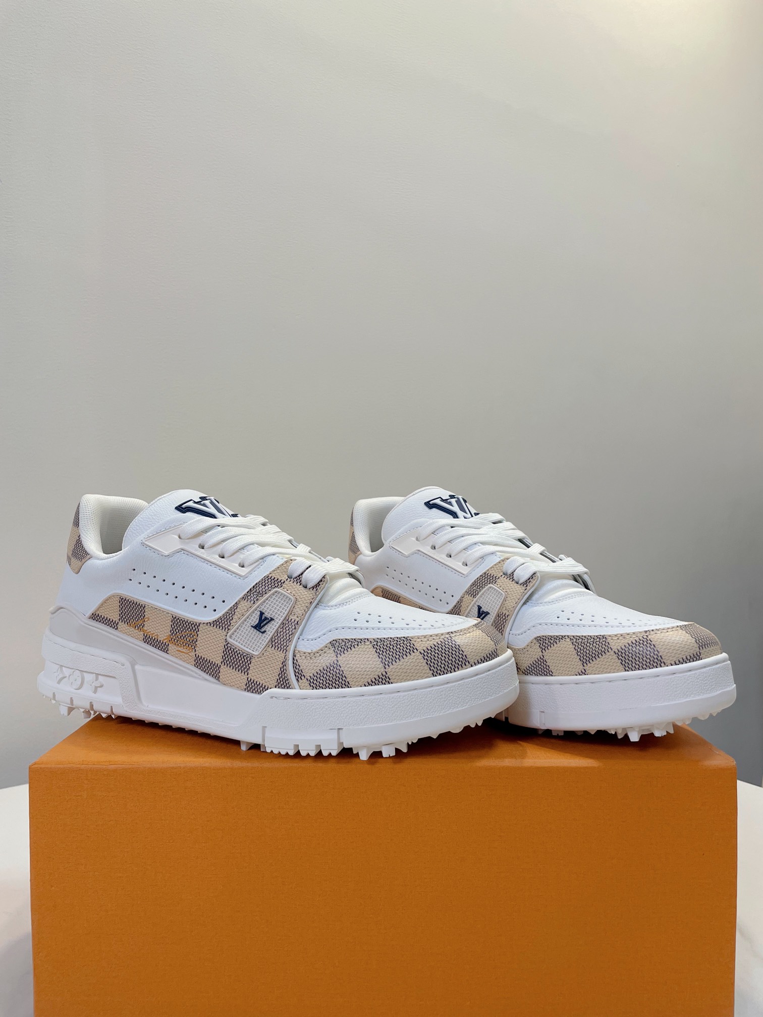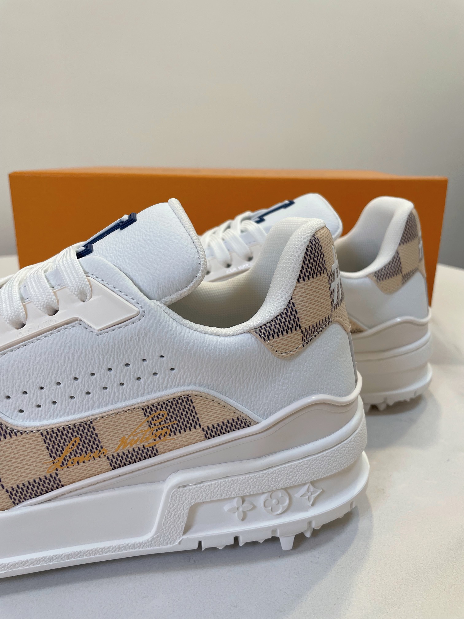 这款鞋子是AAAAA 1:1 质量 (非常棒). 使用了和原版一模一样的材料. 商标部分也保持了和路易威登/Louis Vuitton一样. 图片拍摄是实物鞋子拍摄, 您所收到的实物保证和我们图片一模一样.