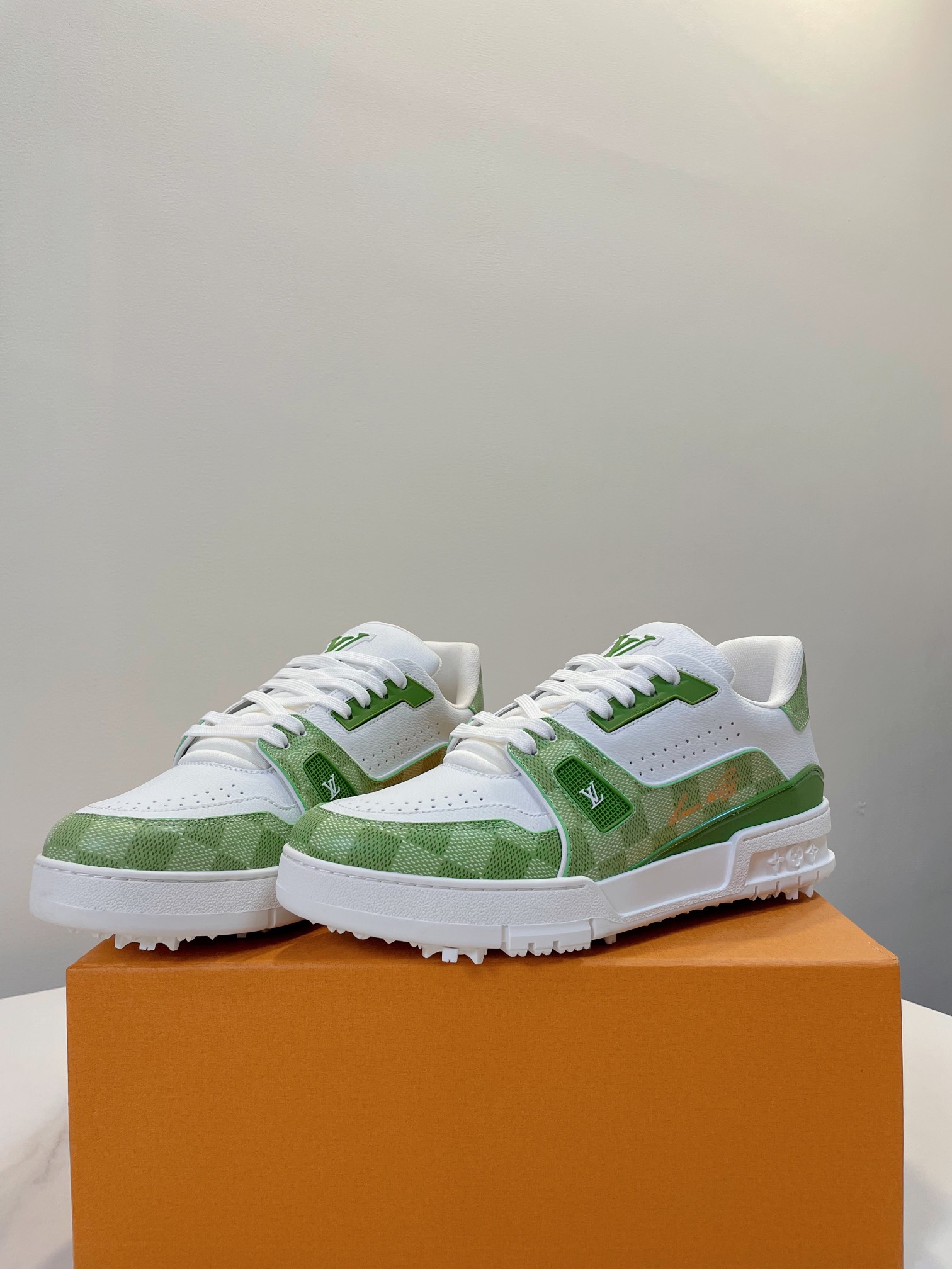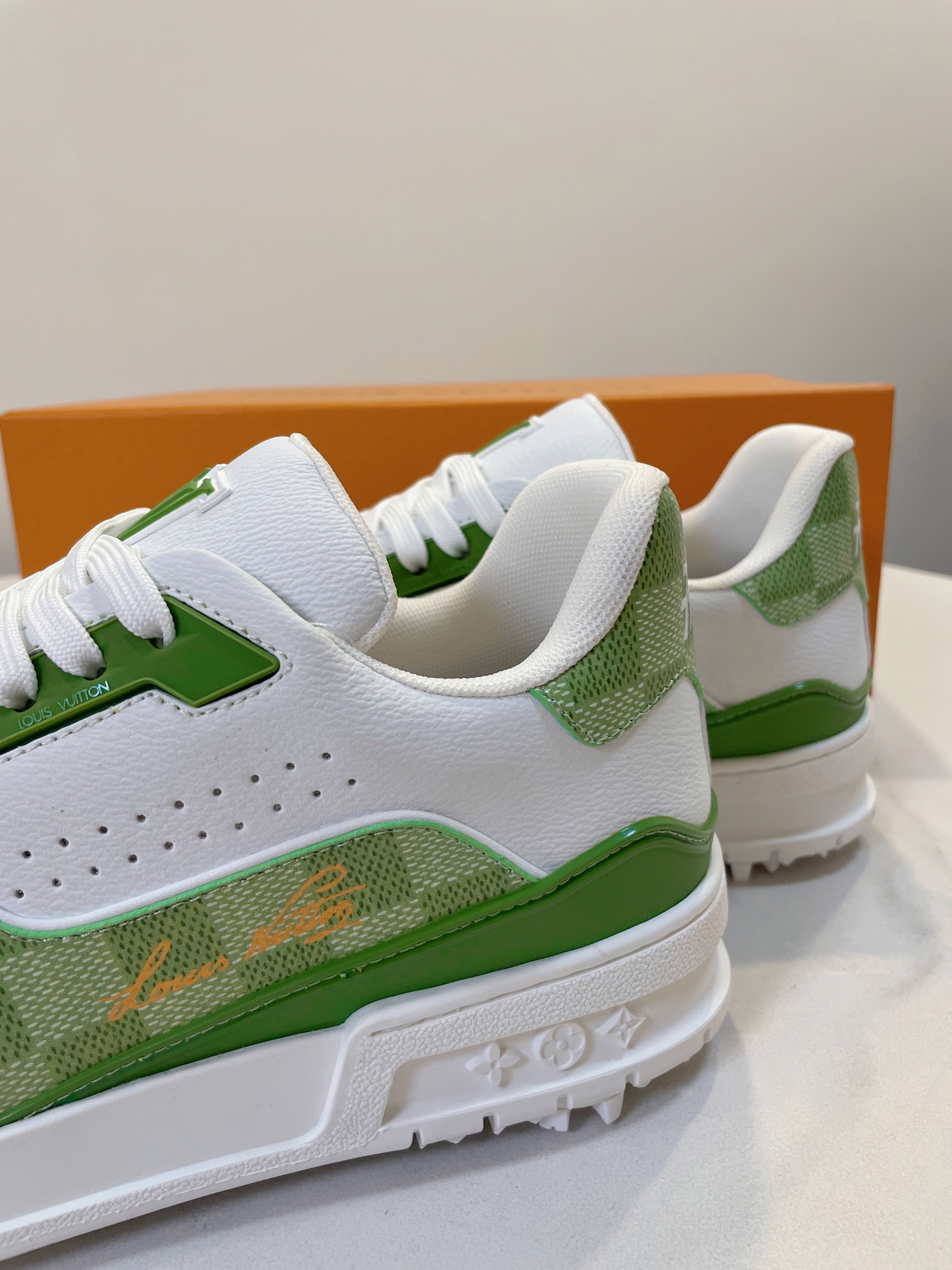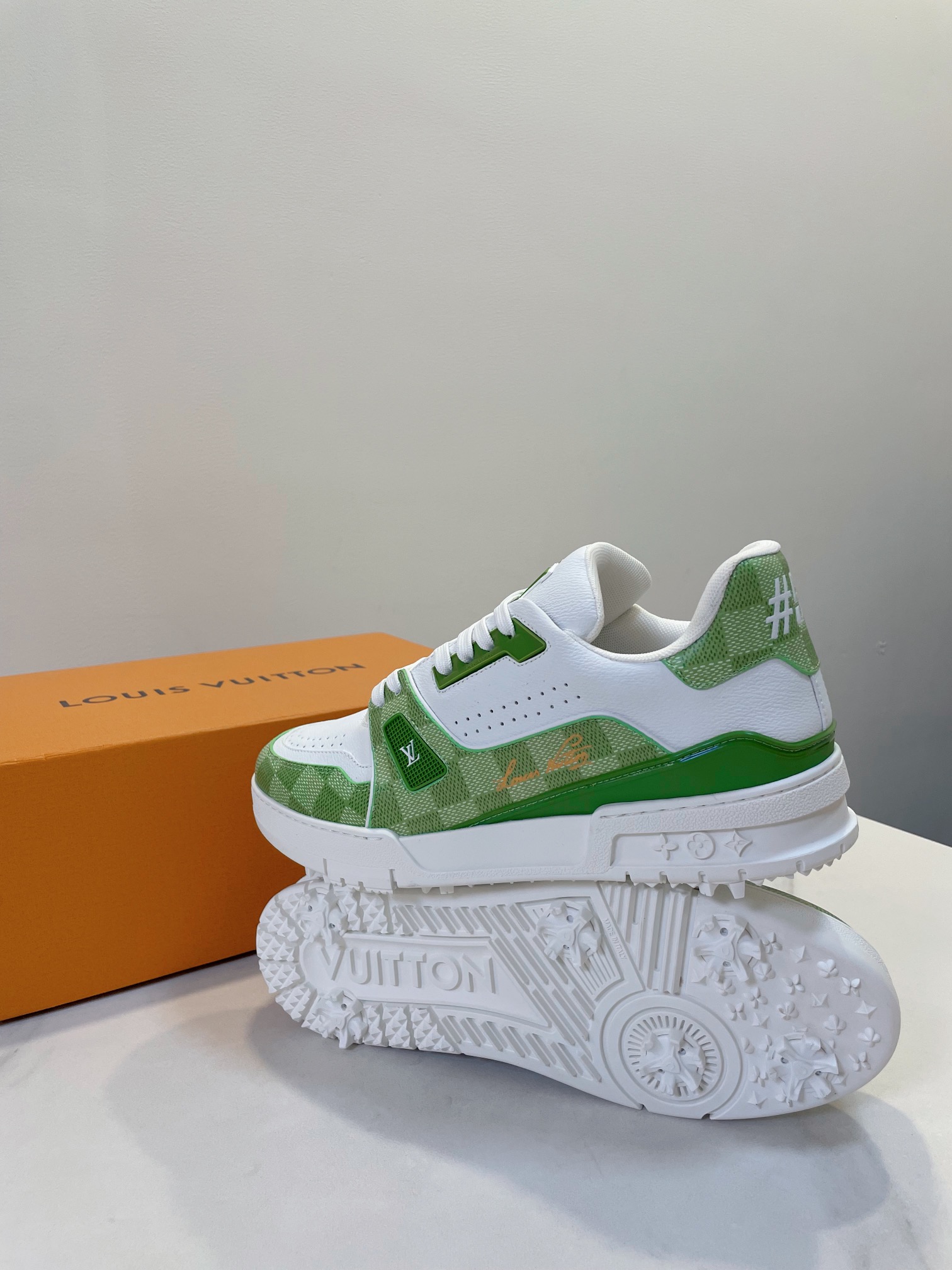 这款鞋子是AAAAA 1:1 质量 (非常棒). 使用了和原版一模一样的材料. 商标部分也保持了和路易威登/Louis Vuitton一样. 图片拍摄是实物鞋子拍摄, 您所收到的实物保证和我们图片一模一样.