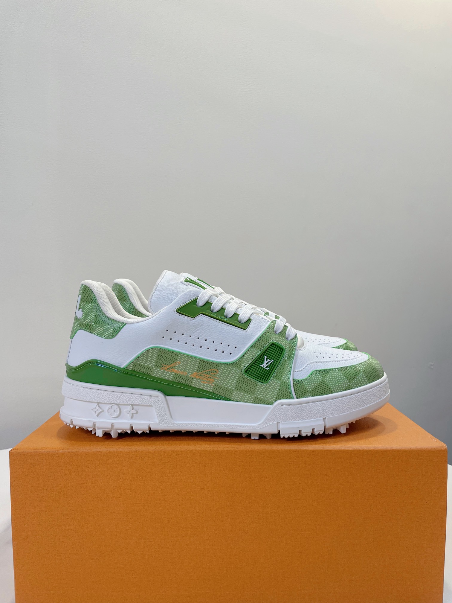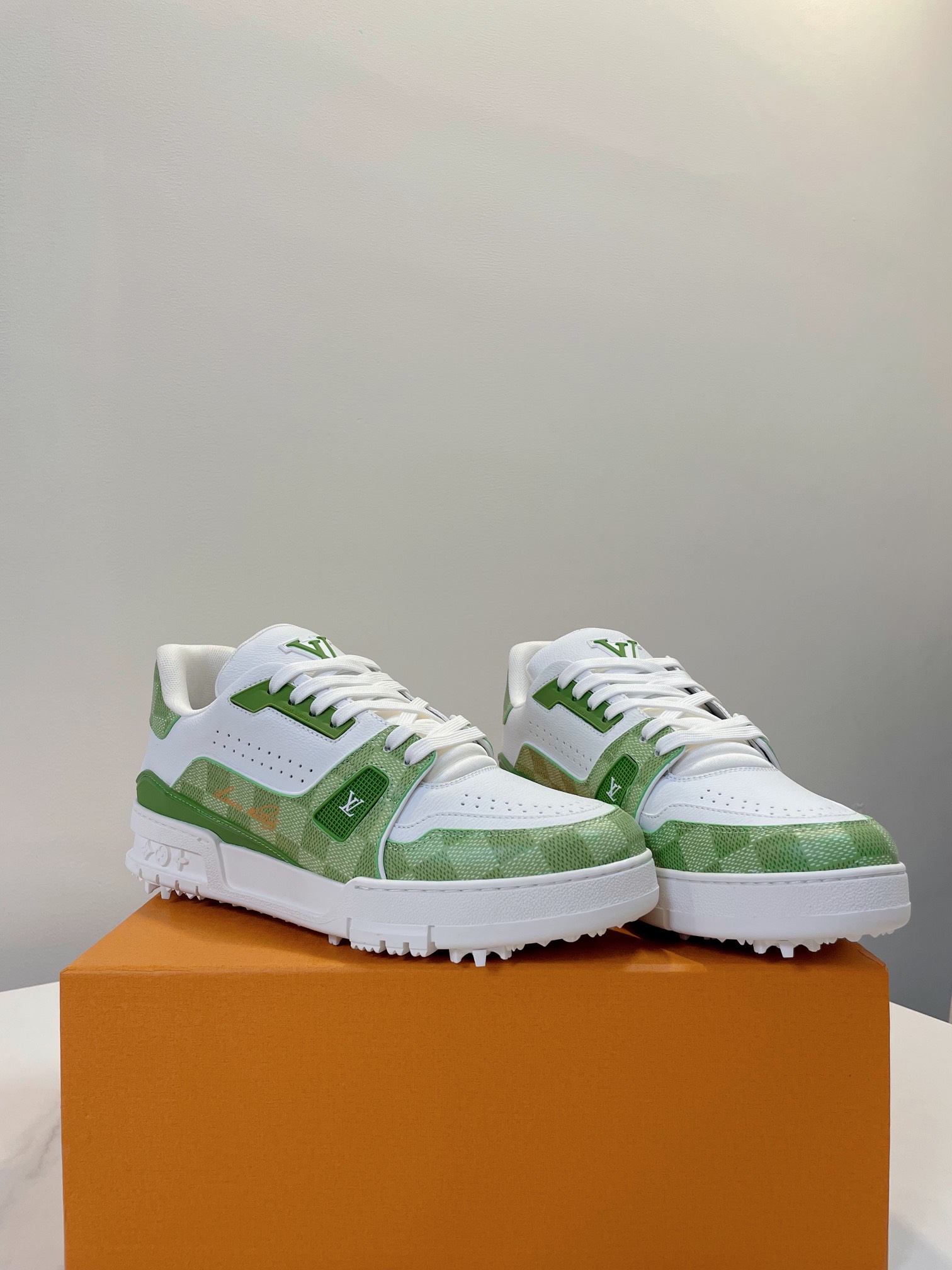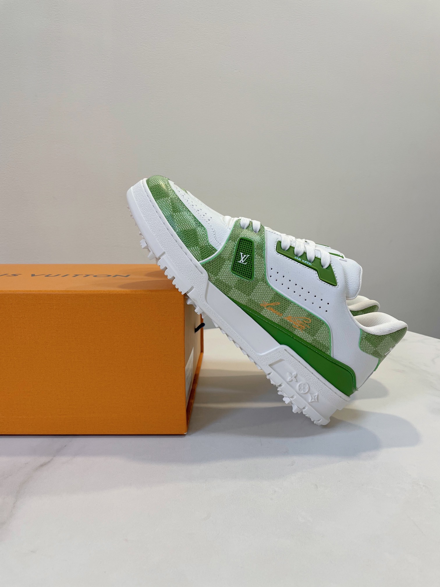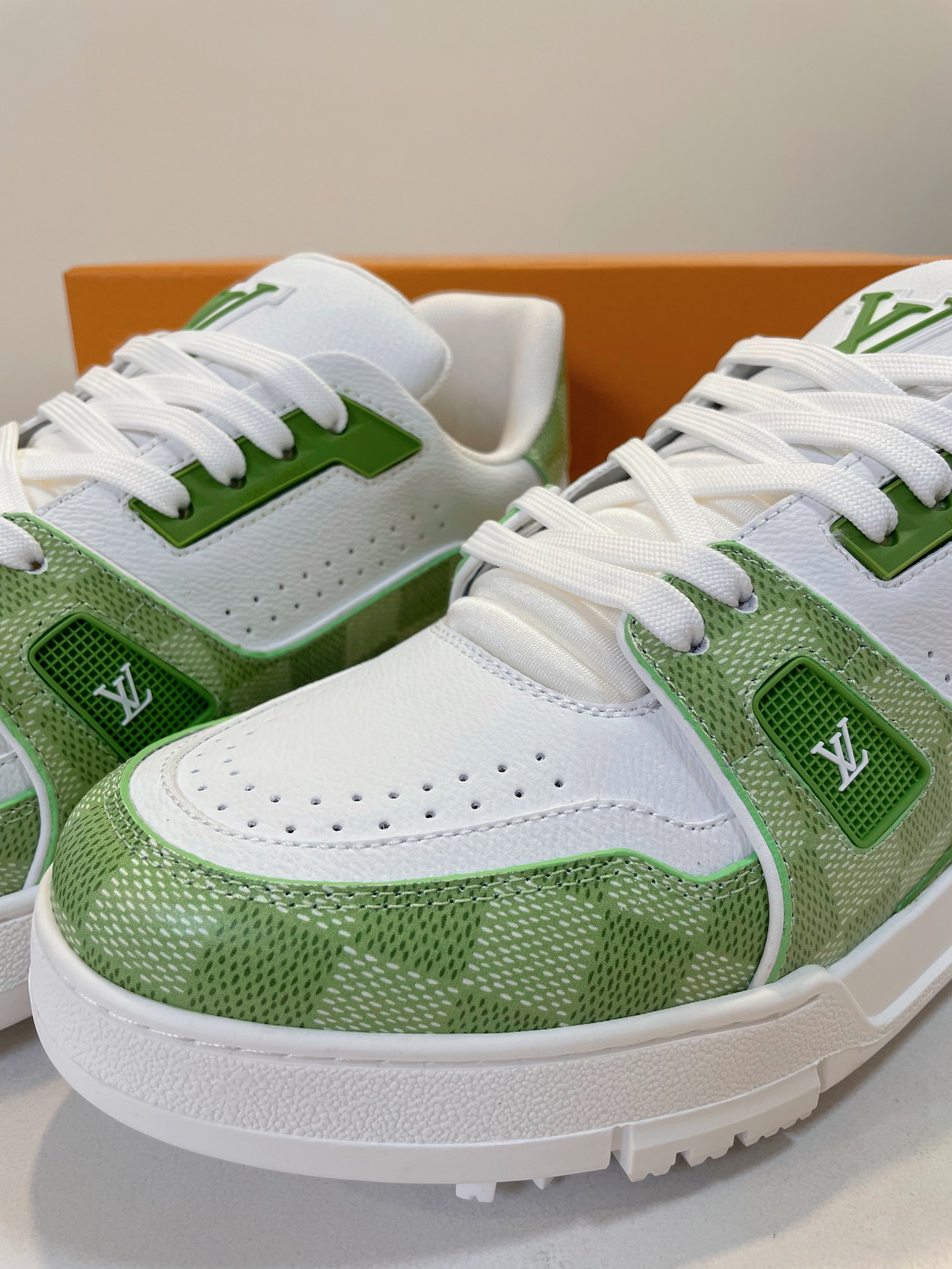 这款鞋子是AAAAA 1:1 质量 (非常棒). 使用了和原版一模一样的材料. 商标部分也保持了和路易威登/Louis Vuitton一样. 图片拍摄是实物鞋子拍摄, 您所收到的实物保证和我们图片一模一样.