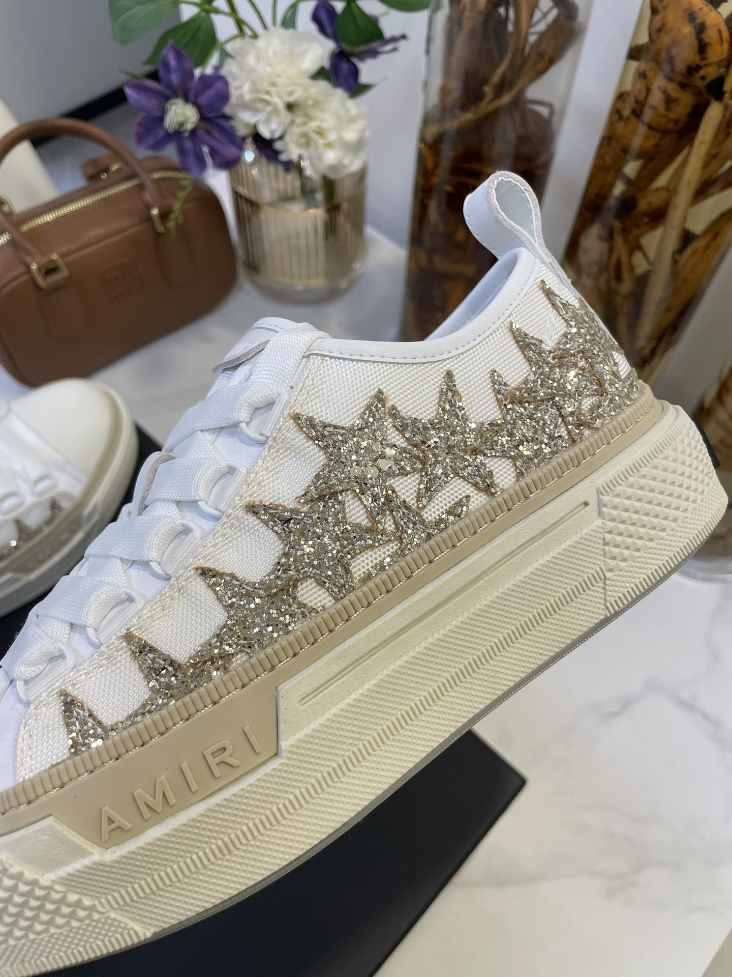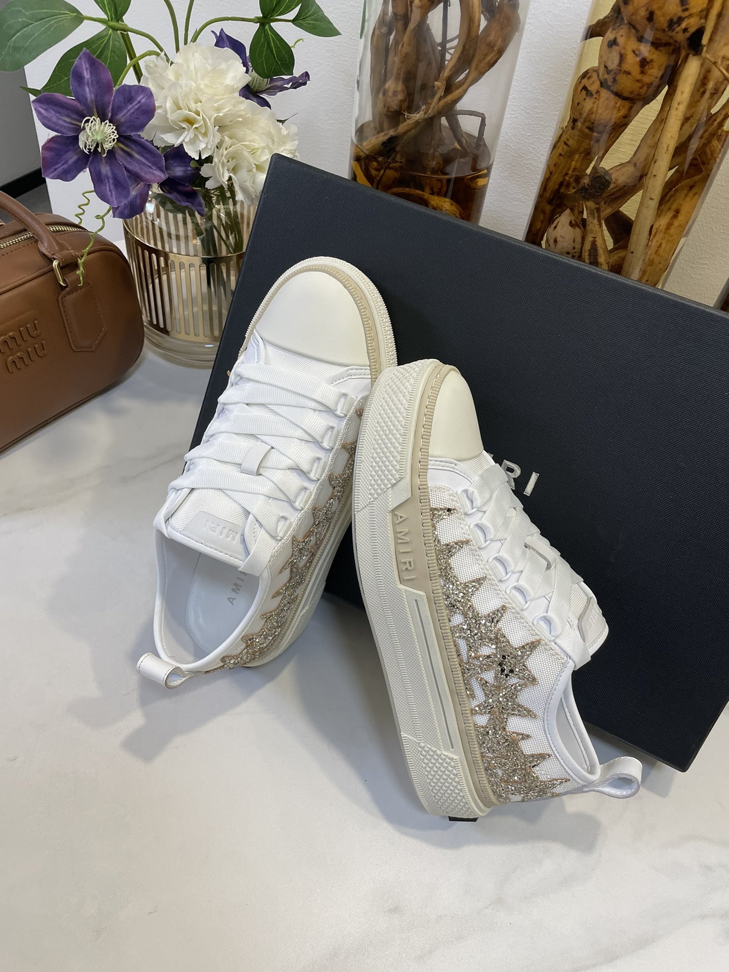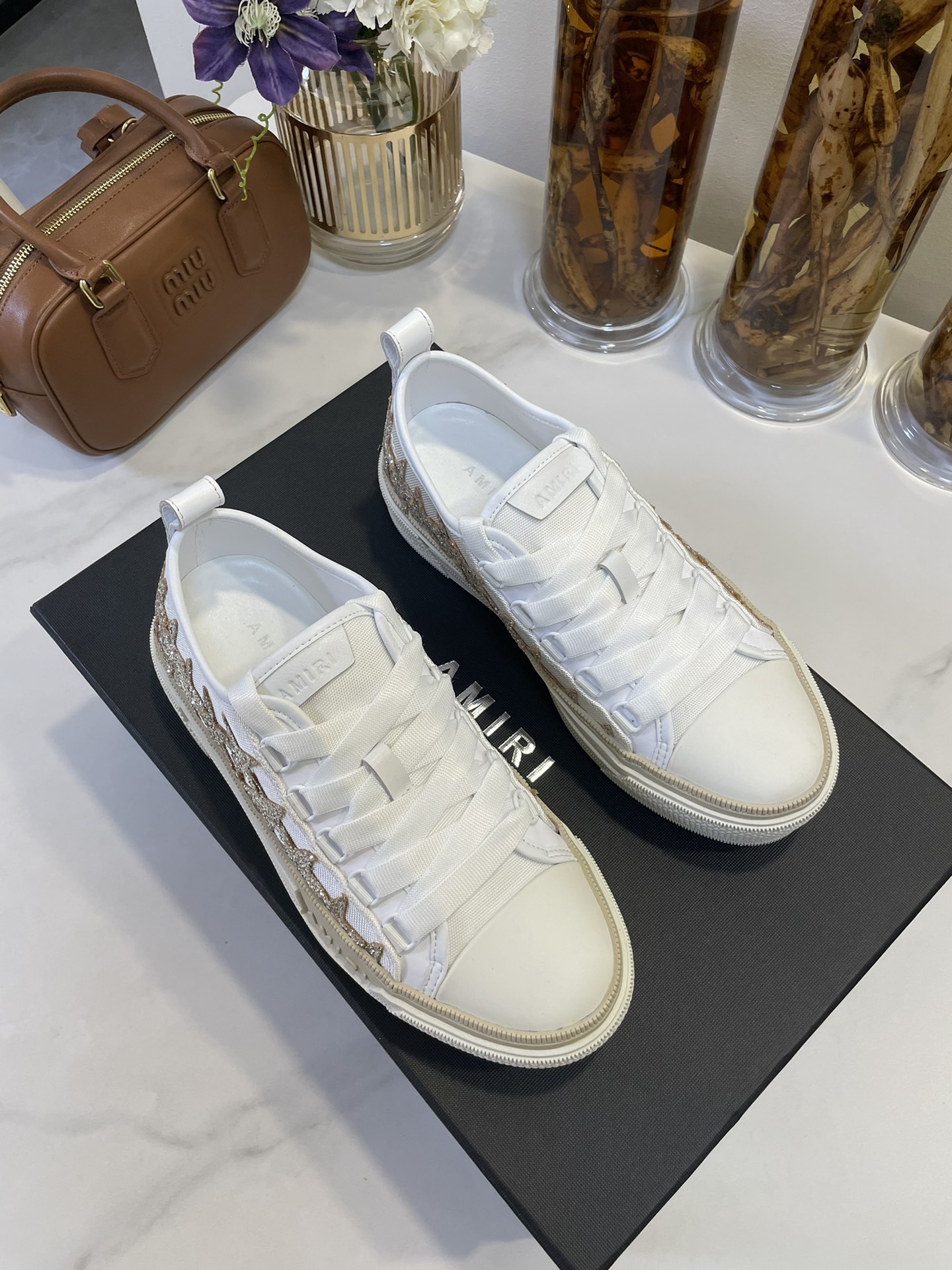 这款鞋子是AAAAA 1:1 质量 (非常棒). 使用了和原版一模一样的材料. 商标部分也保持了和AMIRI一样. 图片拍摄是实物鞋子拍摄, 您所收到的实物保证和我们图片一模一样.