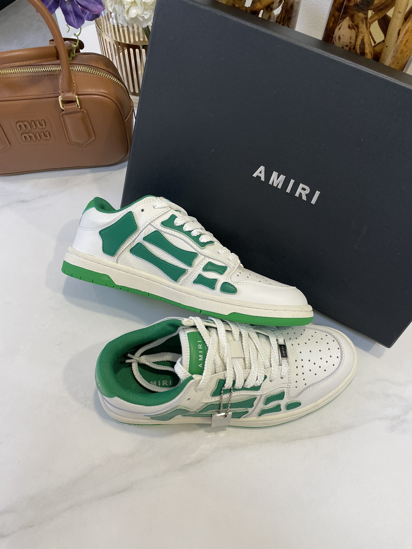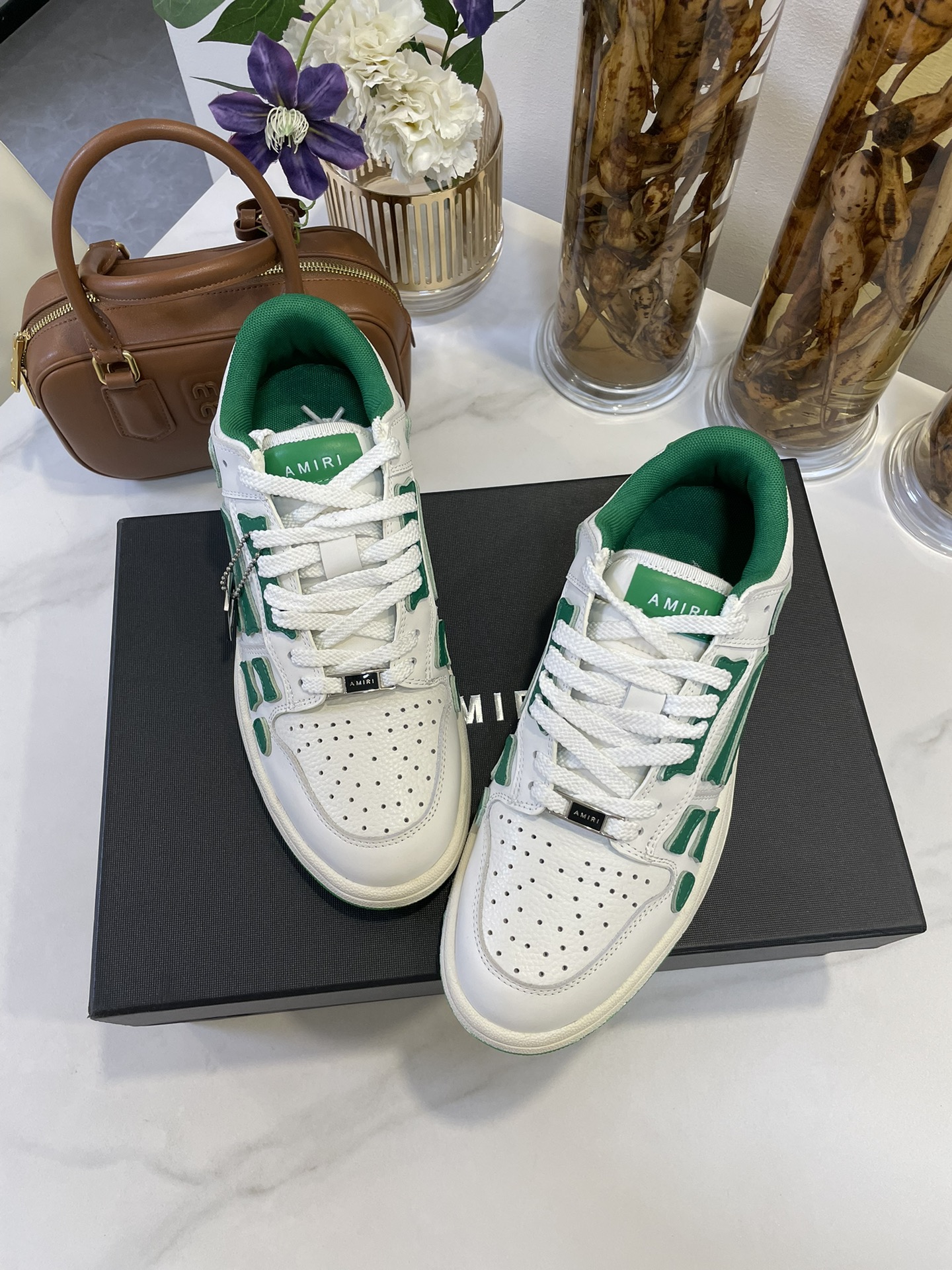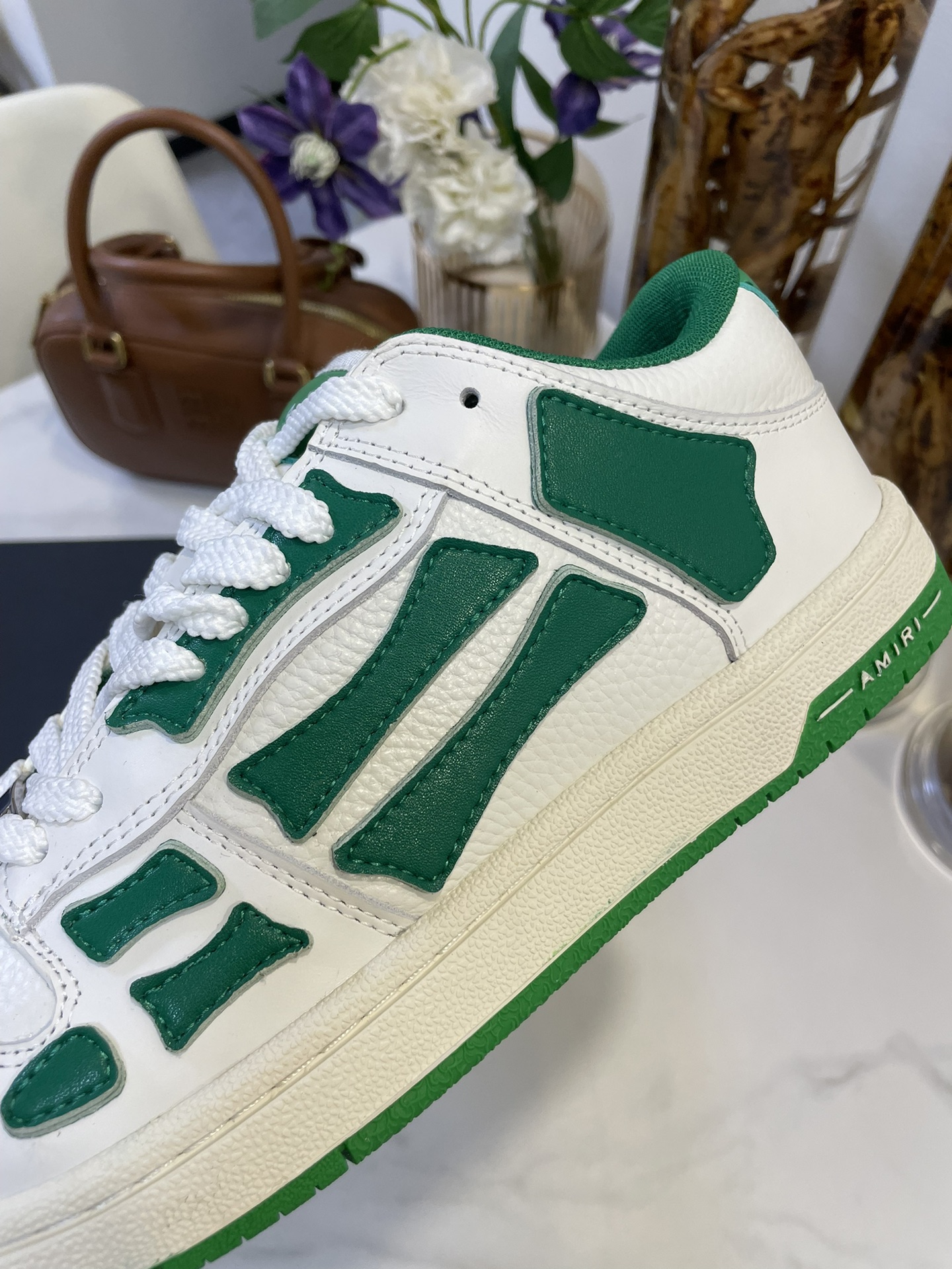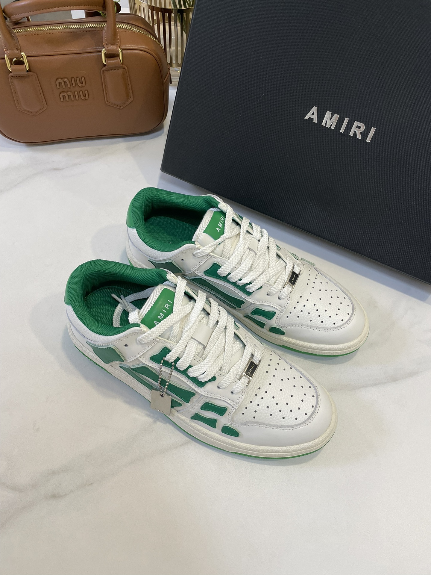 这款鞋子是AAAAA 1:1 质量 (非常棒). 使用了和原版一模一样的材料. 商标部分也保持了和AMIRI一样. 图片拍摄是实物鞋子拍摄, 您所收到的实物保证和我们图片一模一样.