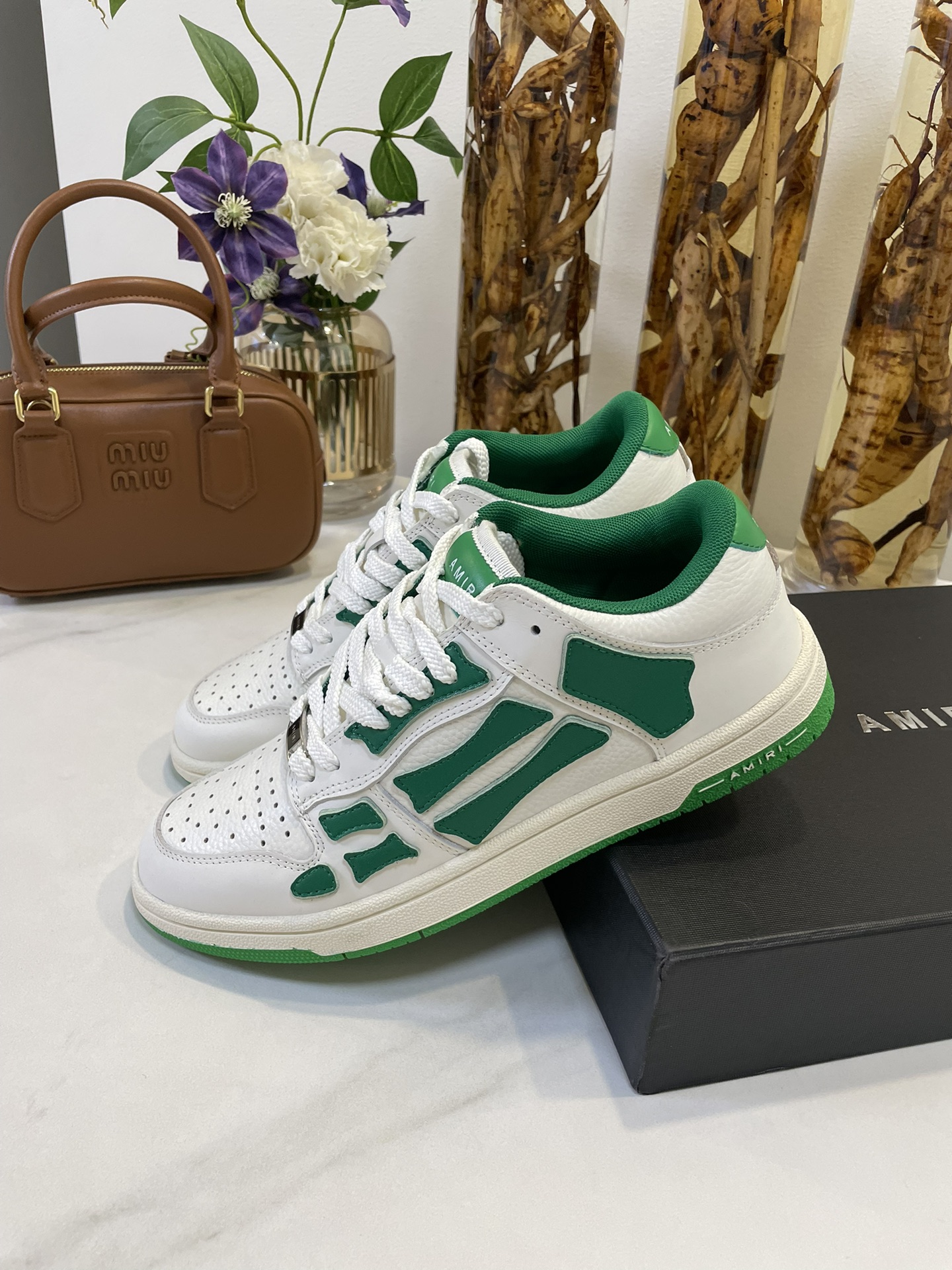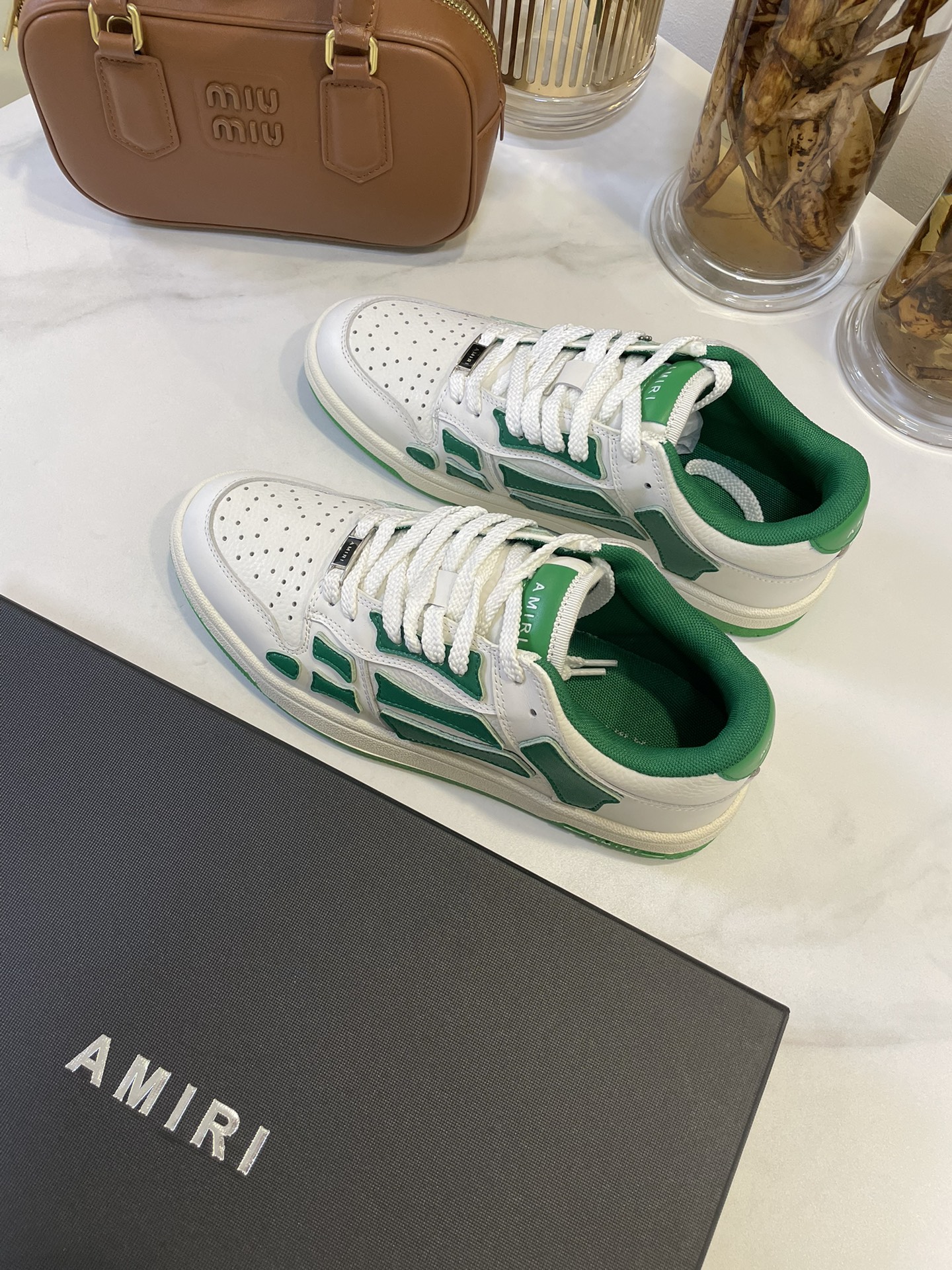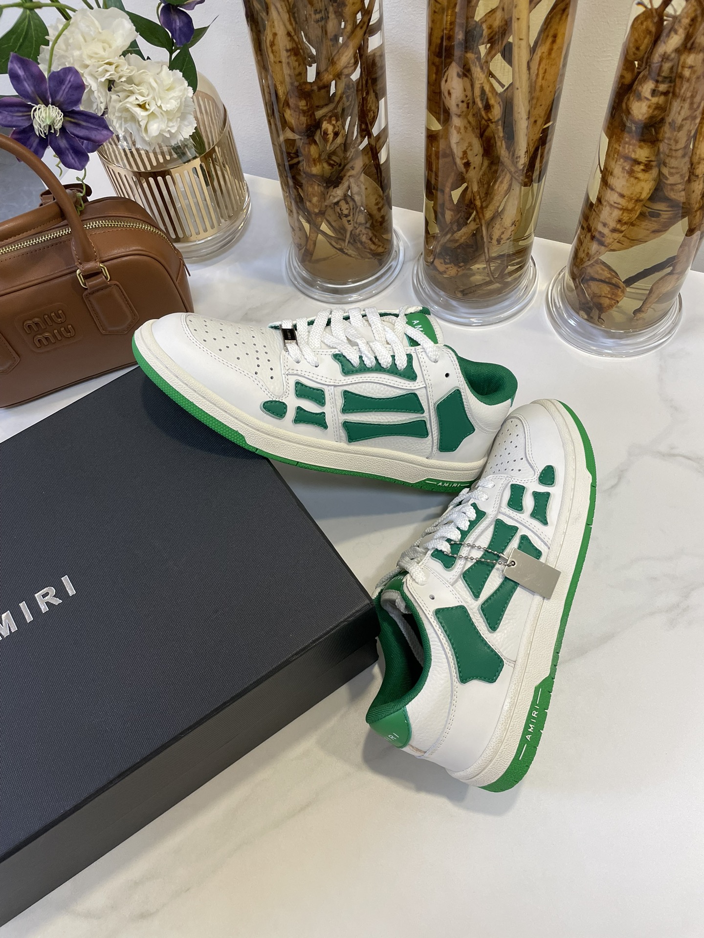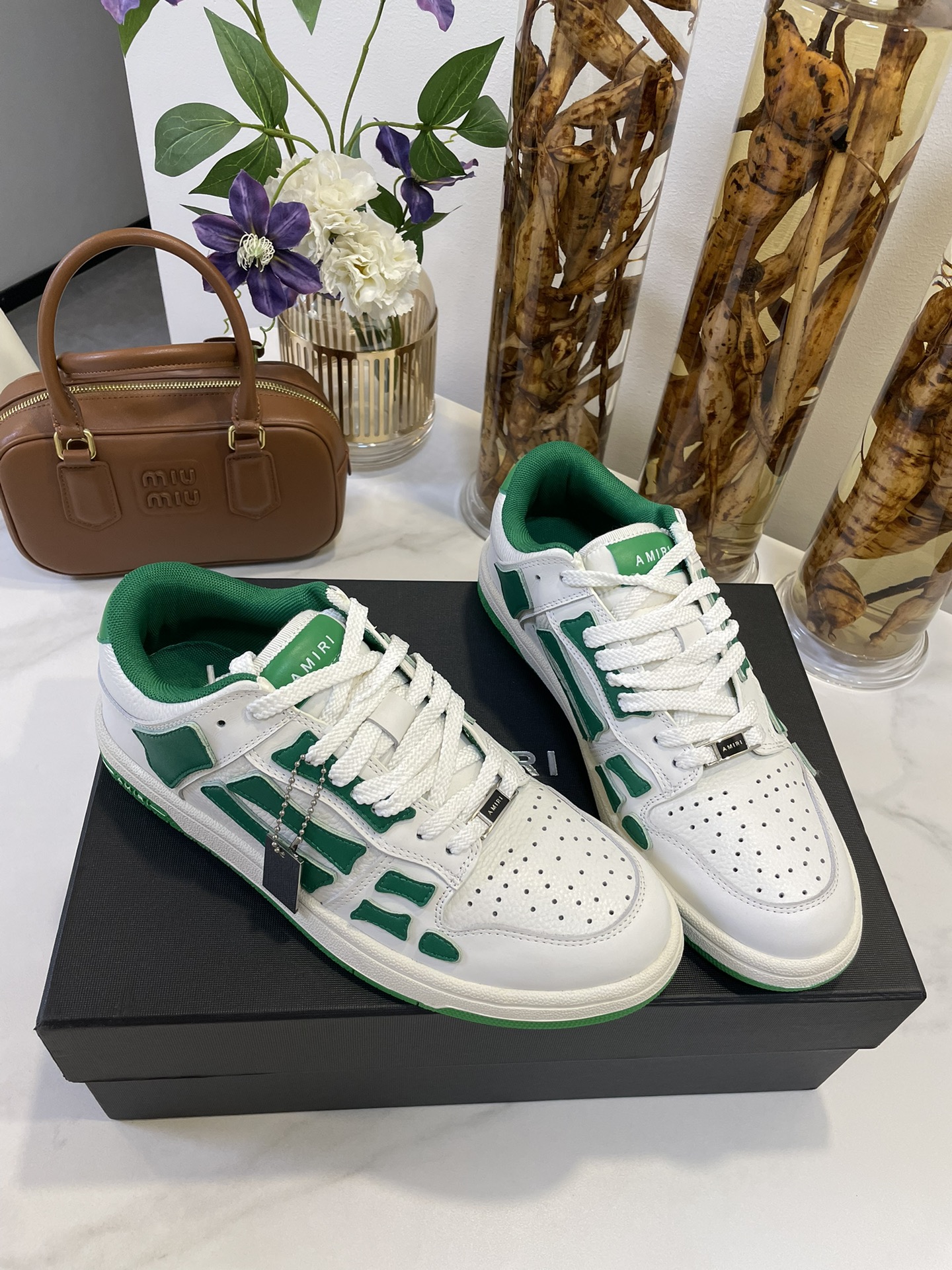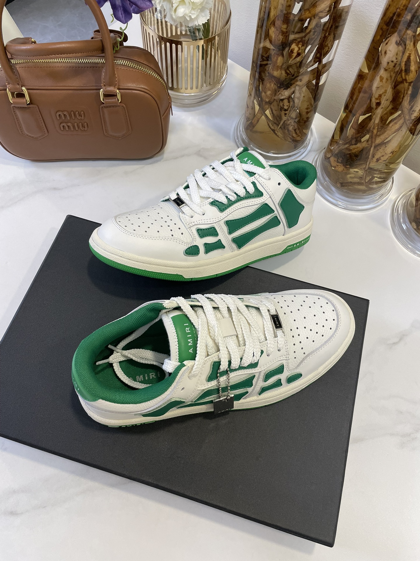 这款鞋子是AAAAA 1:1 质量 (非常棒). 使用了和原版一模一样的材料. 商标部分也保持了和AMIRI一样. 图片拍摄是实物鞋子拍摄, 您所收到的实物保证和我们图片一模一样.