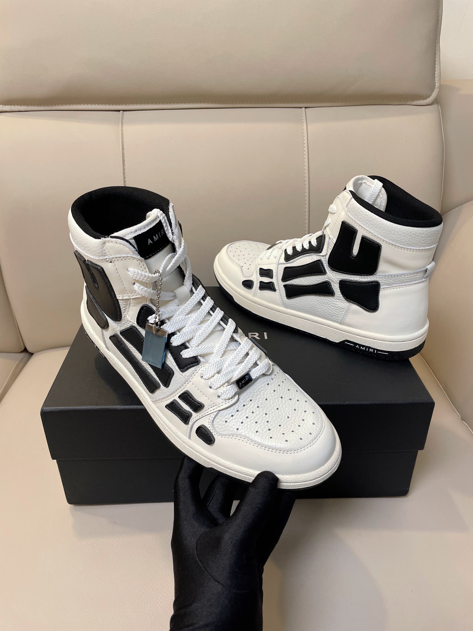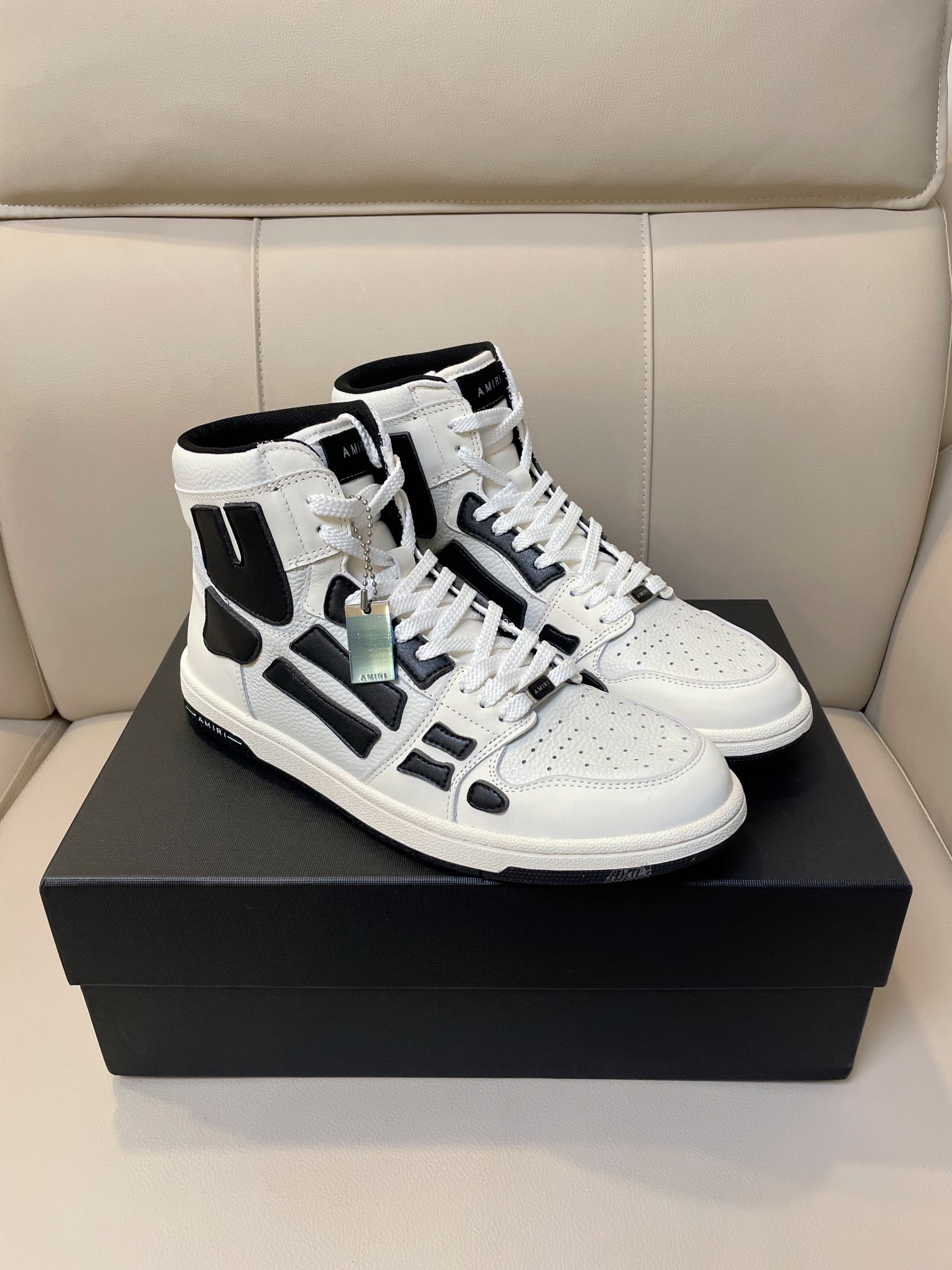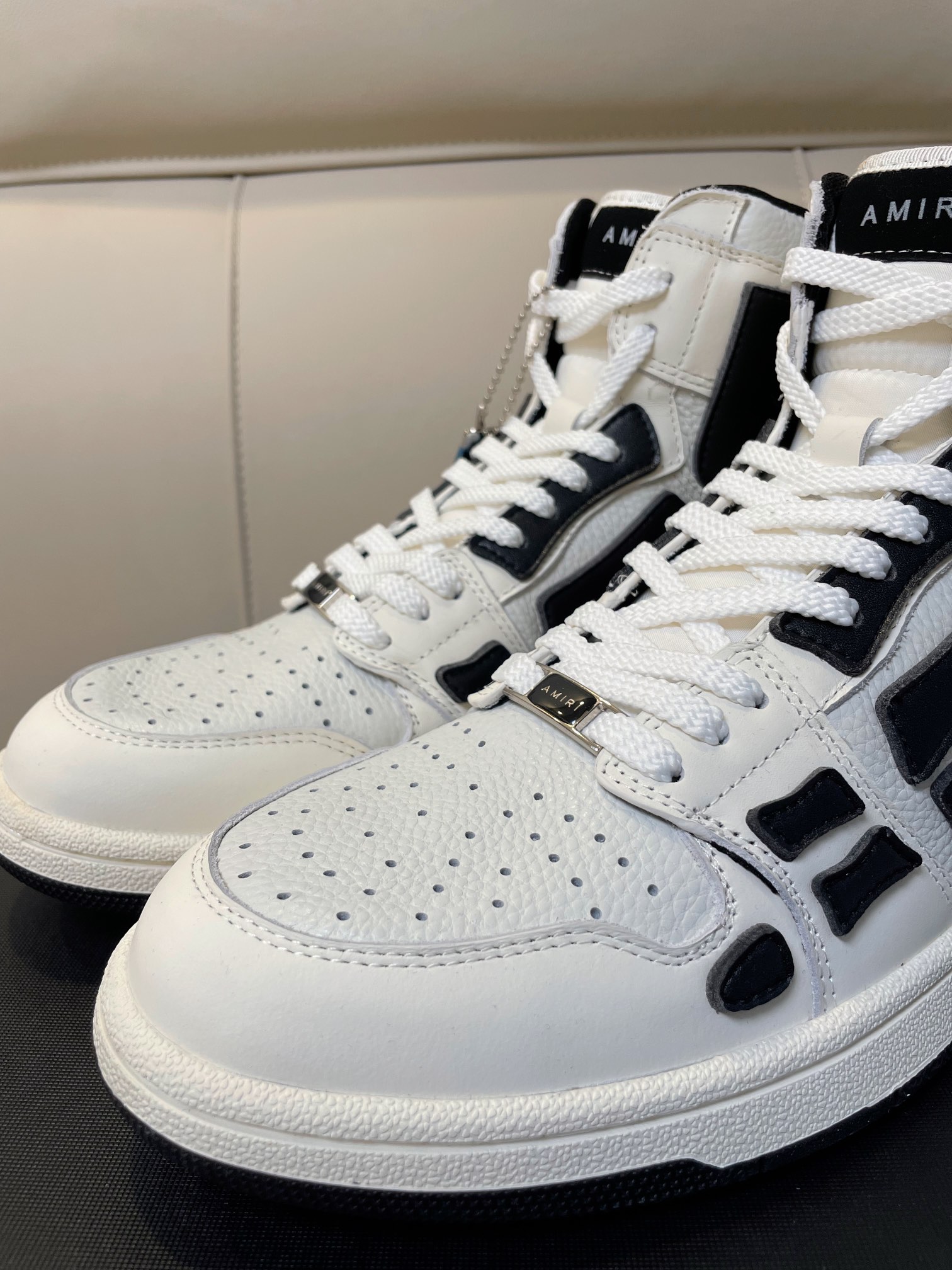 这款鞋子是AAAAA 1:1 质量 (非常棒). 使用了和原版一模一样的材料. 商标部分也保持了和AMIRI一样. 图片拍摄是实物鞋子拍摄, 您所收到的实物保证和我们图片一模一样.