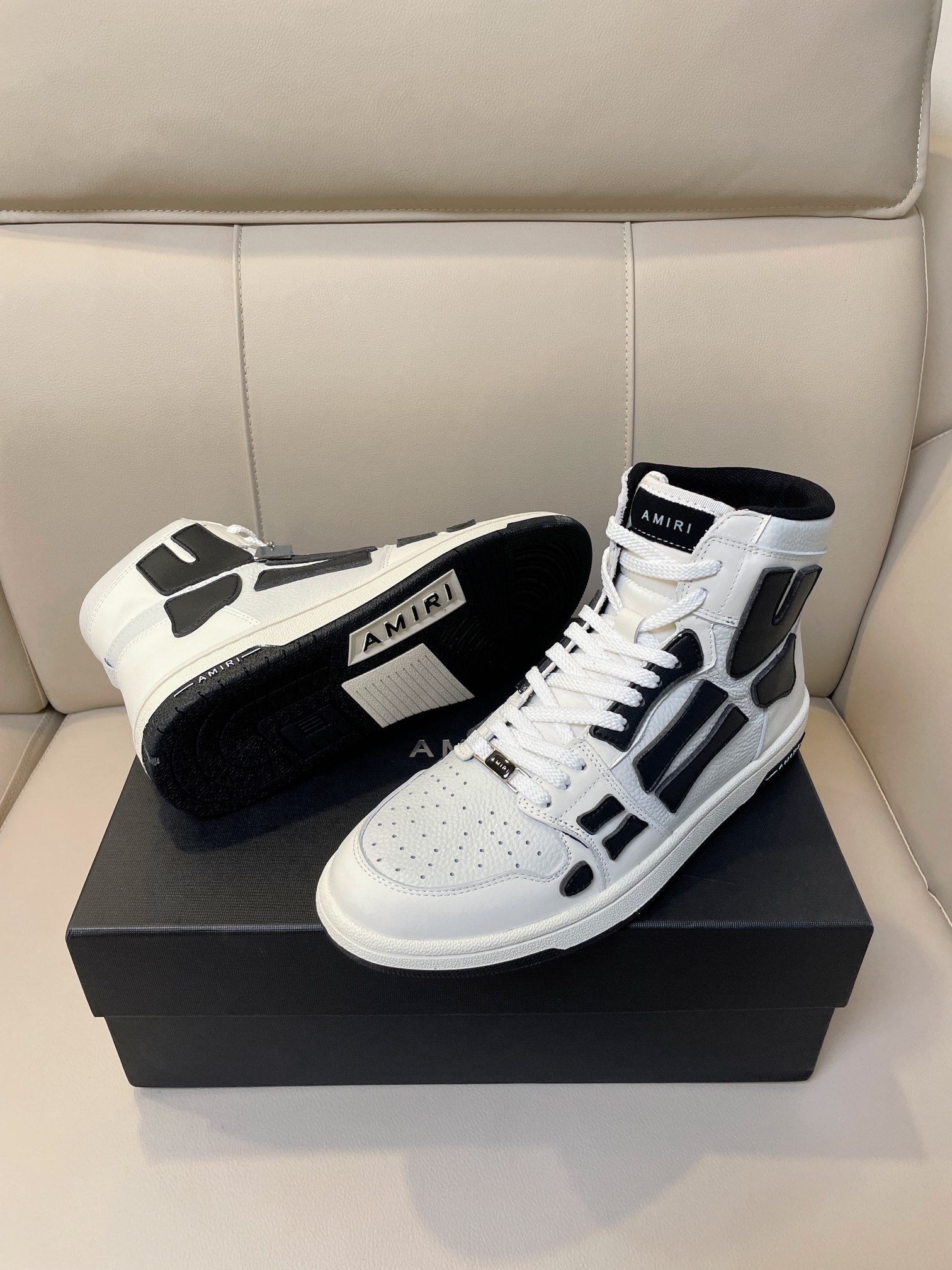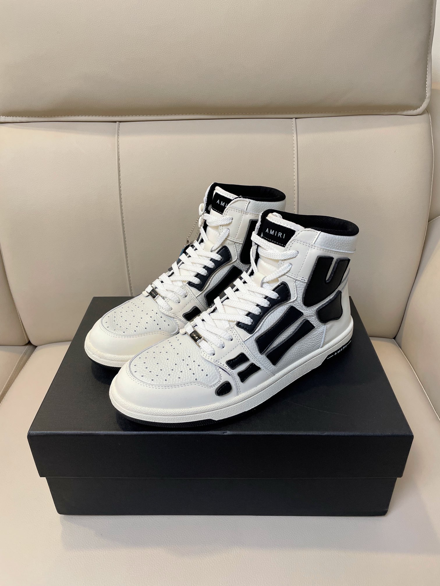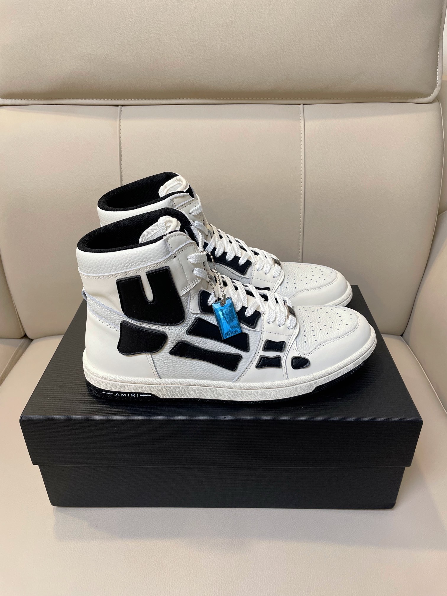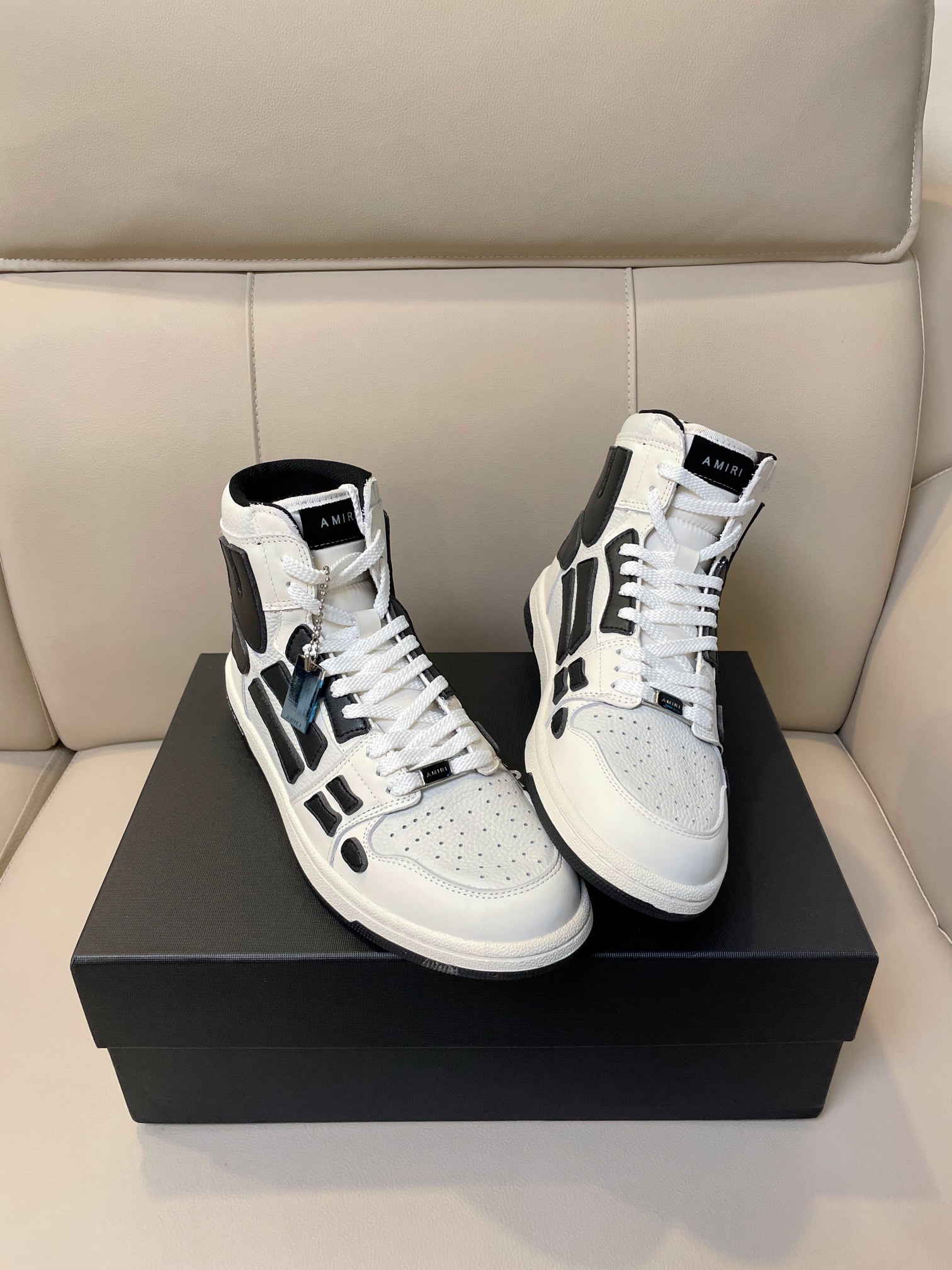 这款鞋子是AAAAA 1:1 质量 (非常棒). 使用了和原版一模一样的材料. 商标部分也保持了和AMIRI一样. 图片拍摄是实物鞋子拍摄, 您所收到的实物保证和我们图片一模一样.