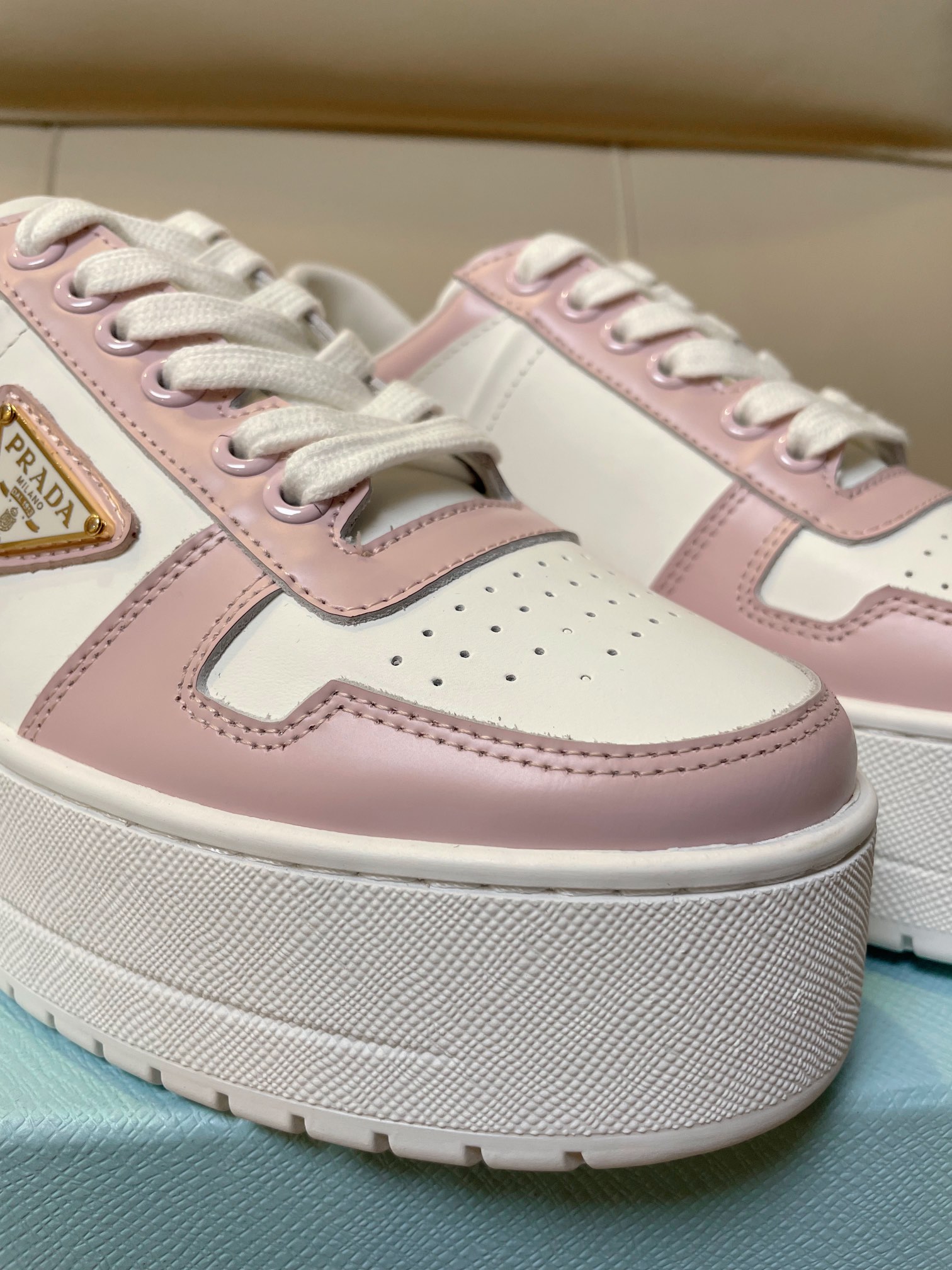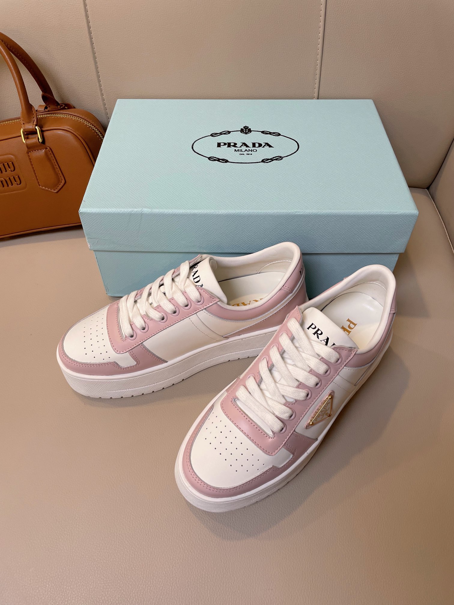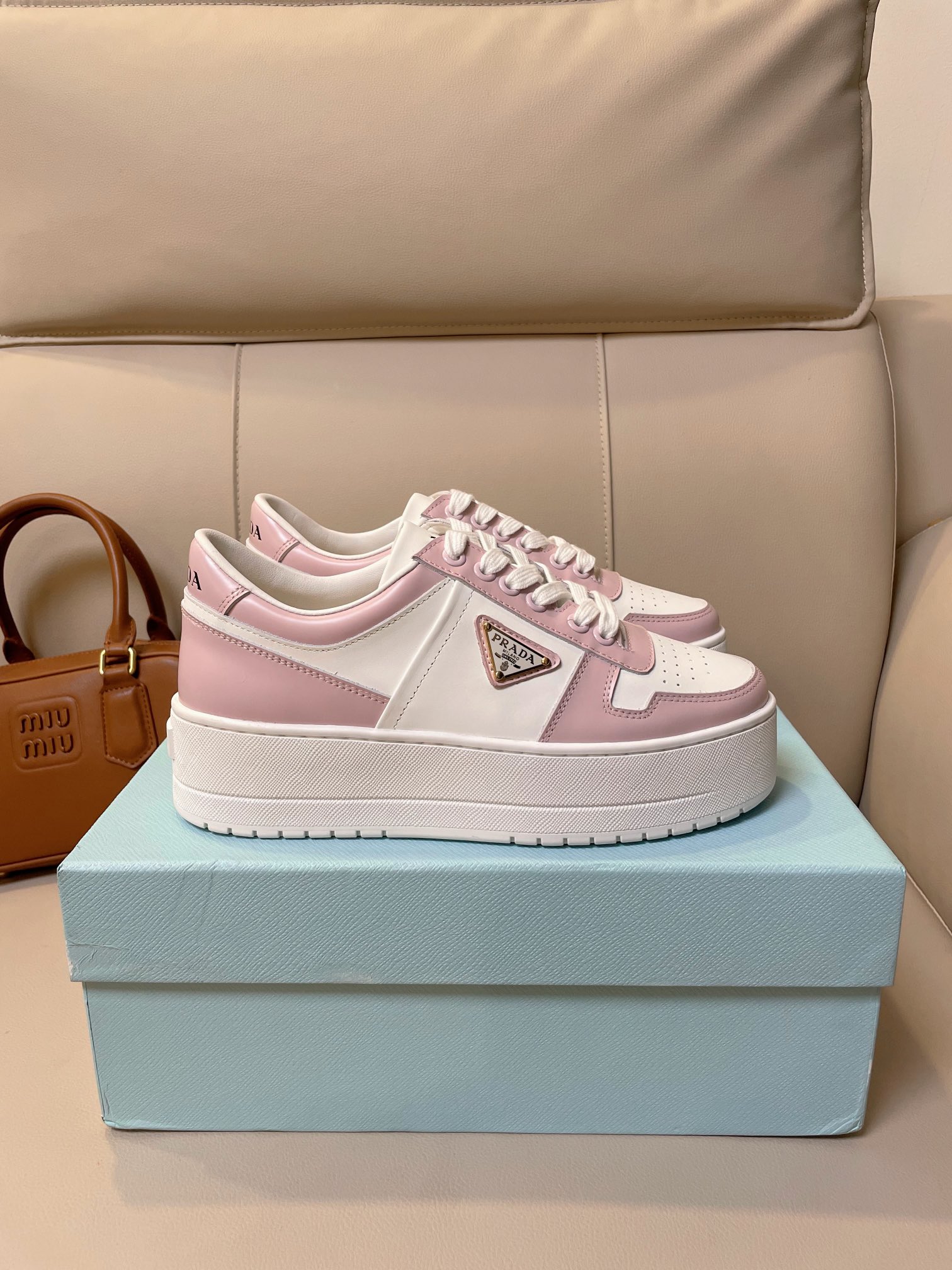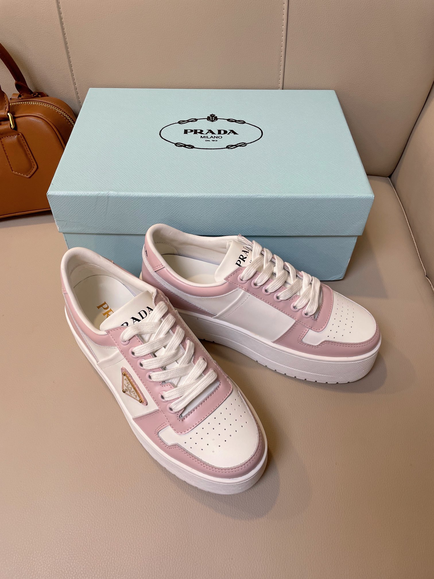 这款鞋子是AAAAA 1:1 质量 (非常棒). 使用了和原版一模一样的材料. 商标部分也保持了和普拉达/Prada一样. 图片拍摄是实物鞋子拍摄, 您所收到的实物保证和我们图片一模一样.
