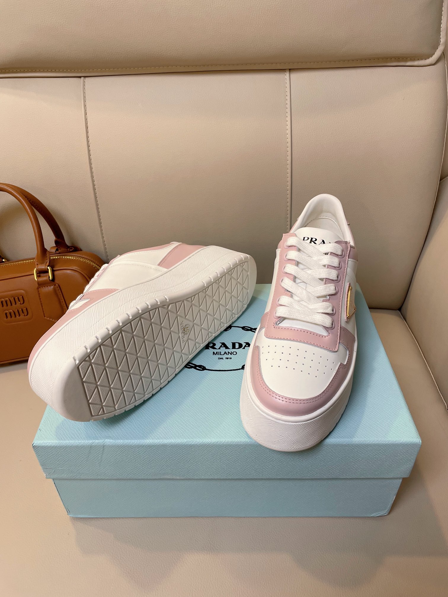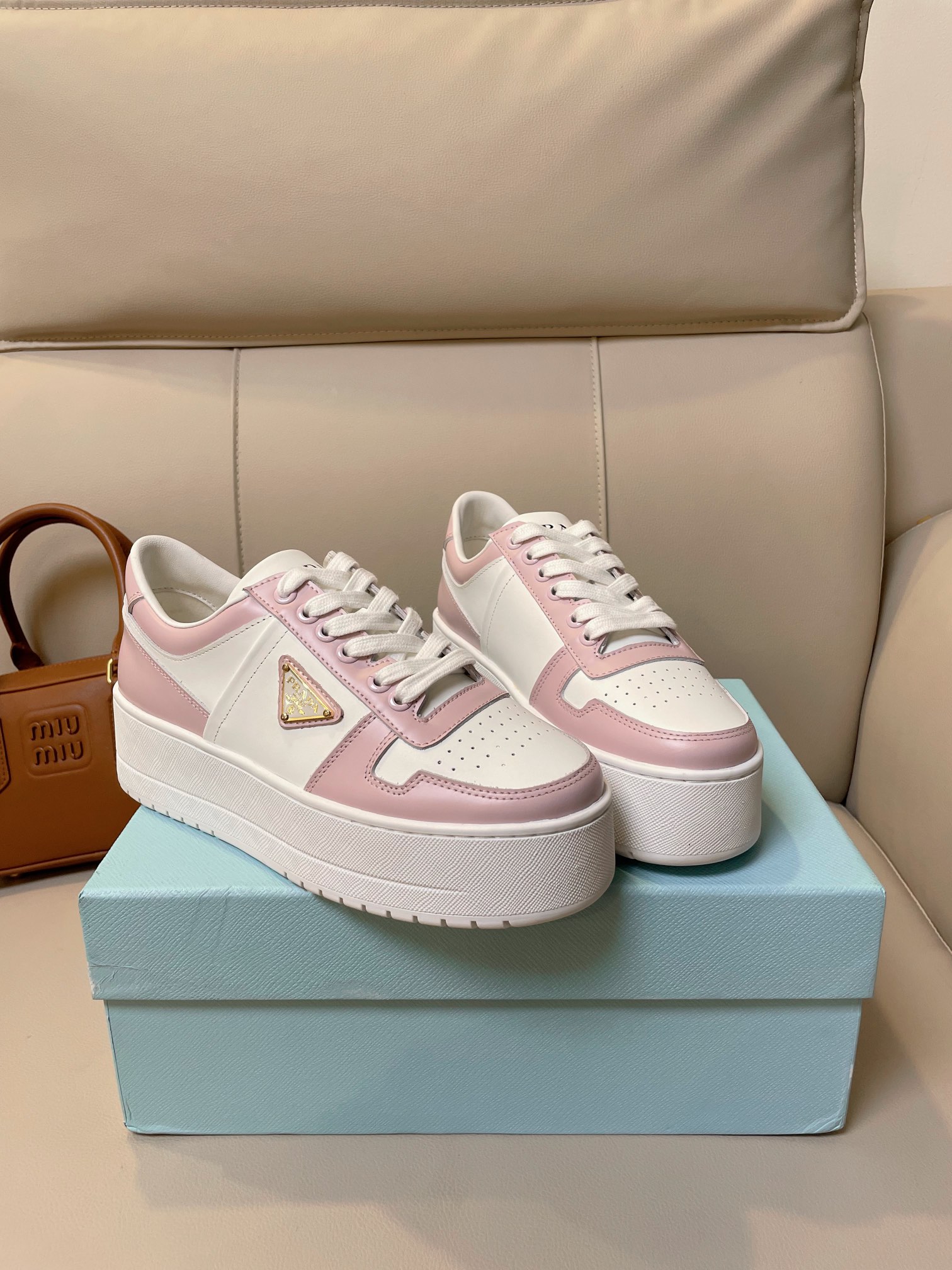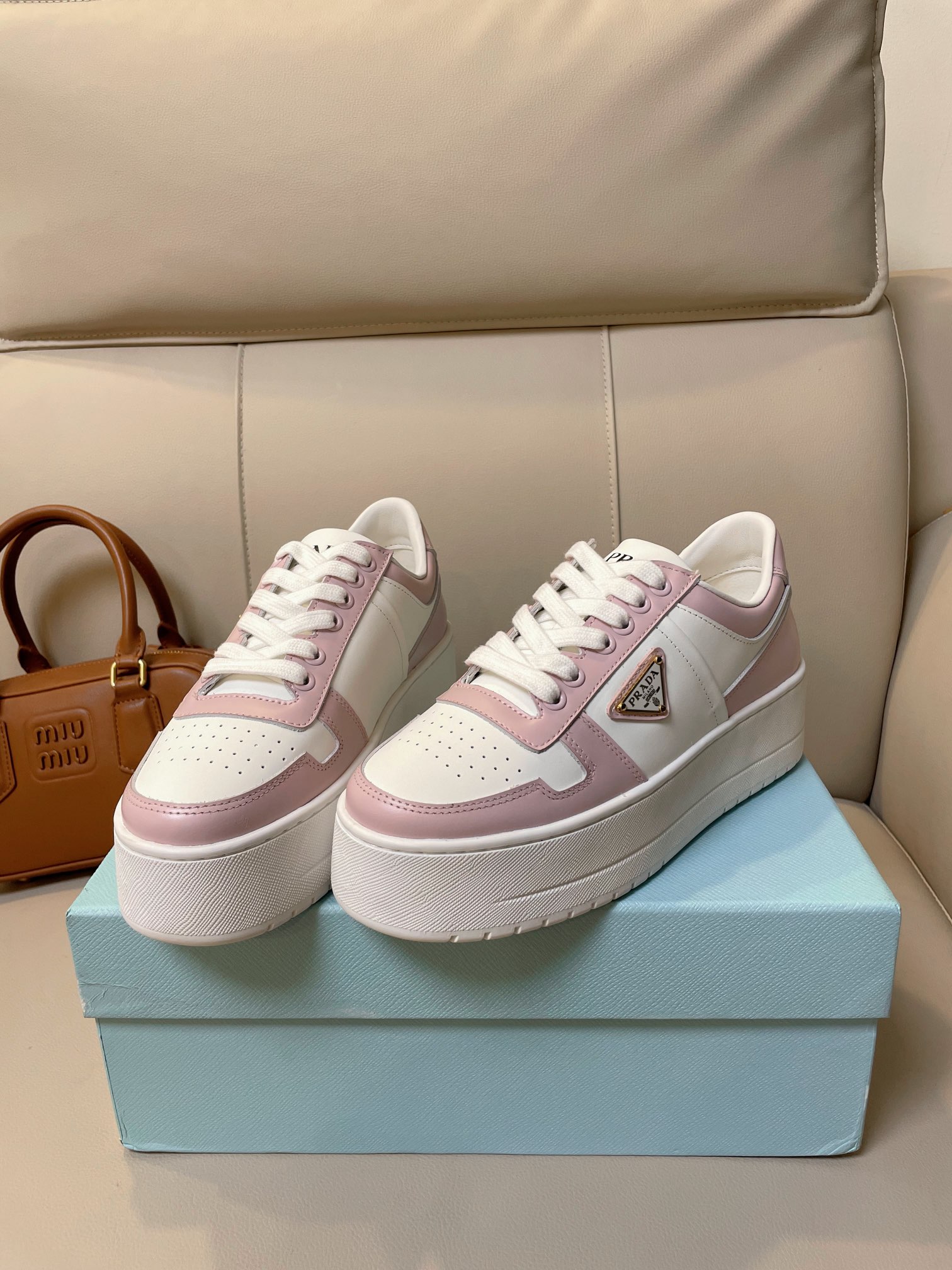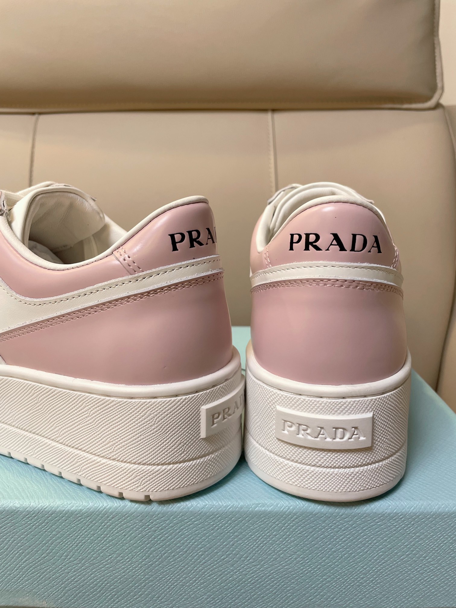 这款鞋子是AAAAA 1:1 质量 (非常棒). 使用了和原版一模一样的材料. 商标部分也保持了和普拉达/Prada一样. 图片拍摄是实物鞋子拍摄, 您所收到的实物保证和我们图片一模一样.