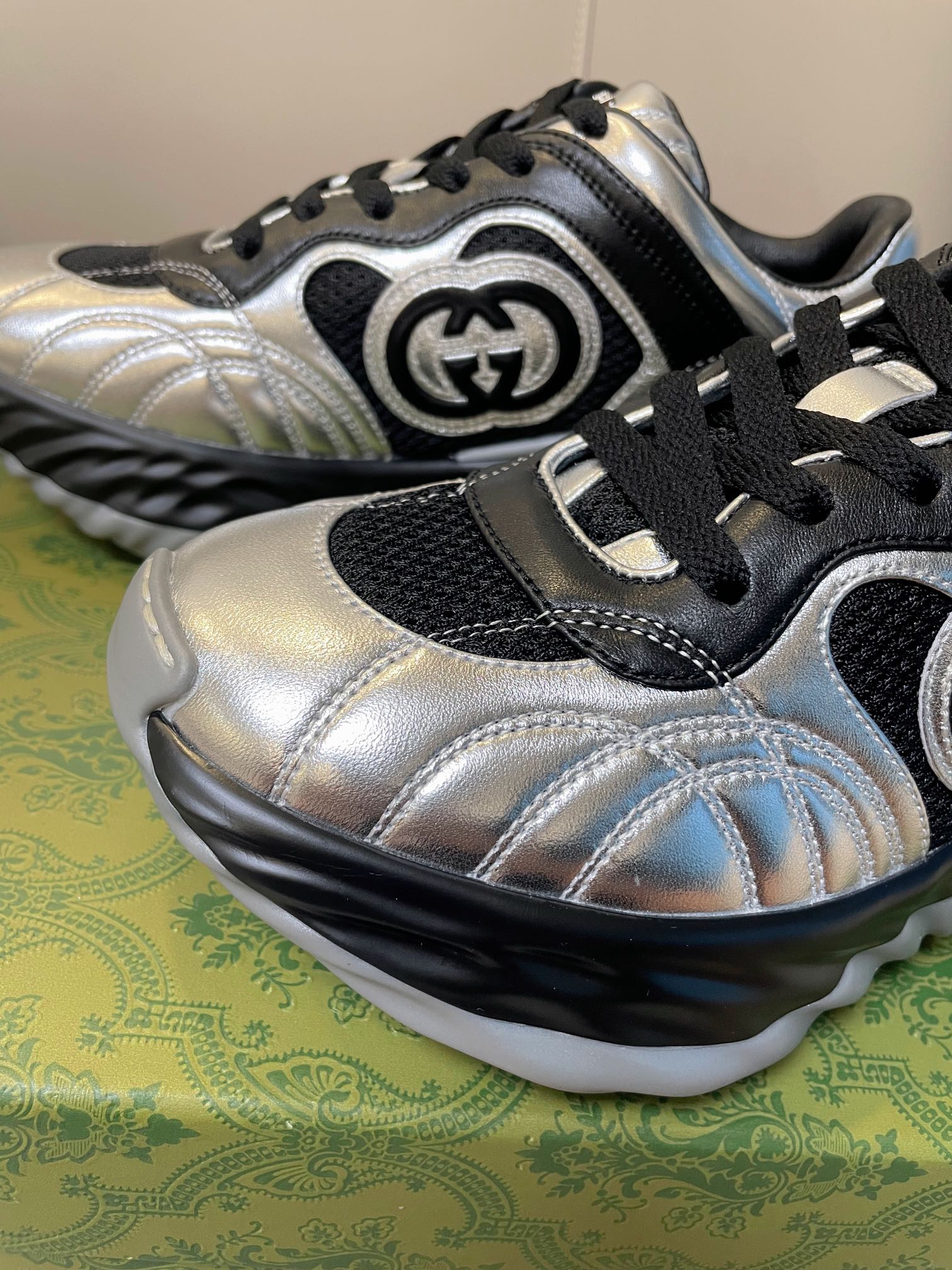 这款鞋子是AAAAA 1:1 质量 (非常棒). 使用了和原版一模一样的材料. 商标部分也保持了和古奇/Gucci一样. 图片拍摄是实物鞋子拍摄, 您所收到的实物保证和我们图片一模一样.