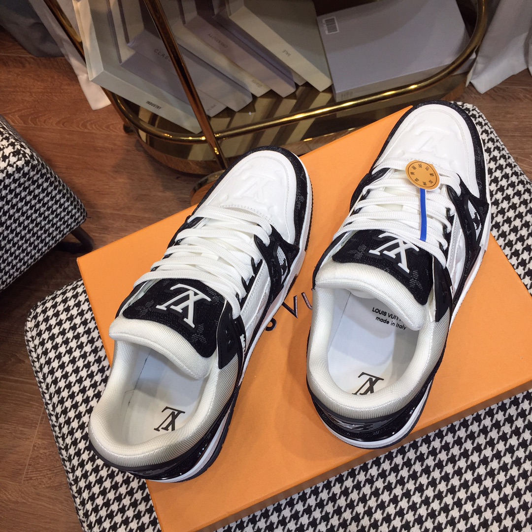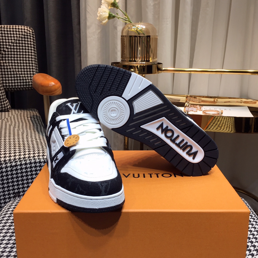 这款鞋子是AAAAA 1:1 质量 (非常棒). 使用了和原版一模一样的材料. 商标部分也保持了和路易威登/Louis Vuitton一样. 图片拍摄是实物鞋子拍摄, 您所收到的实物保证和我们图片一模一样.