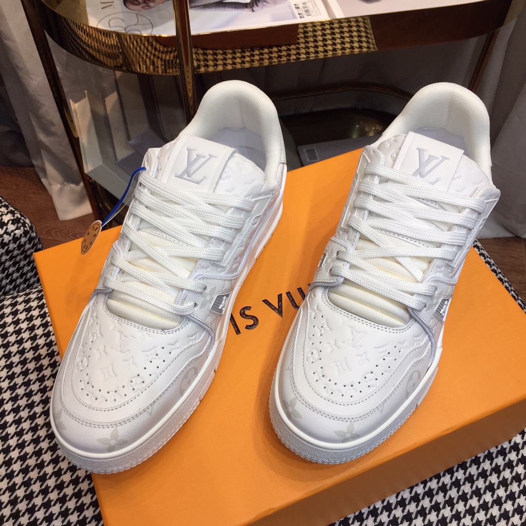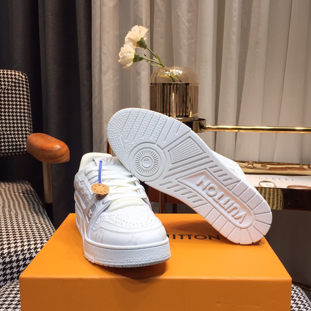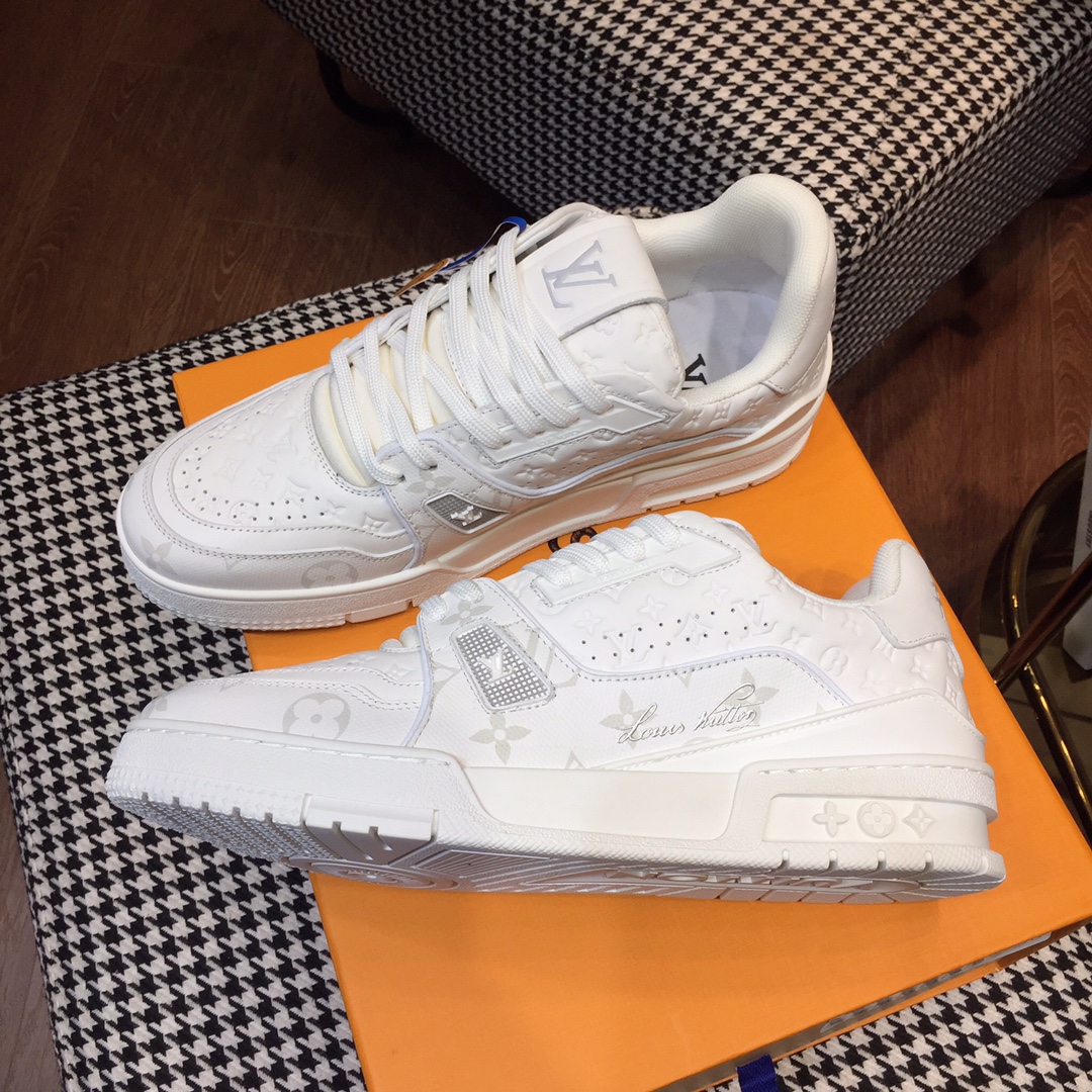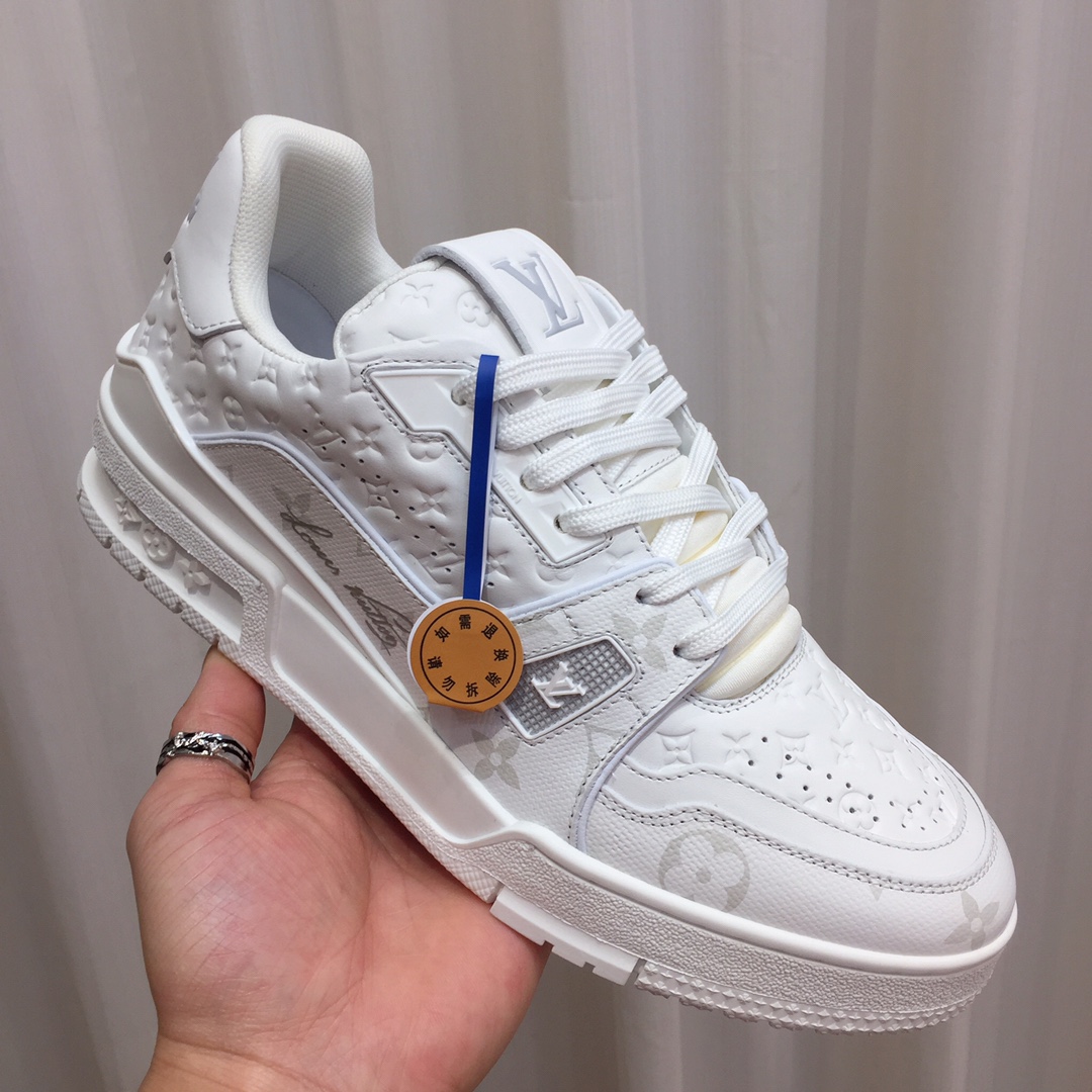 这款鞋子是AAAAA 1:1 质量 (非常棒). 使用了和原版一模一样的材料. 商标部分也保持了和路易威登/Louis Vuitton一样. 图片拍摄是实物鞋子拍摄, 您所收到的实物保证和我们图片一模一样.