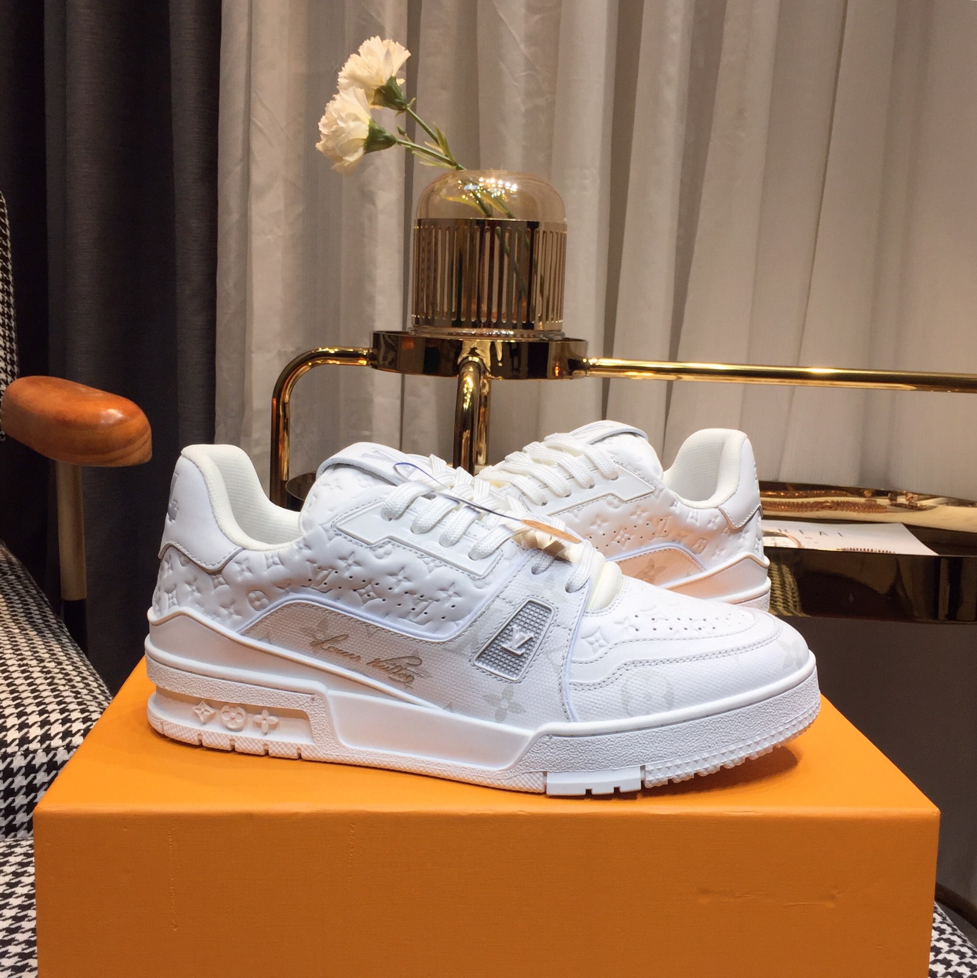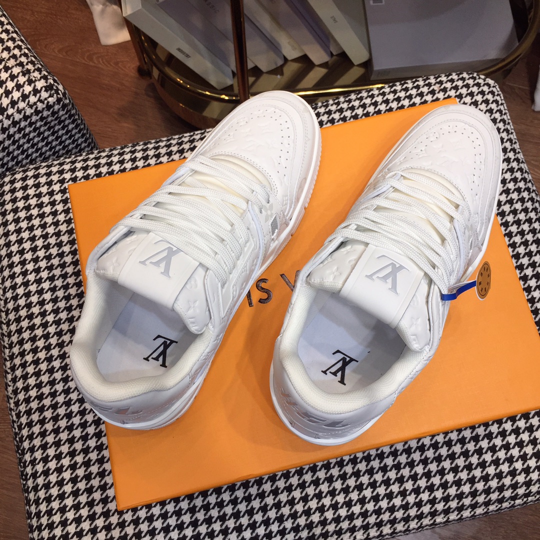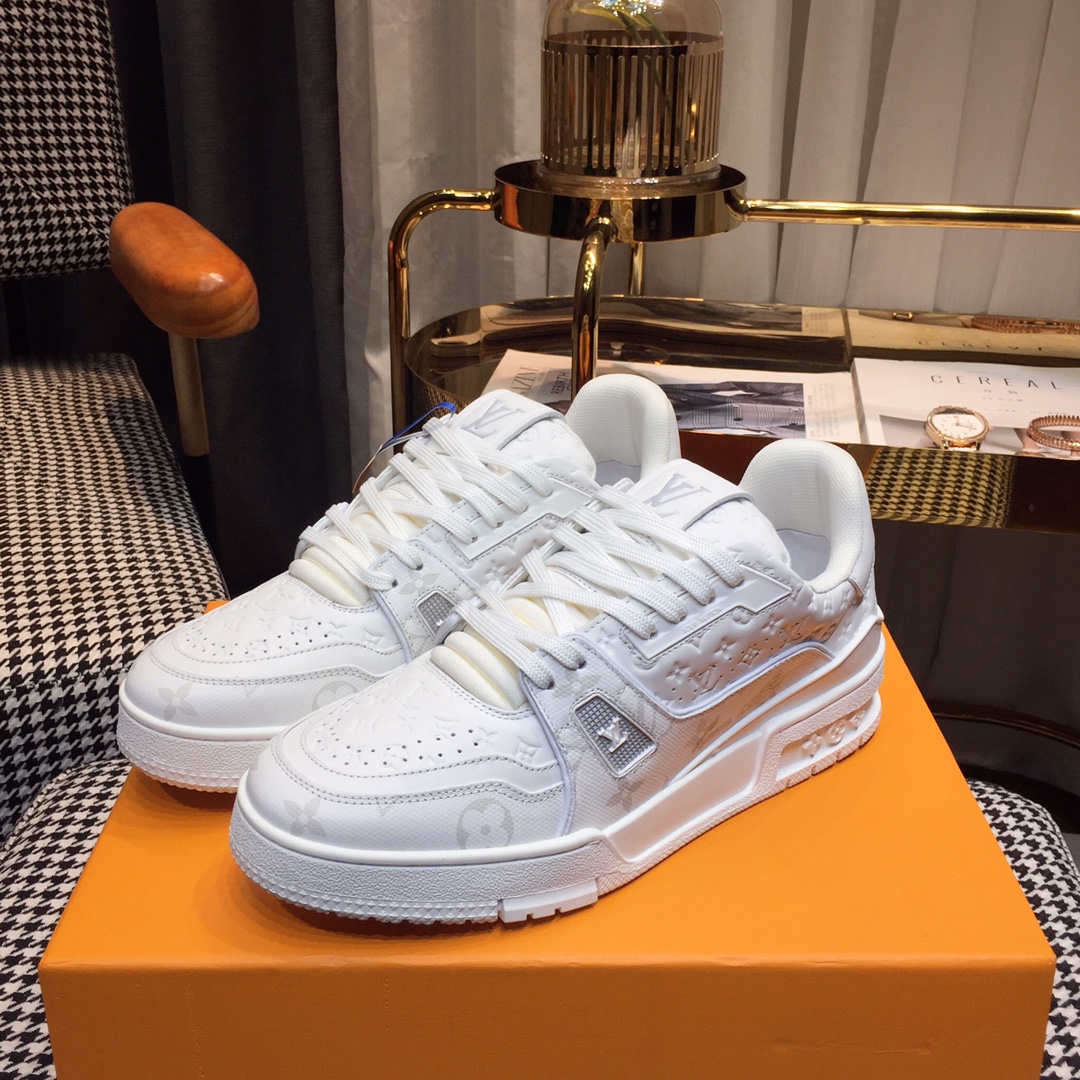 这款鞋子是AAAAA 1:1 质量 (非常棒). 使用了和原版一模一样的材料. 商标部分也保持了和路易威登/Louis Vuitton一样. 图片拍摄是实物鞋子拍摄, 您所收到的实物保证和我们图片一模一样.