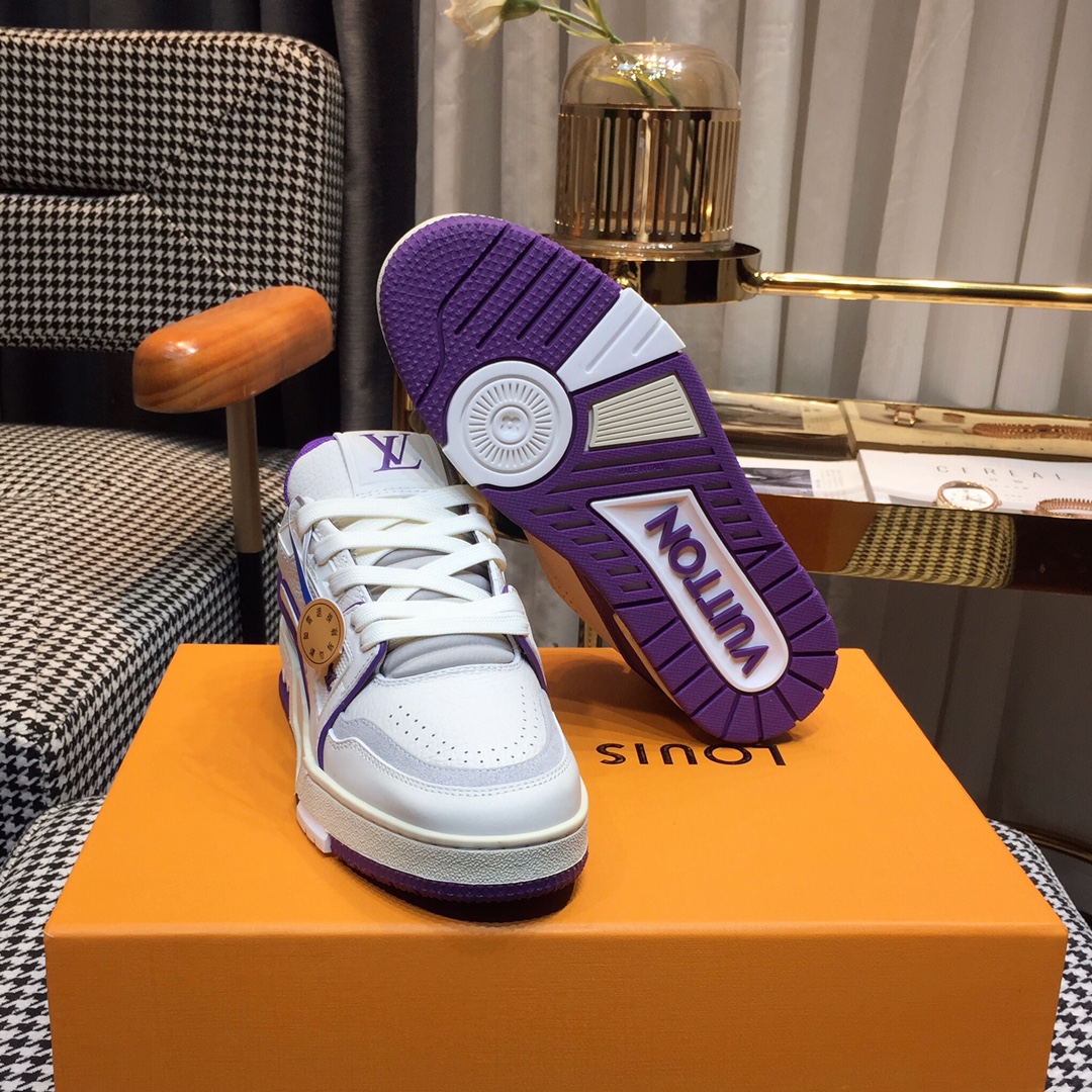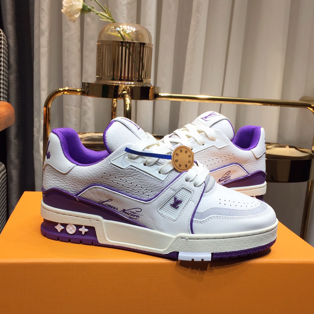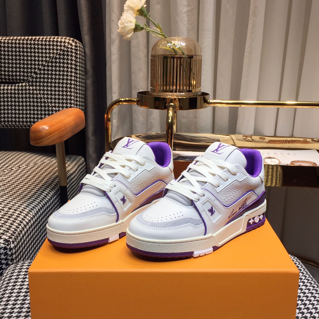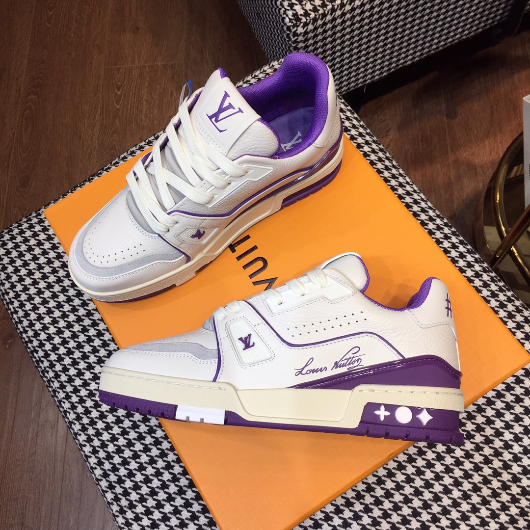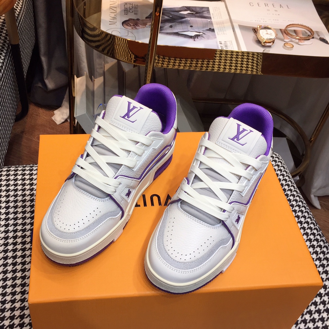 这款鞋子是AAAAA 1:1 质量 (非常棒). 使用了和原版一模一样的材料. 商标部分也保持了和路易威登/Louis Vuitton一样. 图片拍摄是实物鞋子拍摄, 您所收到的实物保证和我们图片一模一样.
