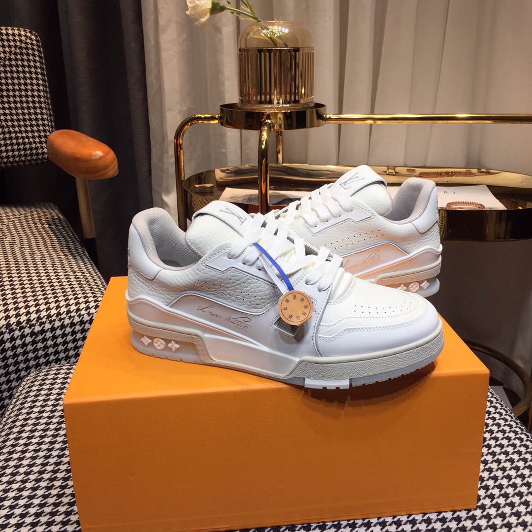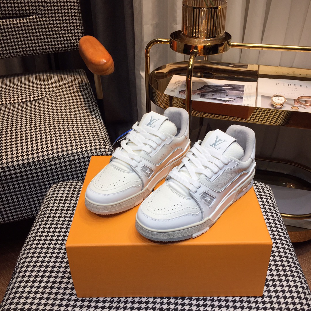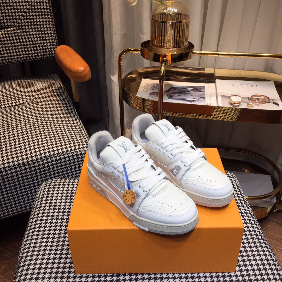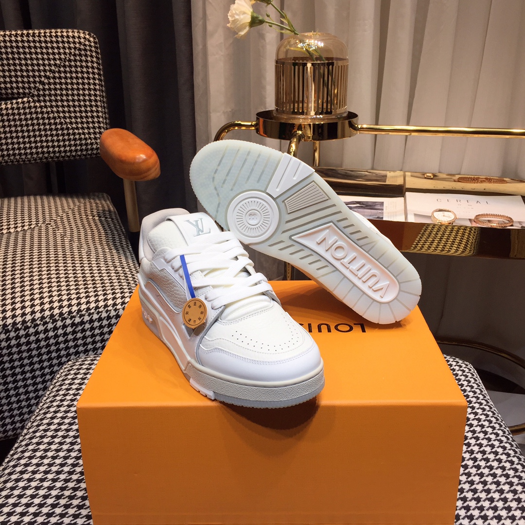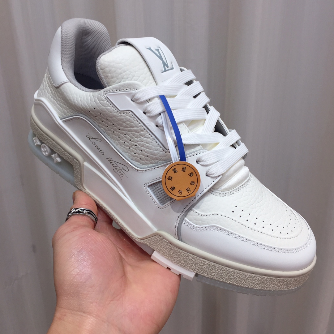 这款鞋子是AAAAA 1:1 质量 (非常棒). 使用了和原版一模一样的材料. 商标部分也保持了和路易威登/Louis Vuitton一样. 图片拍摄是实物鞋子拍摄, 您所收到的实物保证和我们图片一模一样.