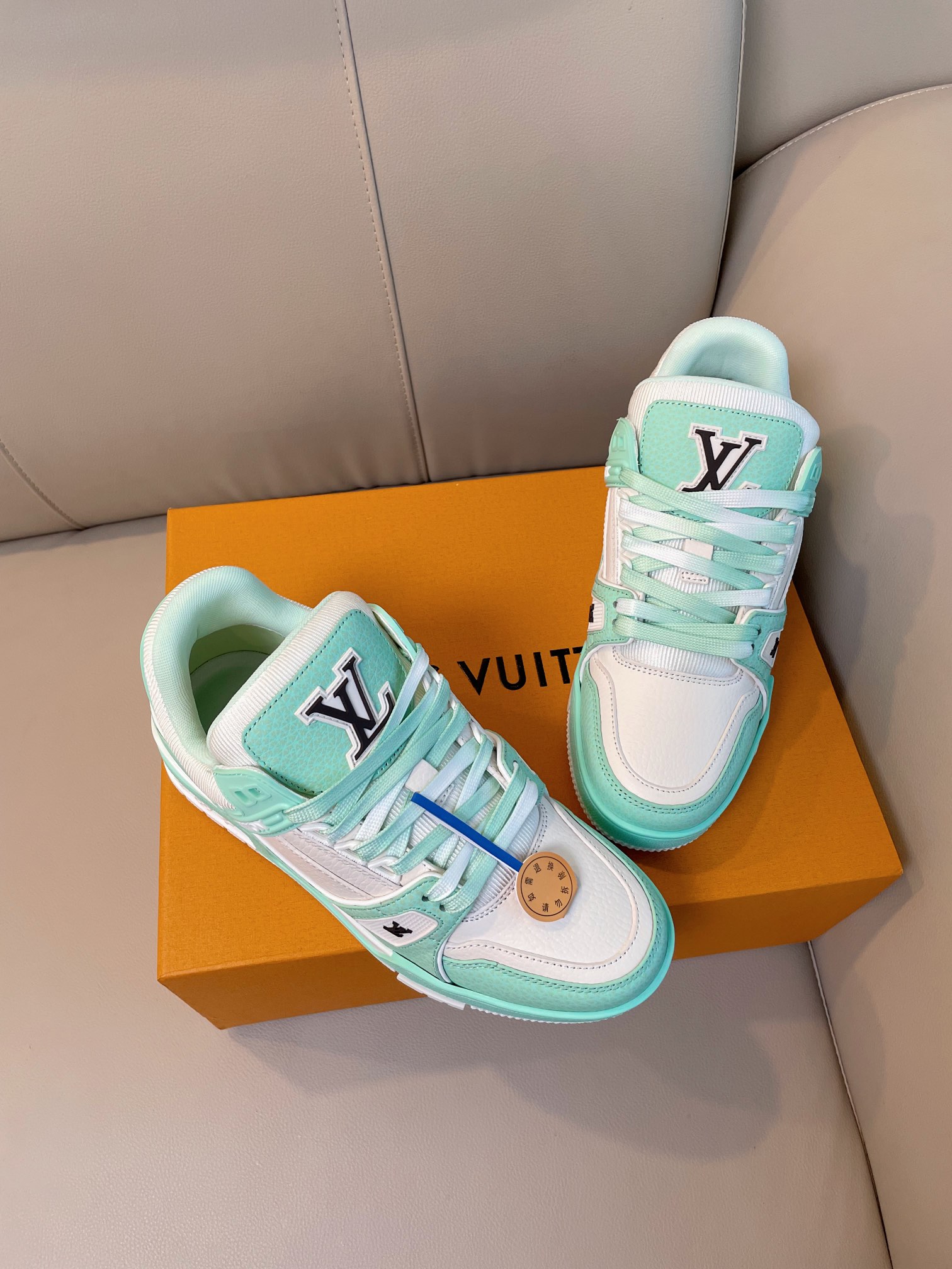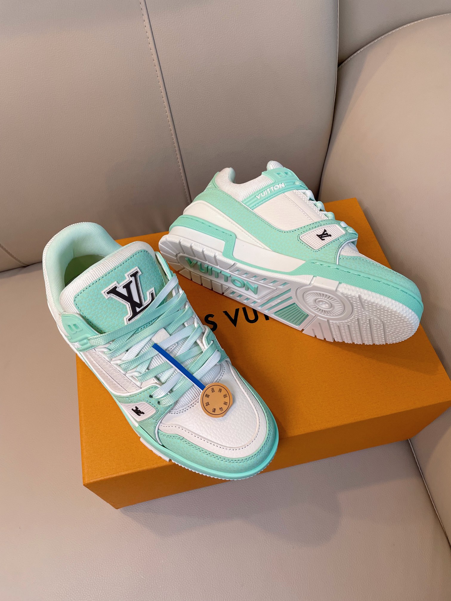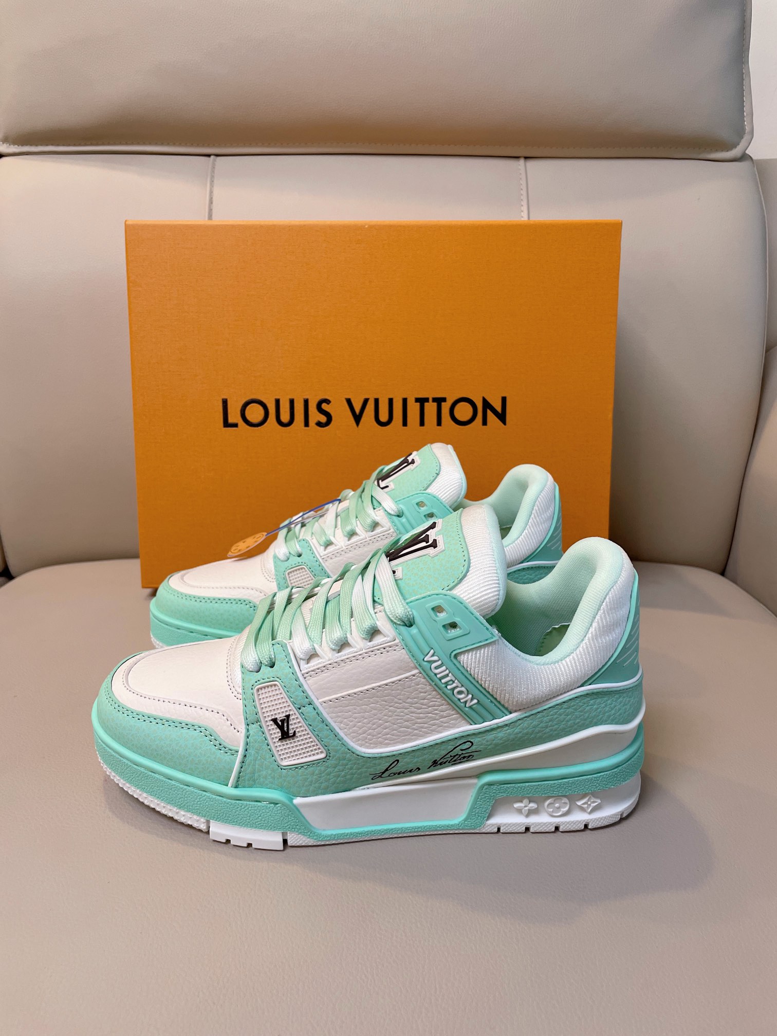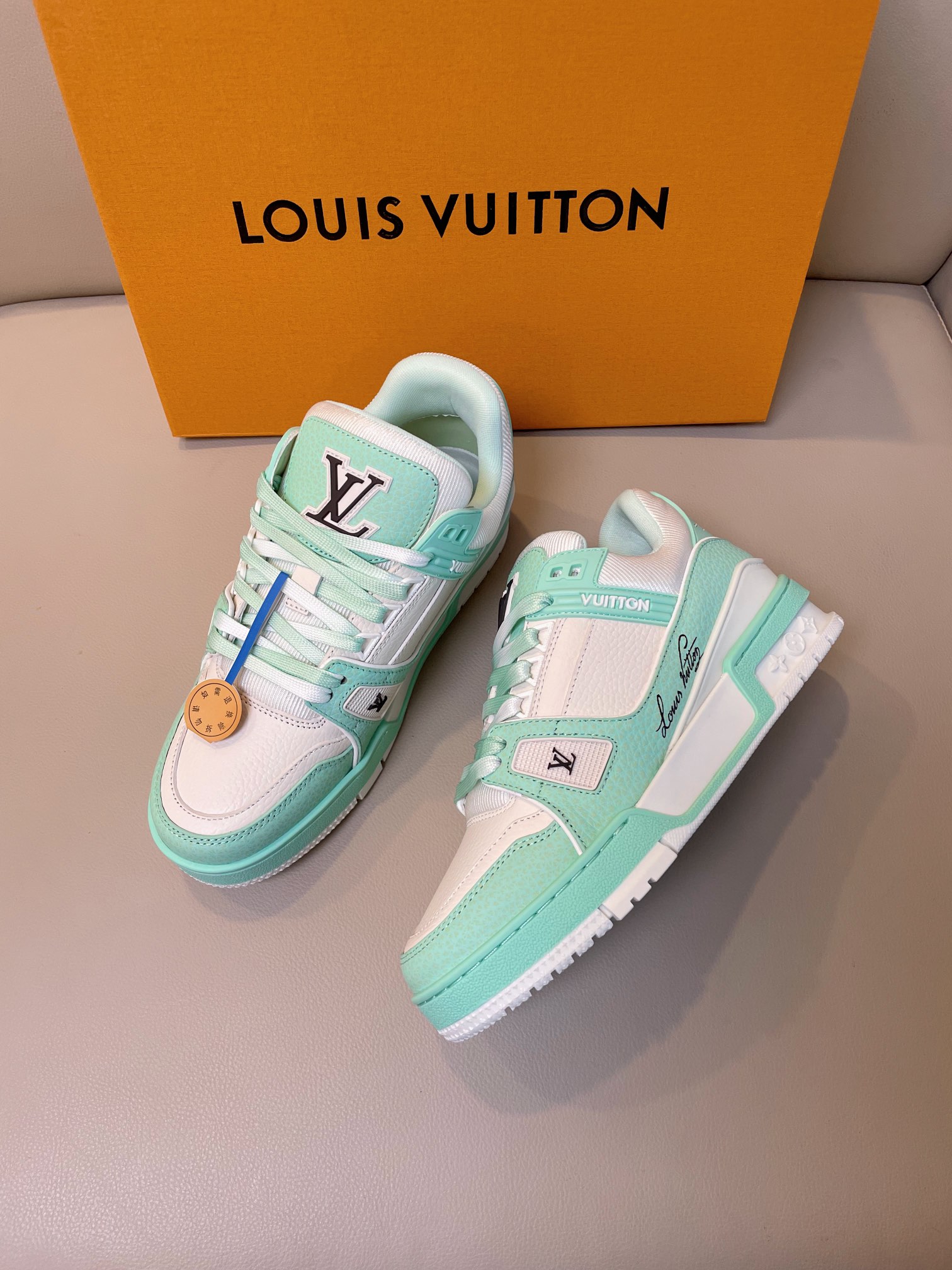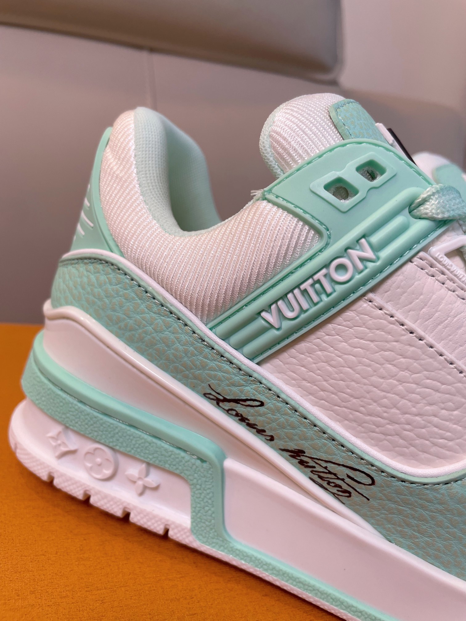 这款鞋子是AAAAA 1:1 质量 (非常棒). 使用了和原版一模一样的材料. 商标部分也保持了和路易威登/Louis Vuitton一样. 图片拍摄是实物鞋子拍摄, 您所收到的实物保证和我们图片一模一样.