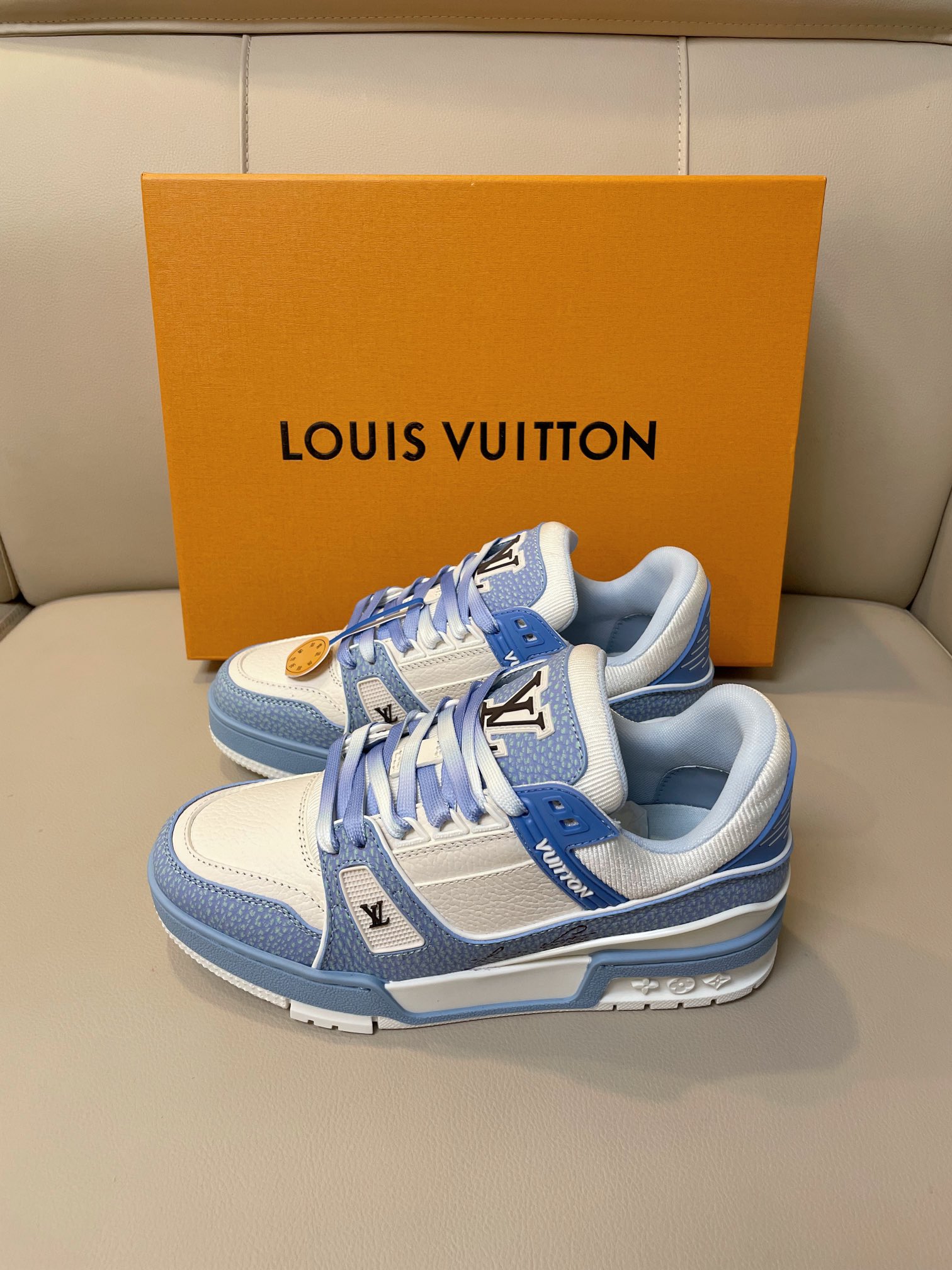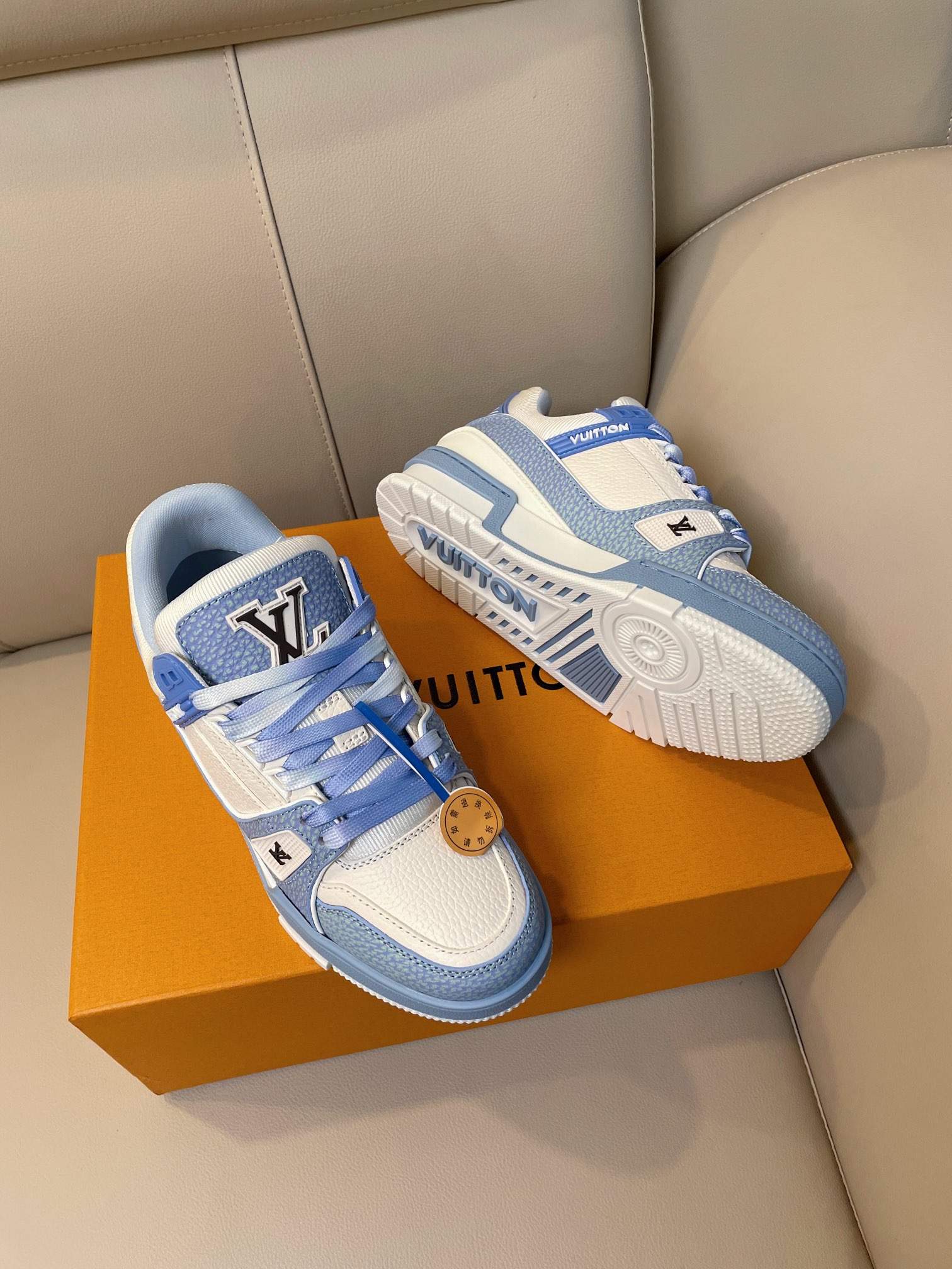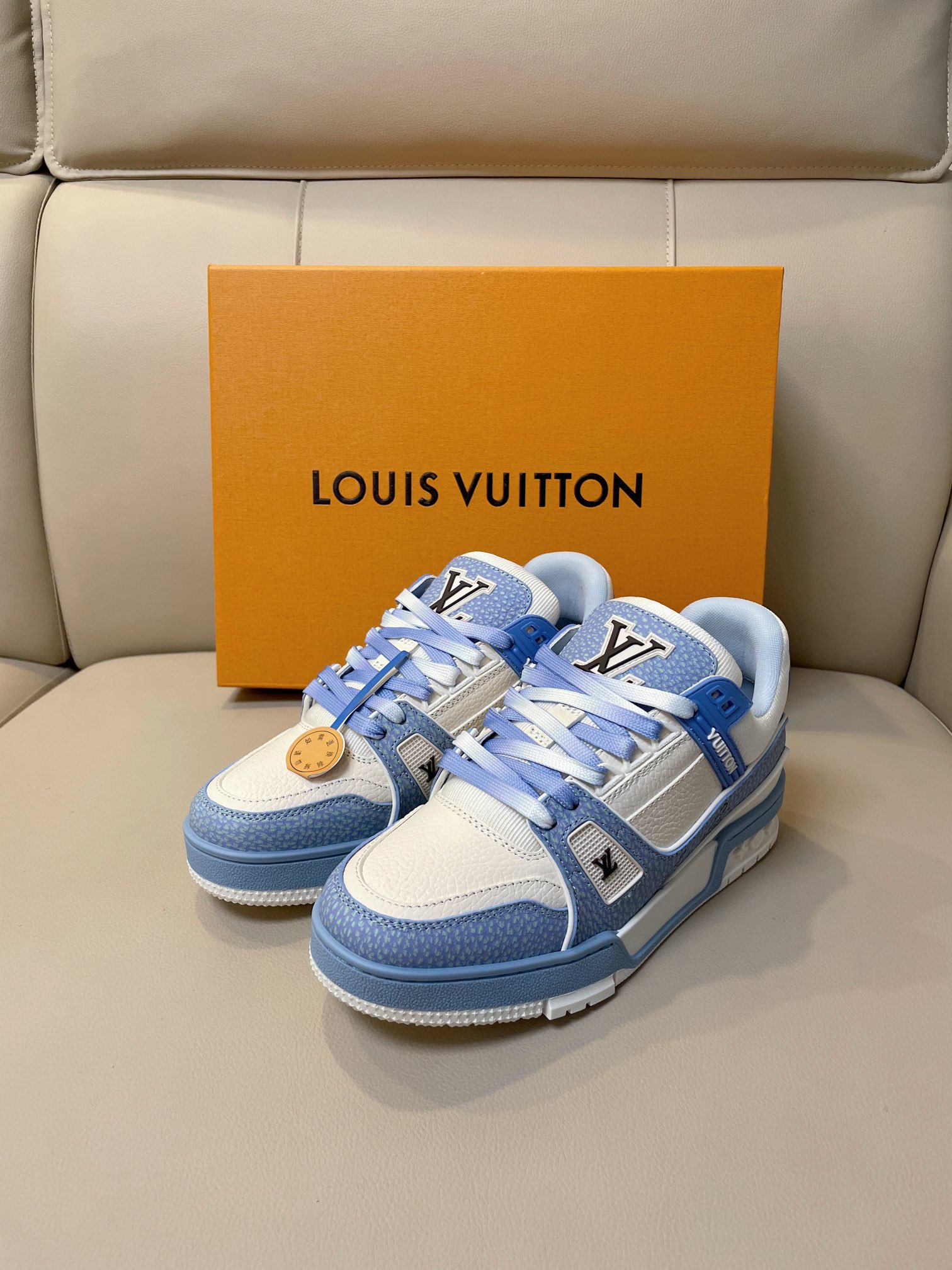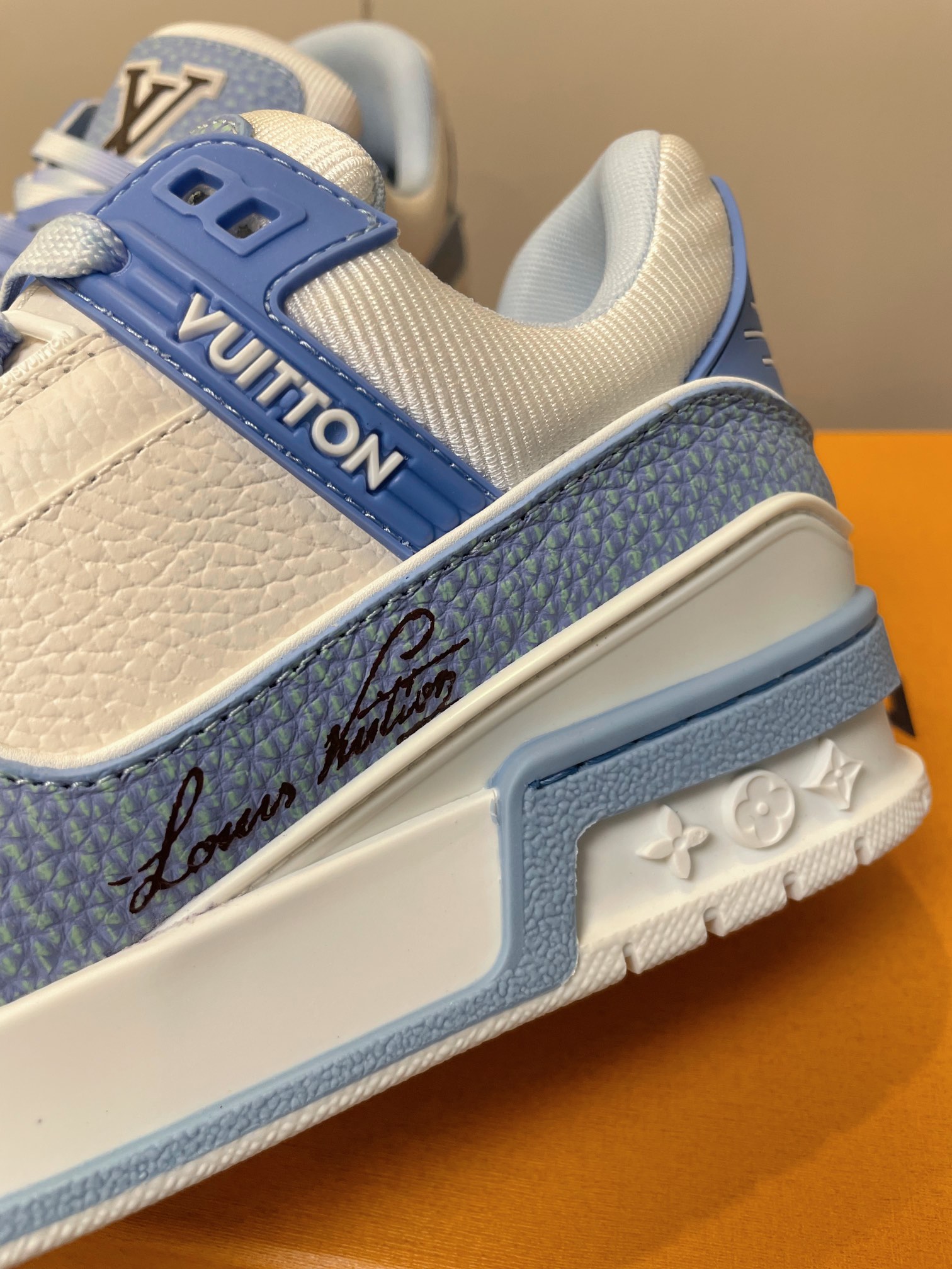 这款鞋子是AAAAA 1:1 质量 (非常棒). 使用了和原版一模一样的材料. 商标部分也保持了和路易威登/Louis Vuitton一样. 图片拍摄是实物鞋子拍摄, 您所收到的实物保证和我们图片一模一样.