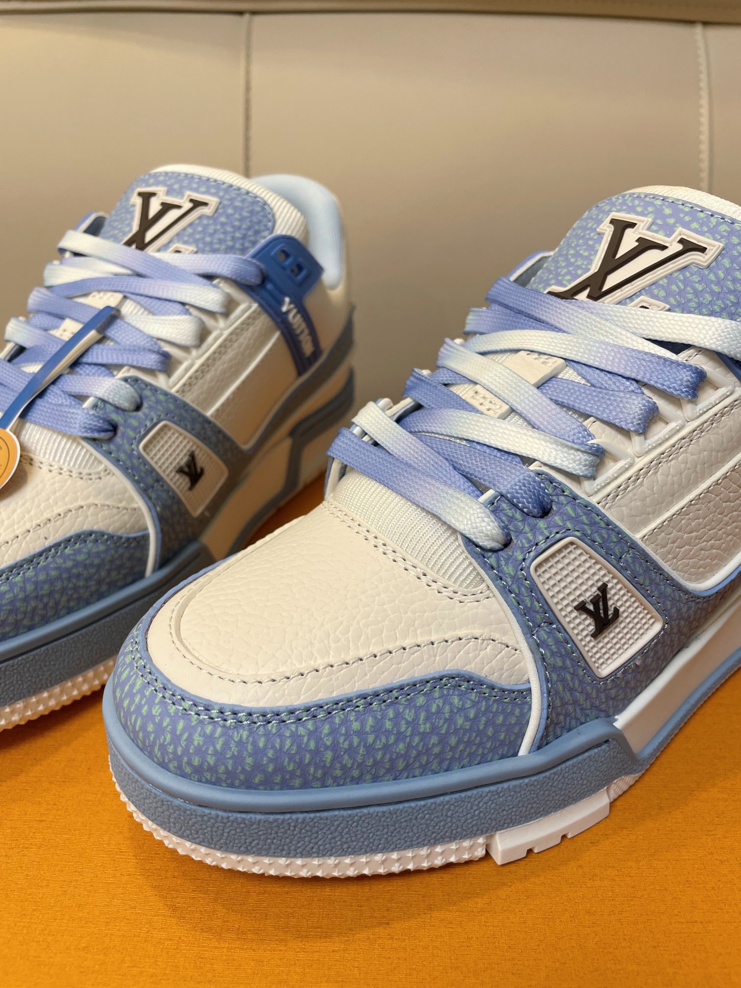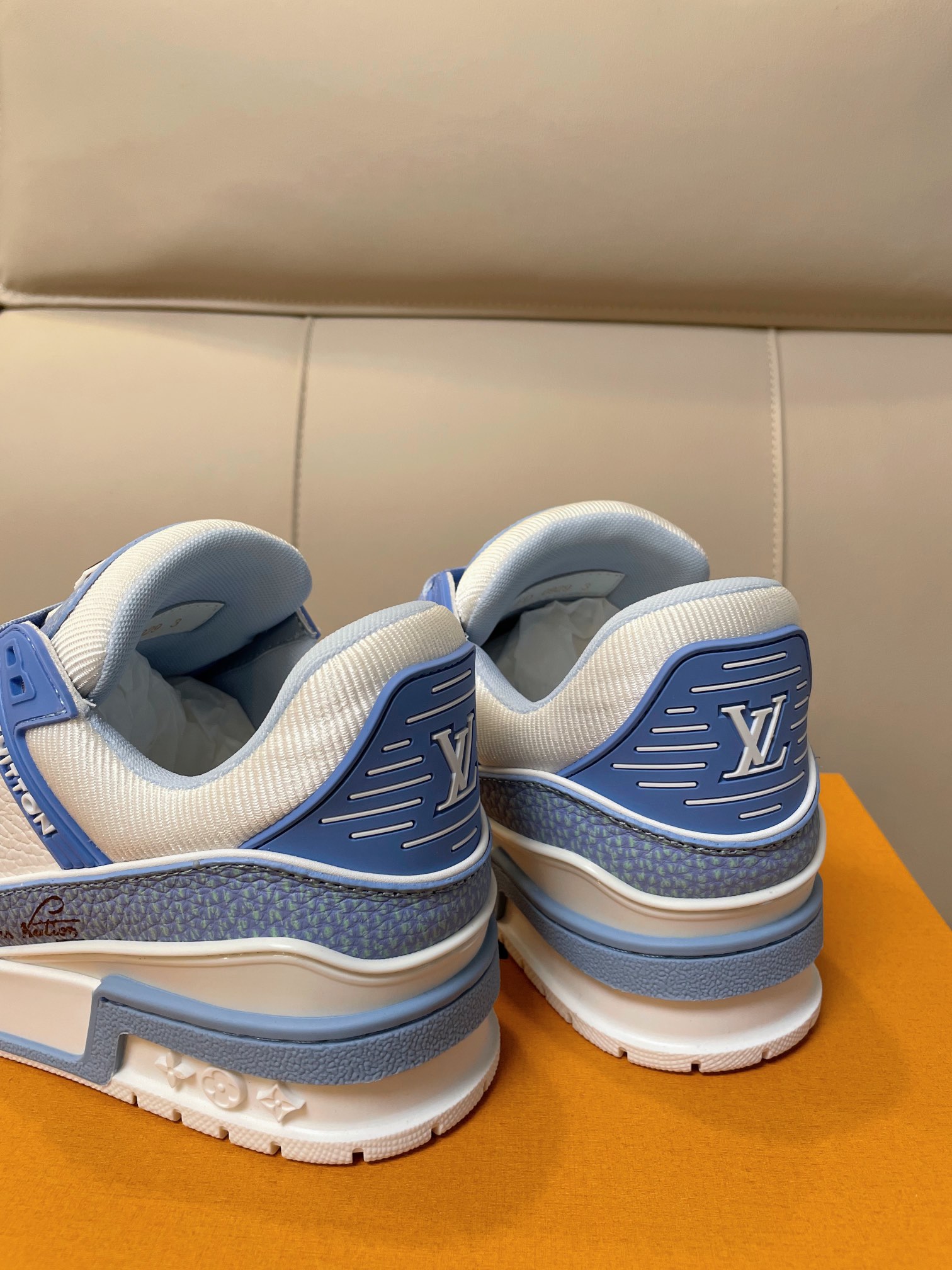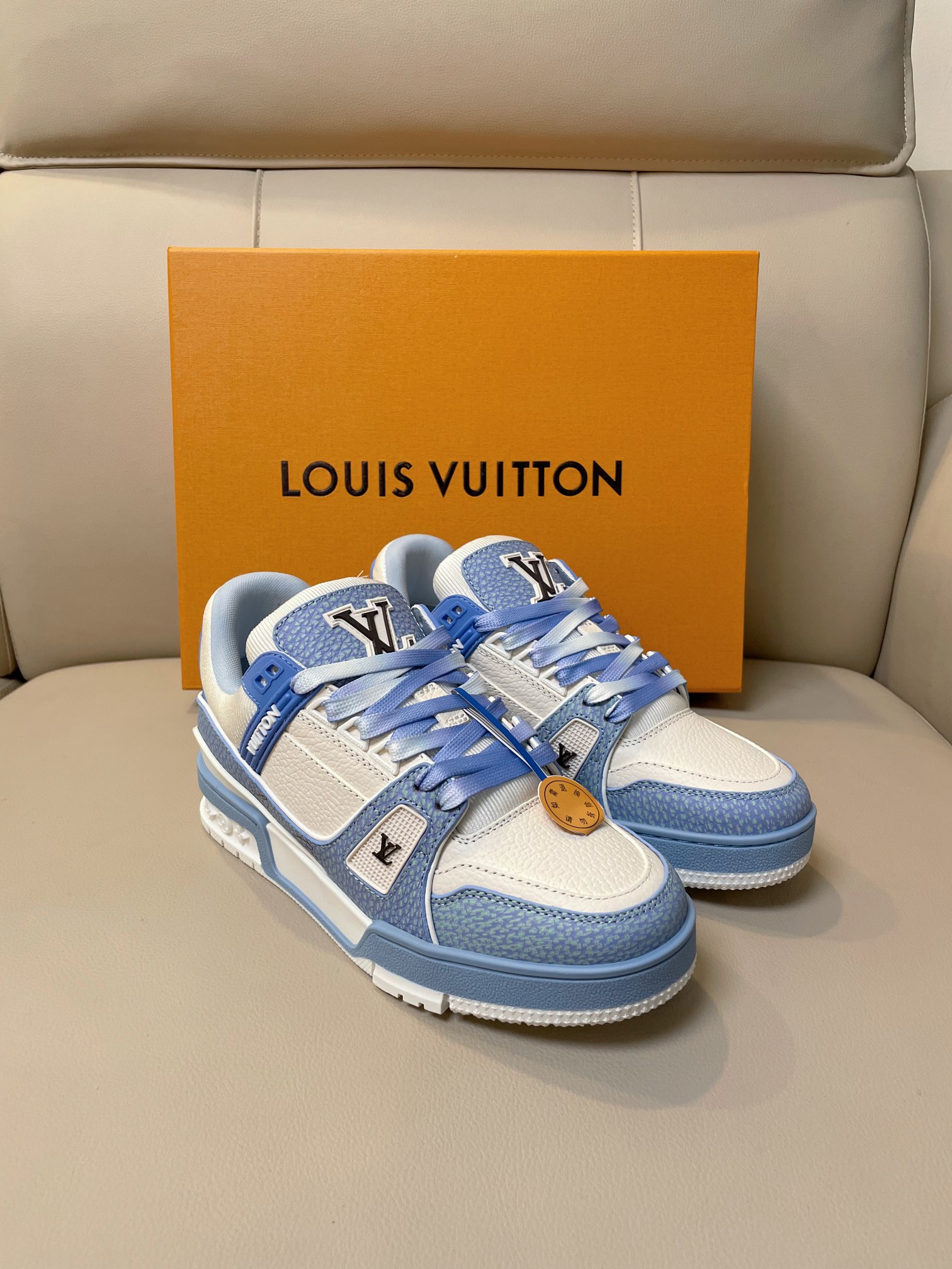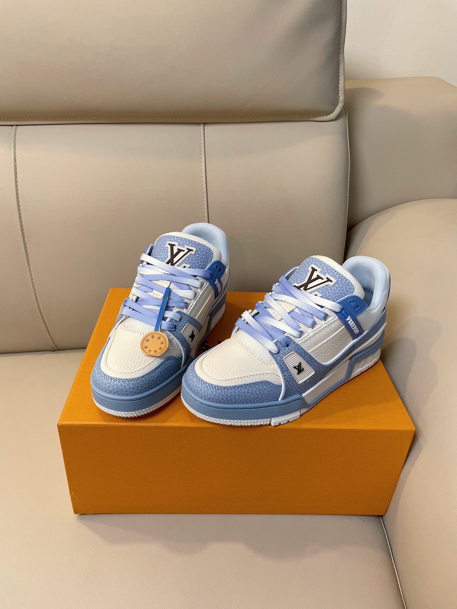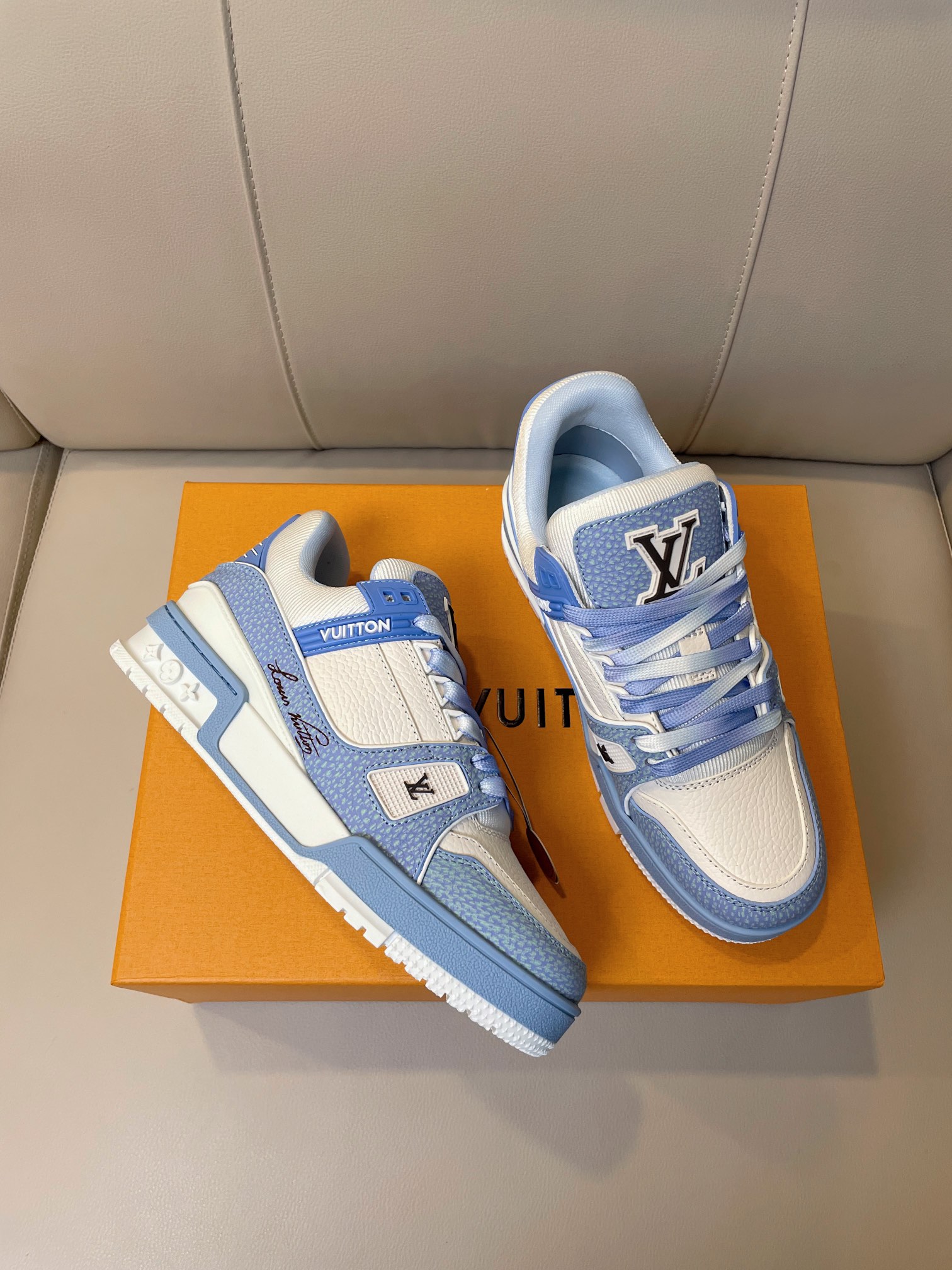 这款鞋子是AAAAA 1:1 质量 (非常棒). 使用了和原版一模一样的材料. 商标部分也保持了和路易威登/Louis Vuitton一样. 图片拍摄是实物鞋子拍摄, 您所收到的实物保证和我们图片一模一样.