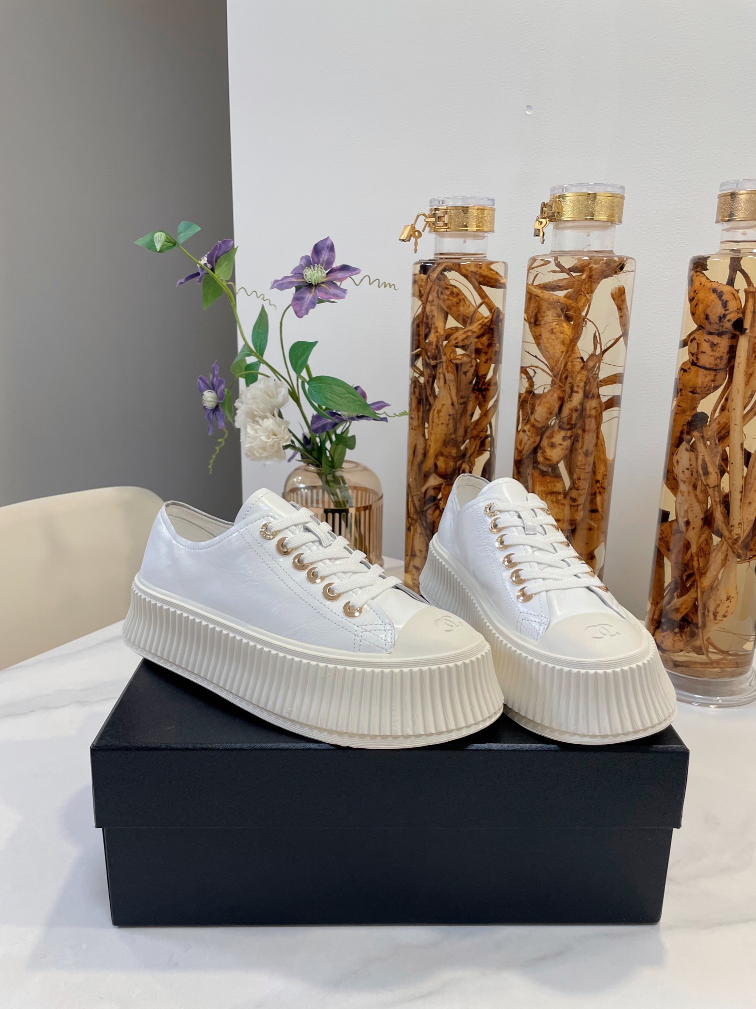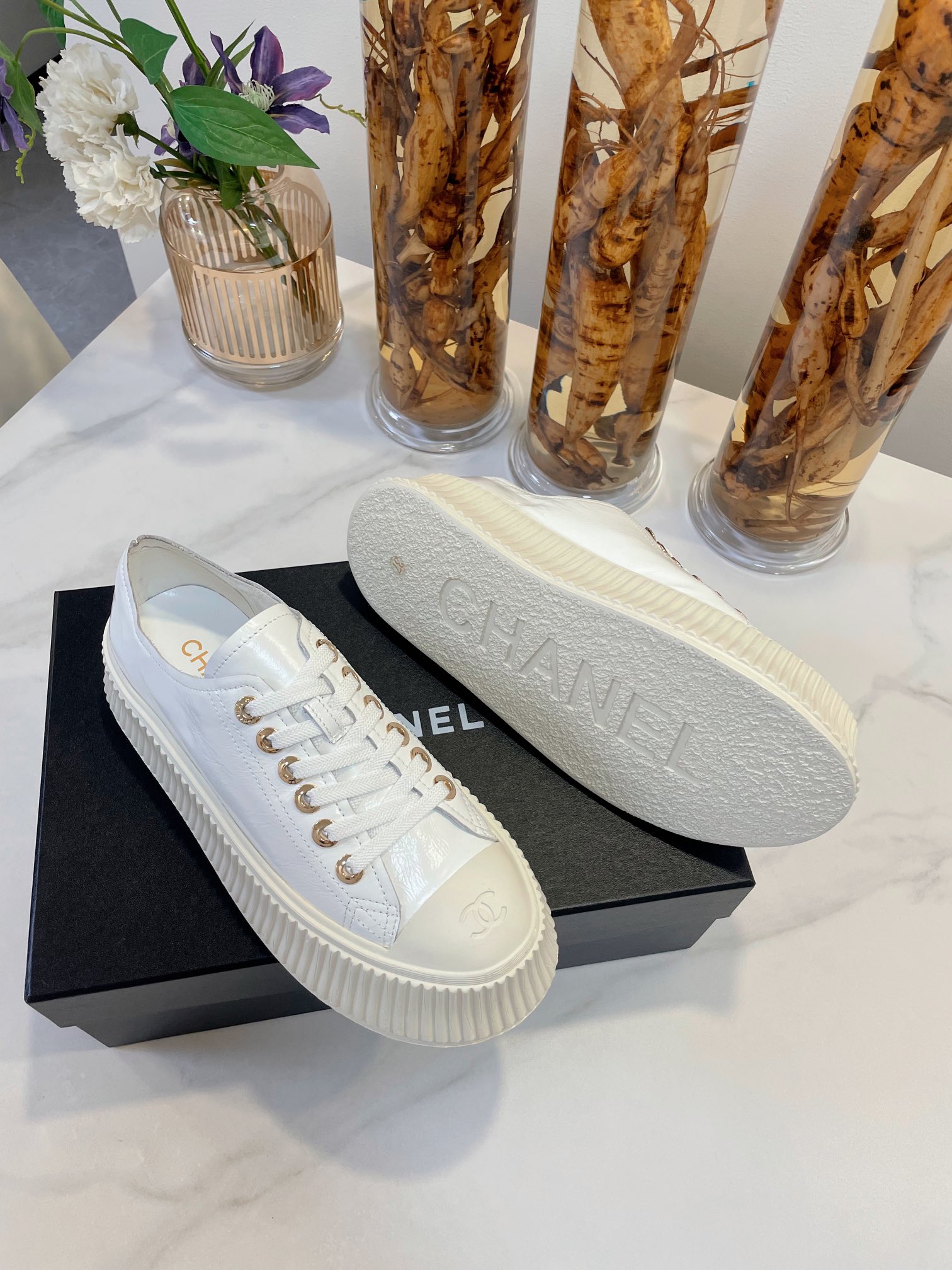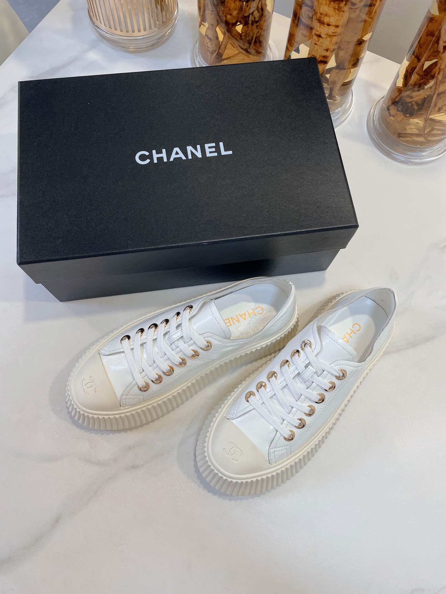 这款鞋子是AAAAA 1:1 质量 (非常棒). 使用了和原版一模一样的材料. 商标部分也保持了和香奈儿/Chanel一样. 图片拍摄是实物鞋子拍摄, 您所收到的实物保证和我们图片一模一样.