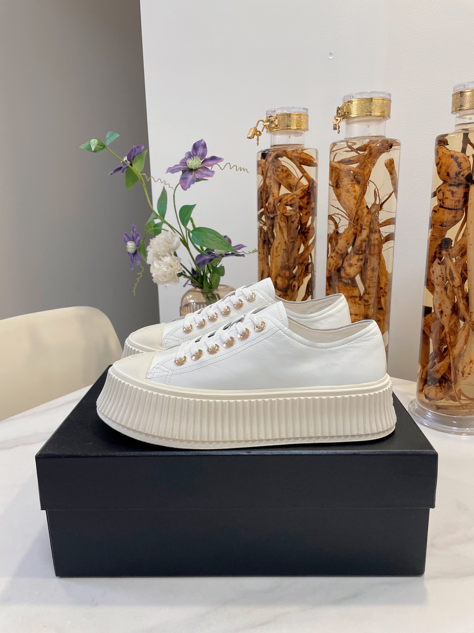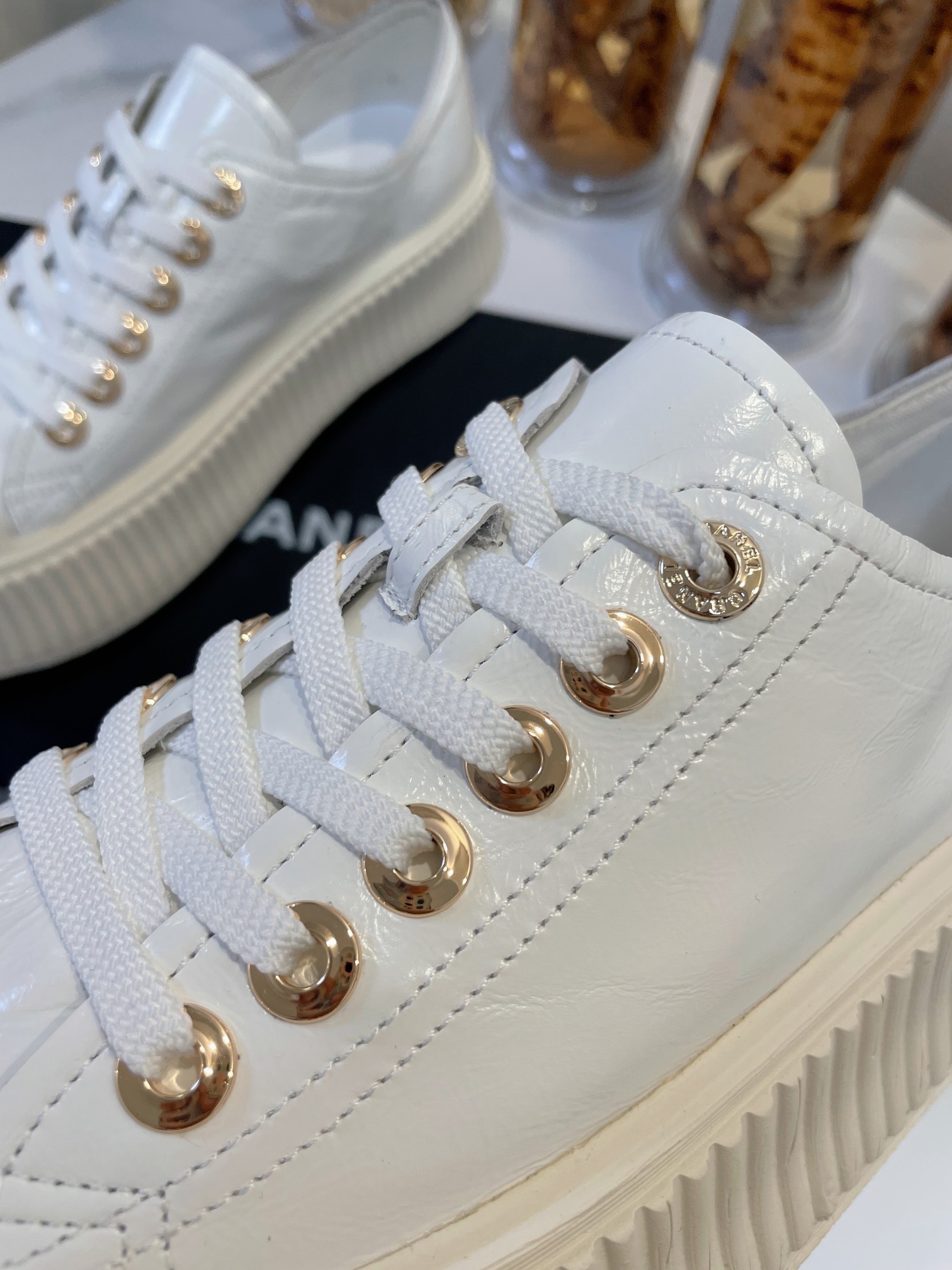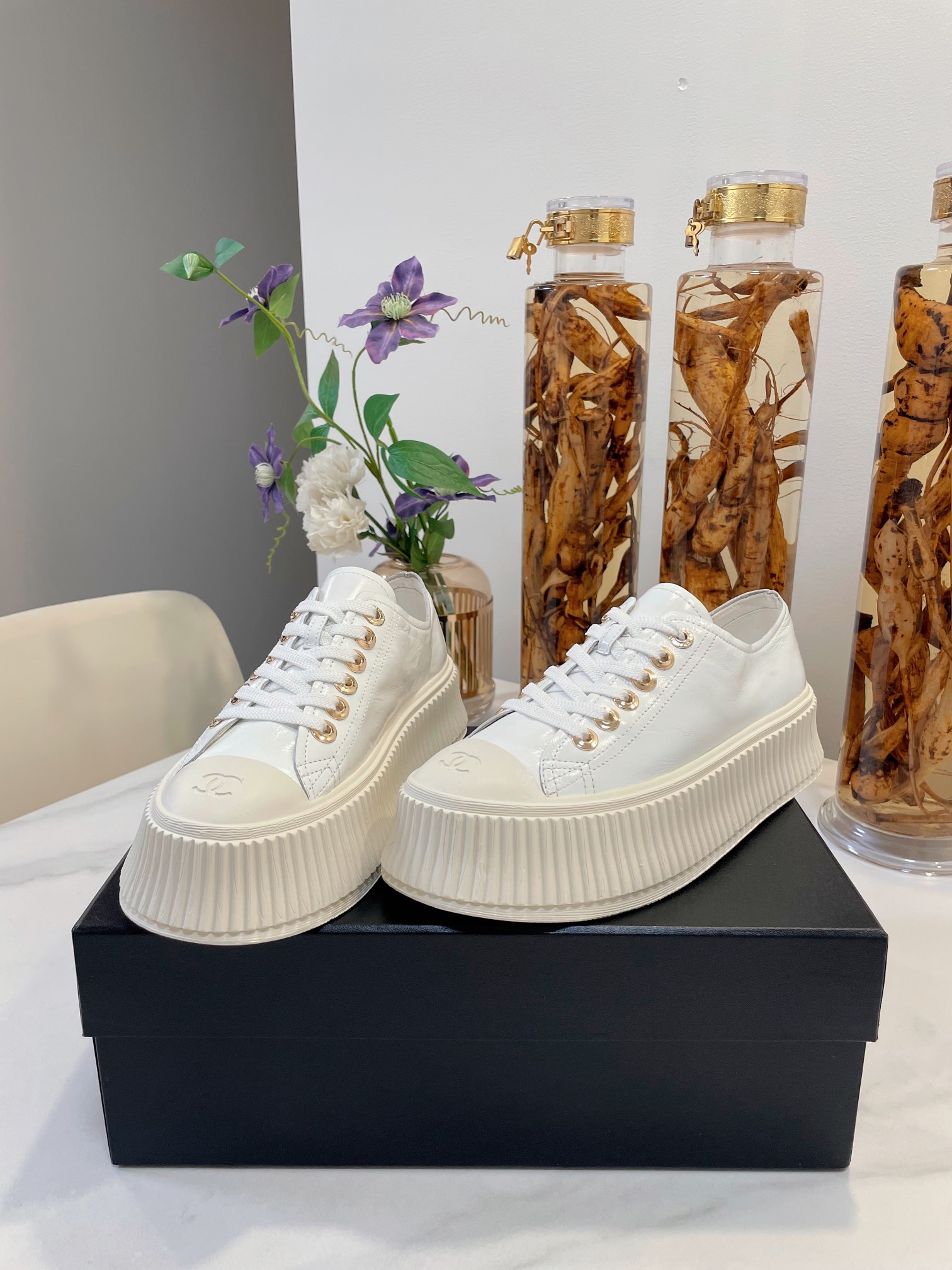这款鞋子是AAAAA 1:1 质量 (非常棒). 使用了和原版一模一样的材料. 商标部分也保持了和香奈儿/Chanel一样. 图片拍摄是实物鞋子拍摄, 您所收到的实物保证和我们图片一模一样.