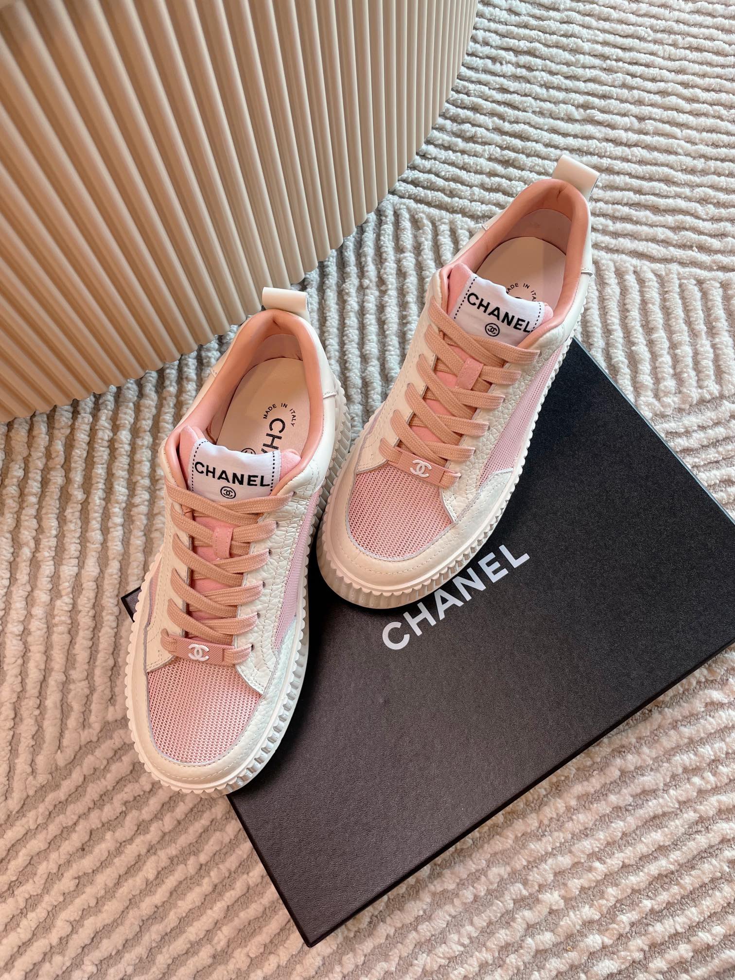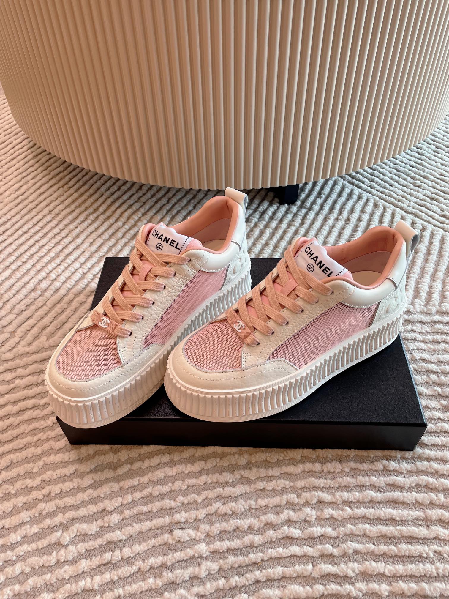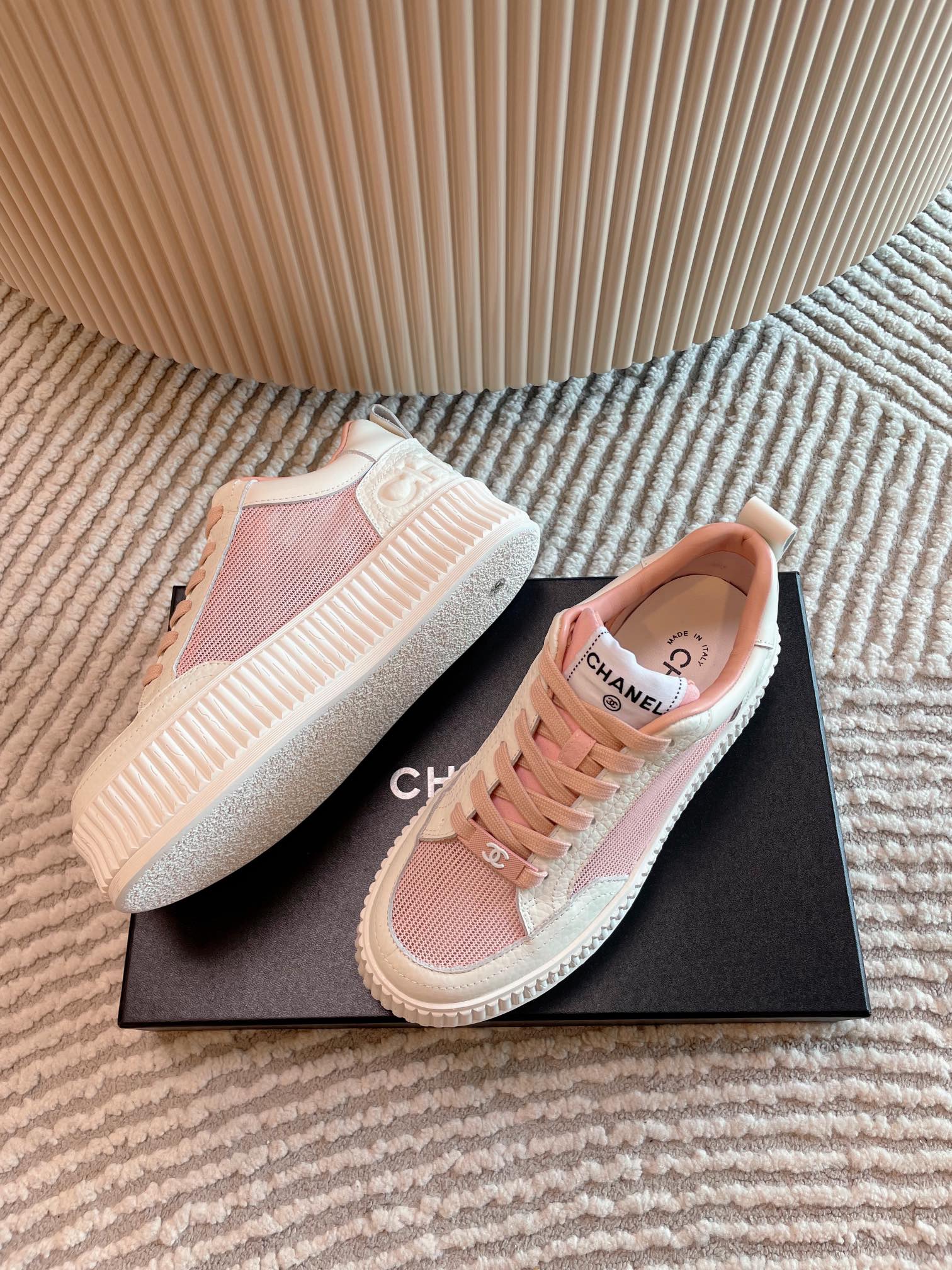 这款鞋子是AAAAA 1:1 质量 (非常棒). 使用了和原版一模一样的材料. 商标部分也保持了和香奈儿/Chanel一样. 图片拍摄是实物鞋子拍摄, 您所收到的实物保证和我们图片一模一样.